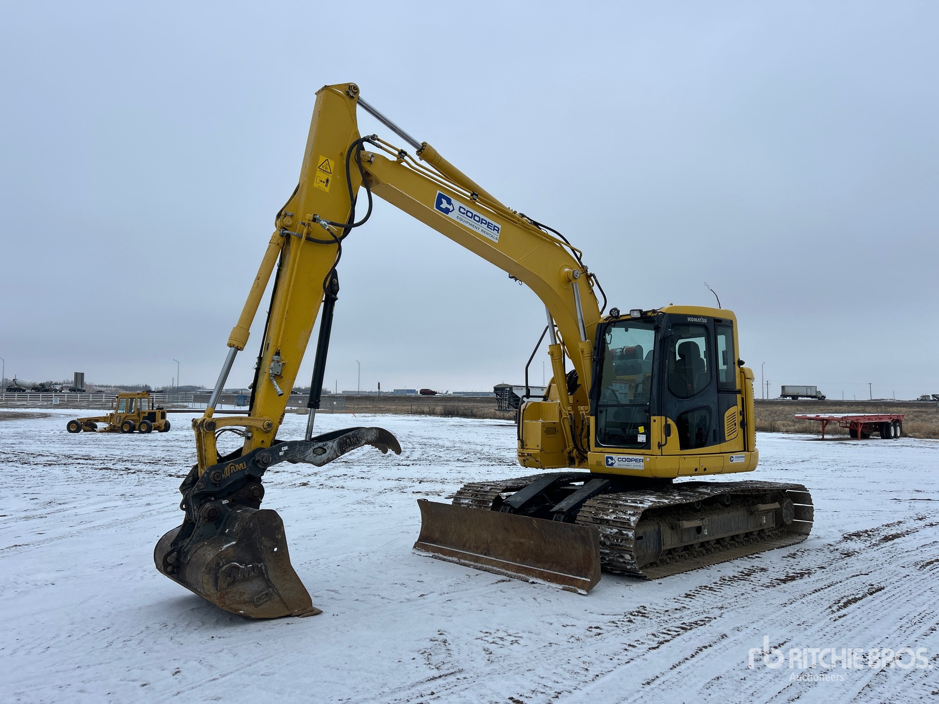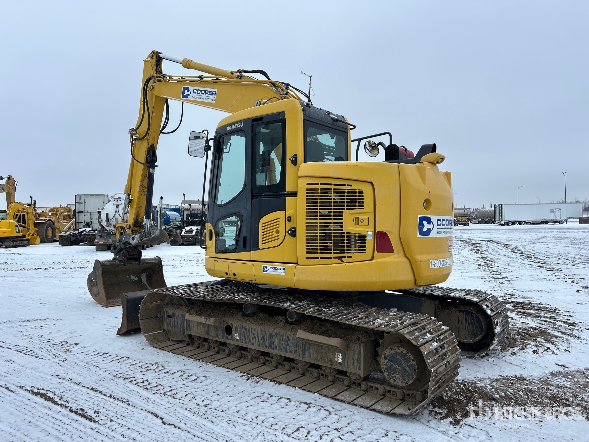 Climatisation, sélecteur de mode de conduite, caméra de recul, homologation EPA américaine 2016, nécessite du liquide d'échappement diesel, vanne d'arrêt d'air positive, bras de 3 m, lame de remblayage, chenilles à triple crampon de 70 cm, attache rapide hydraulique, godet de nettoyage de 142 cm, pince hydraulique