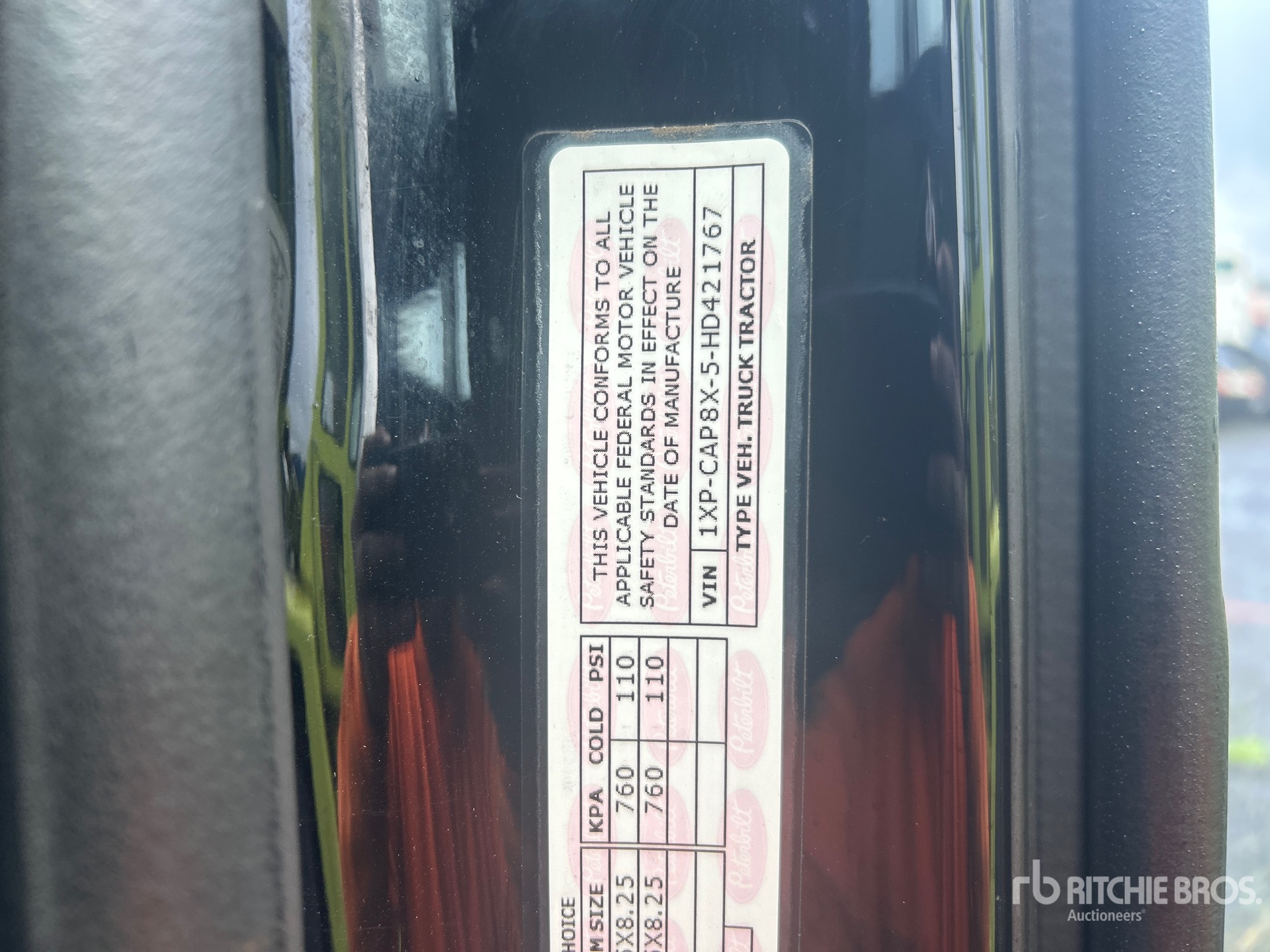 Moteur Paccar MX-13 500 kW, homologué EPA 2016, 7 951 heures de fonctionnement, boîte de vitesses manuelle Eaton Fuller, essieu avant 5 443 kg, essieu arrière 10 280 kg, PTAC 15 770 kg, frein moteur, empattement 4,37 m, suspension pneumatique, pneus 295/75R22.5, sellette d'attelage à billes