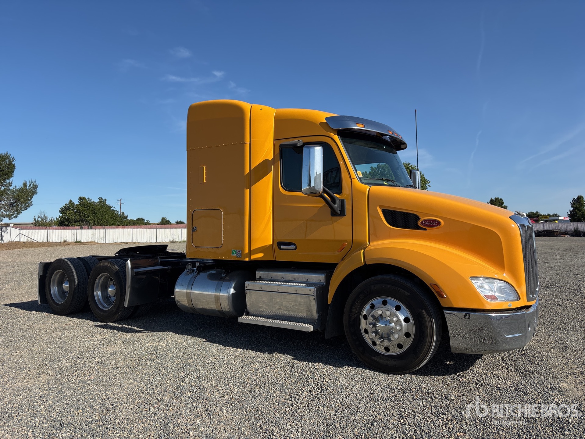 Moteur Paccar, boîte de vitesses manuelle Eaton Fuller à 10 rapports, essieu avant de 5443 kg (12 000 lb), essieu arrière de 17 237 kg (38 000 lb), PTAC de 22 680 kg (50 000 lb), empattement de 546 cm (215 po), suspension pneumatique, jantes en aluminium, pneus avant 295/75R22.5, pneus arrière 275/80R22.5, sellette d'attelage coulissante pneumatique