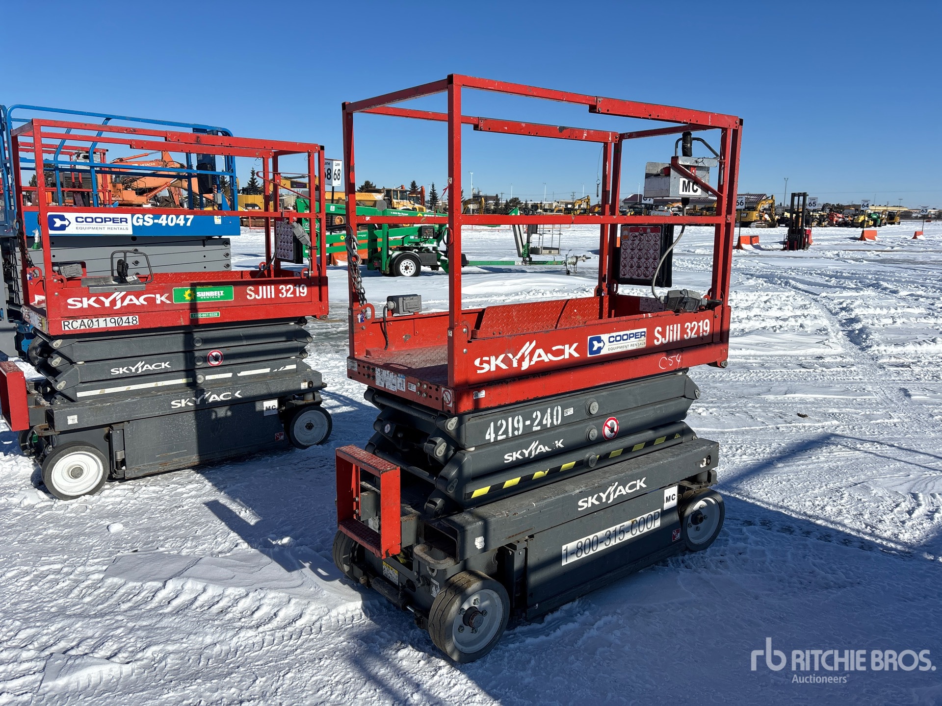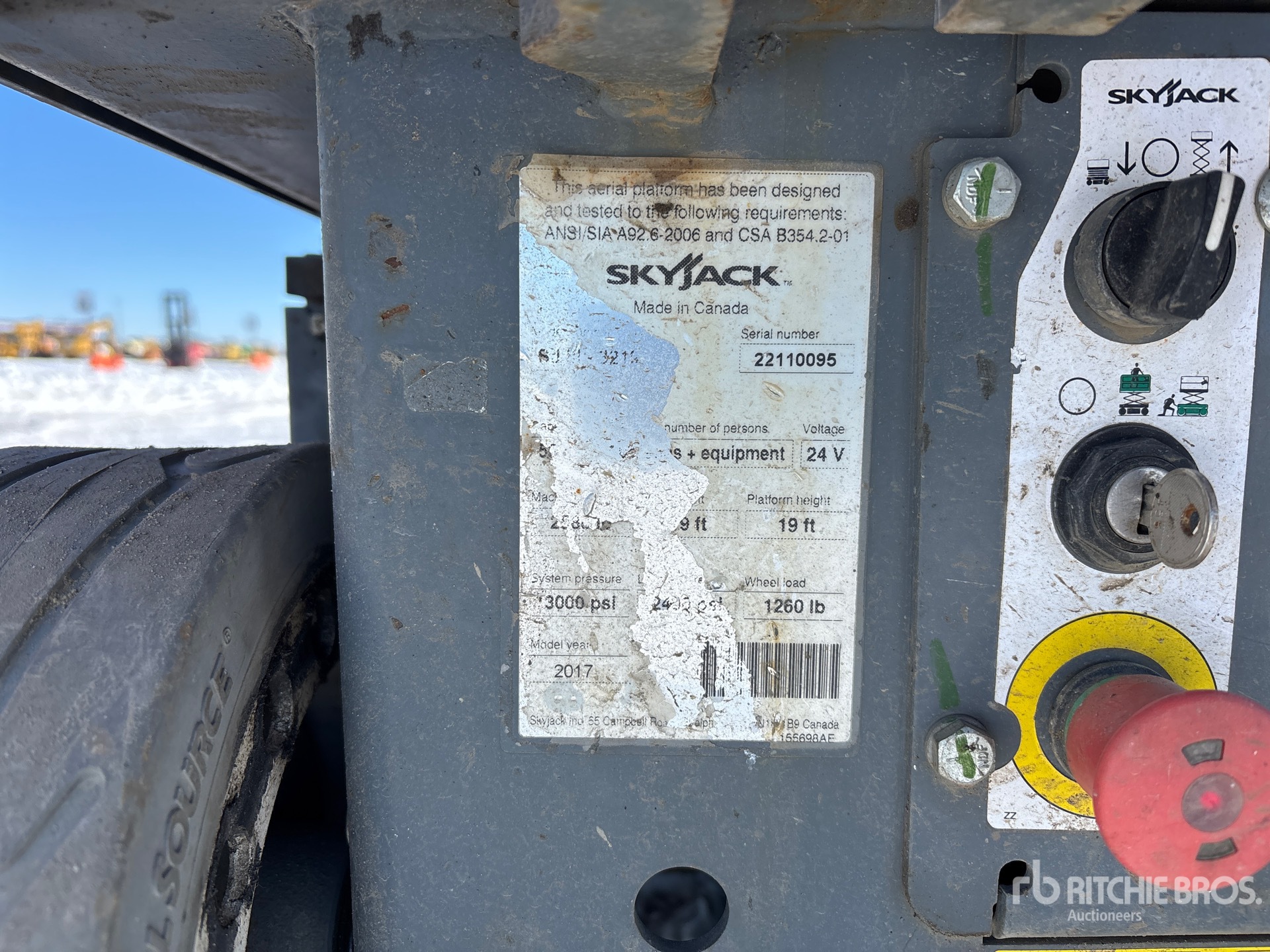 Hauteur maximale de la plateforme : 19 pi, capacité de charge maximale : 550 lb, rallonge de la plateforme, alimentation électrique, pneus pleins non marquants, boîtier de commande supérieur
