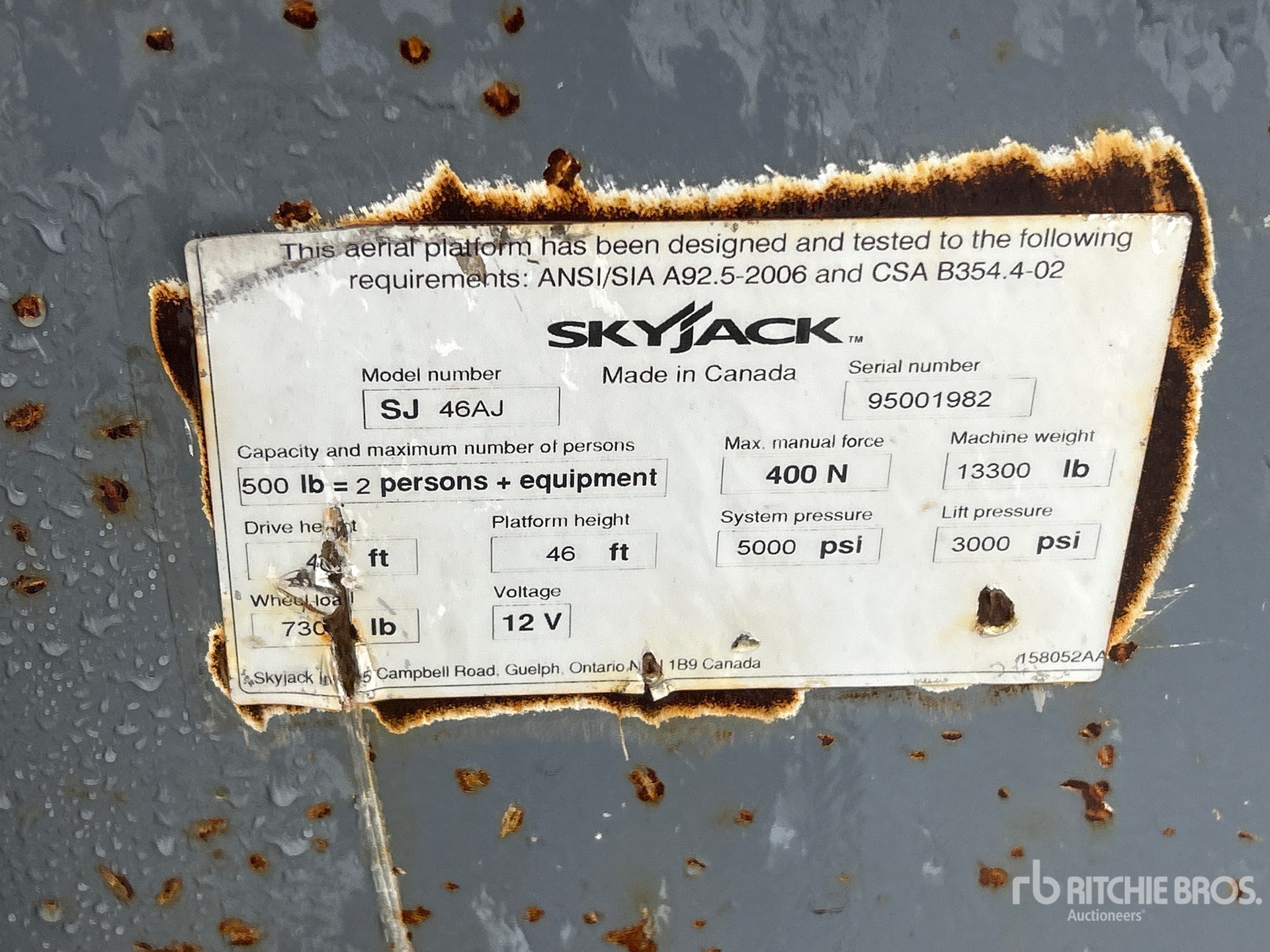 Hauteur de plateforme maximale de 14 m (46 pi), capacité de charge maximale de 227 kg (500 lb), flèche, alimentation électrique de la plateforme, homologation EPA américaine 2016, moteur diesel Deutz D2.9L4 à 4 cylindres de 36,4 kW (2,9 L), pneus 305/70D16.5