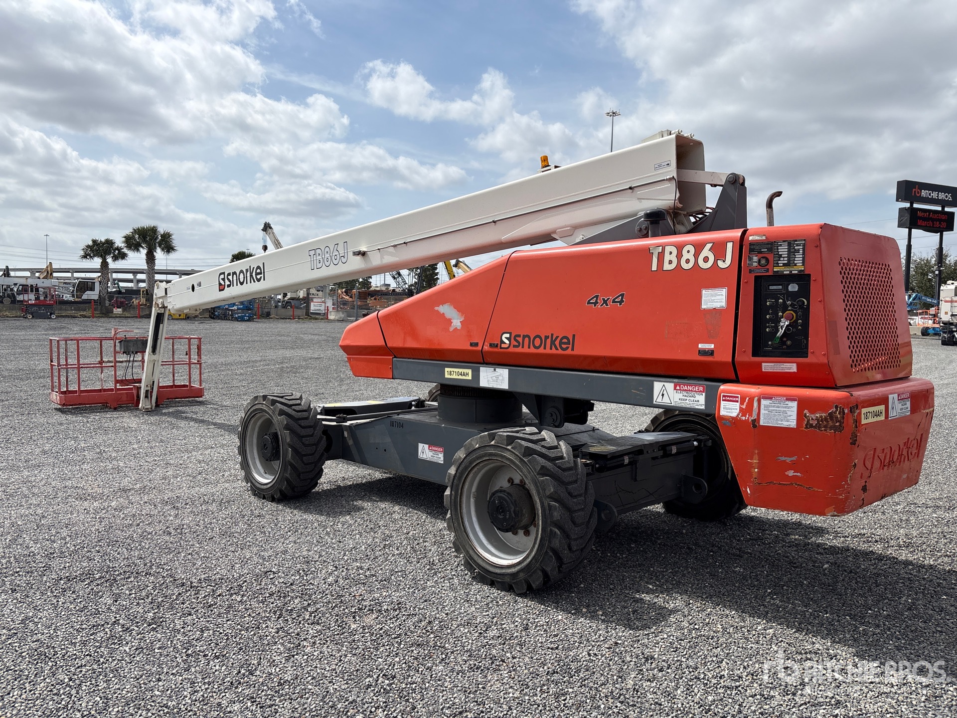 Hauteur maximale de la plateforme : 26,2 m (86 pi), capacité de charge maximale : 227 kg (500 lb), flèche, alimentation électrique de la plateforme, générateur embarqué, homologation EPA américaine 2018, moteur diesel Kubota V2403 à 4 cylindres de 2,4 L, pneus 15-625NHS