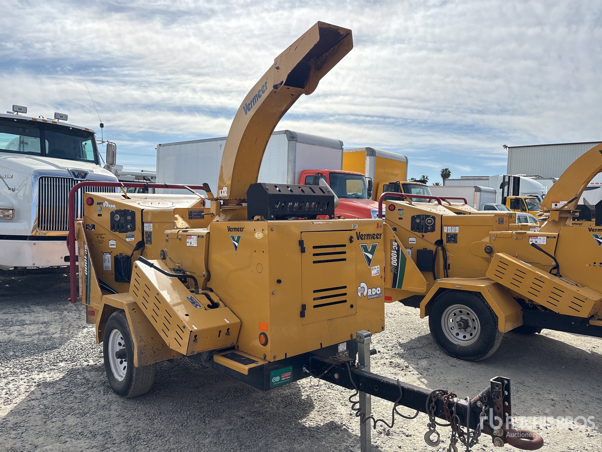 Étiquette EPA américaine 2016, moteur diesel Deutz 4 cylindres 2,9 L, ouverture d'alimentation de 63,5 cm (25 po), goulotte d'éjection pivotante, remorque porte-anneaux Lunette, freins électriques, équipement fourni par Mowbrays Tree Service