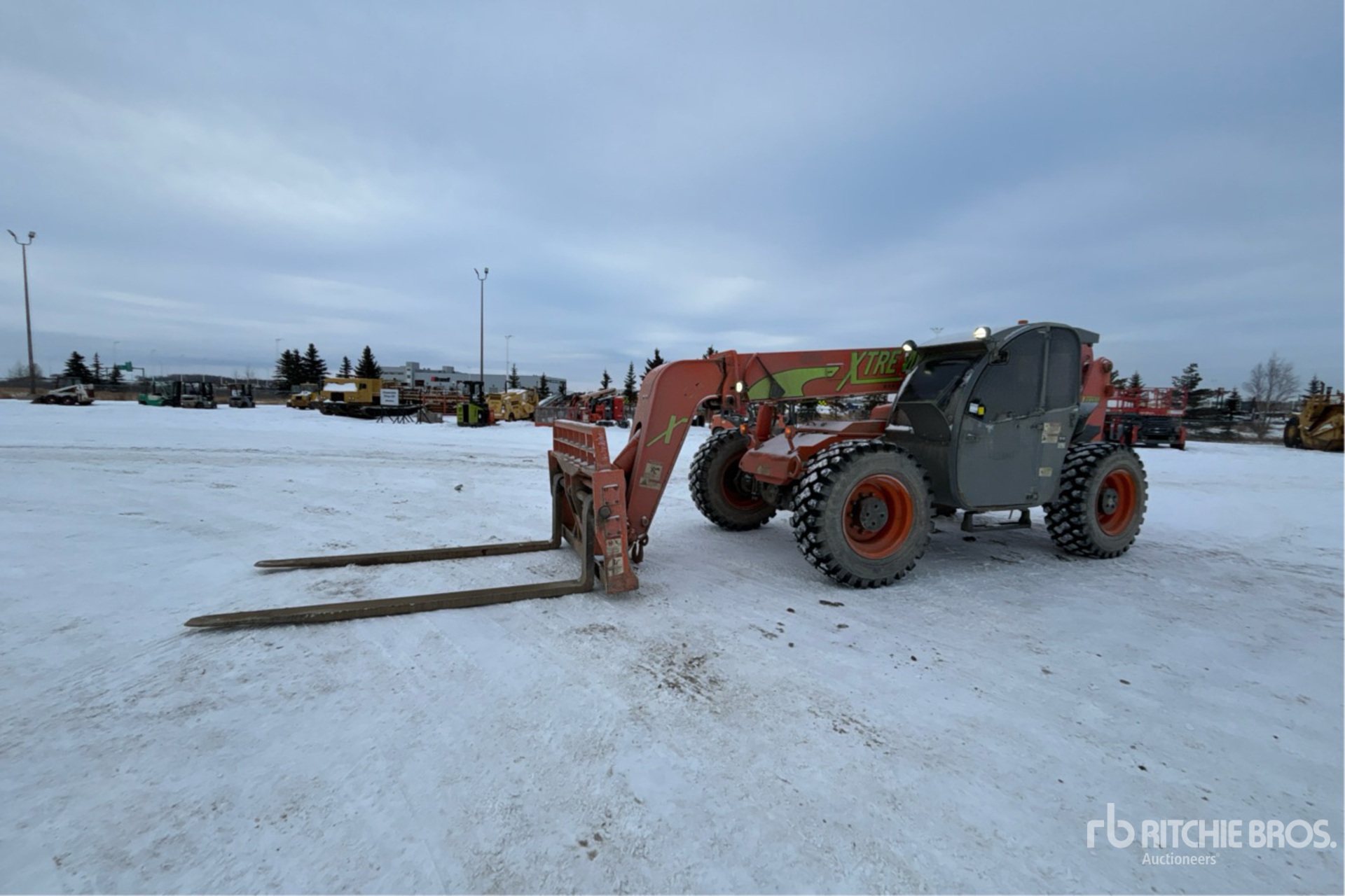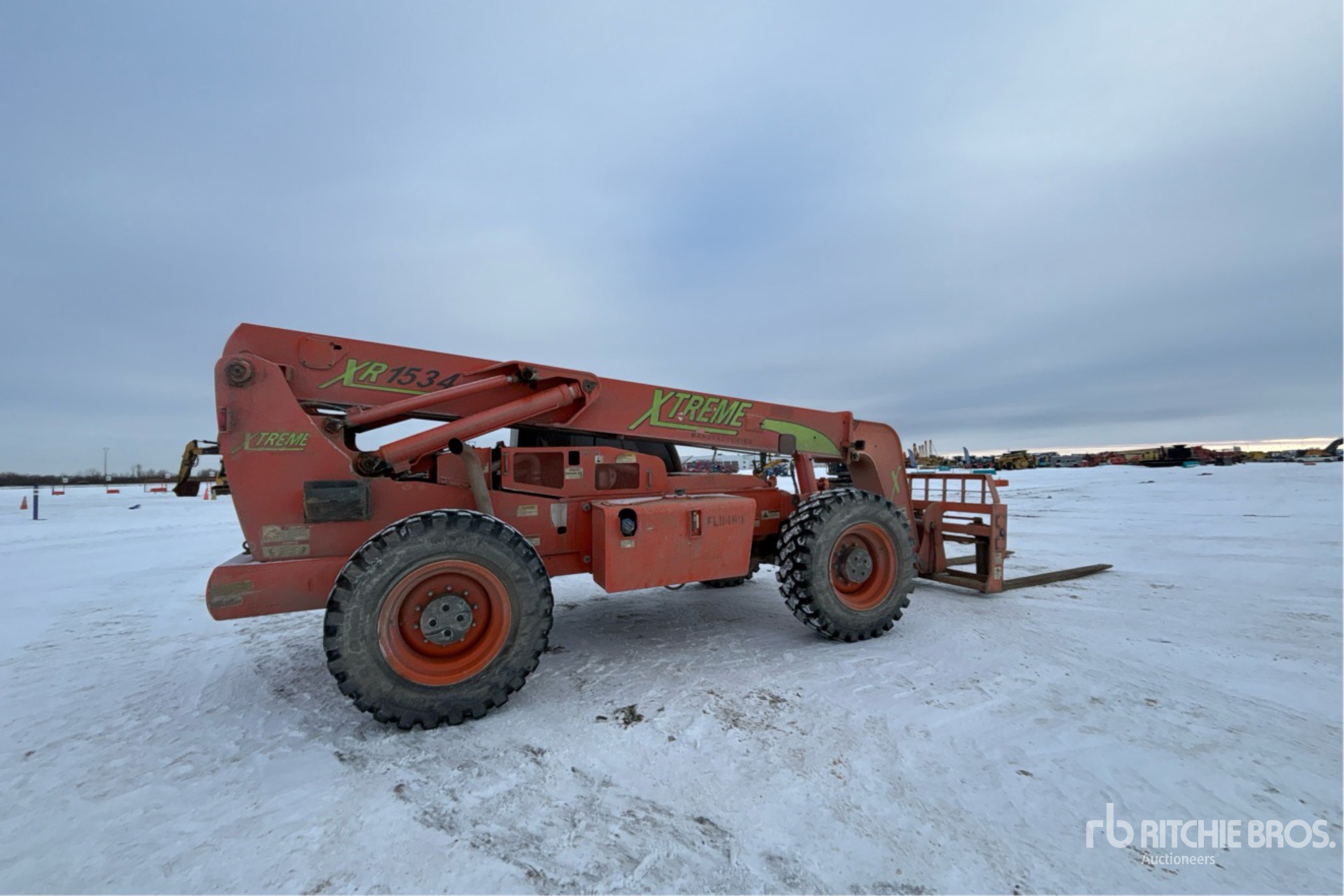 Cabine fermée, climatisation, caméra de recul, hauteur de levage maximale de 10,4 m, capacité de levage maximale de 6 350 kg, nécessite du liquide d'échappement diesel, fourches de 2,44 m, positionneur de fourches, attelage manuel, mise à niveau du châssis, pneus 15,5-25