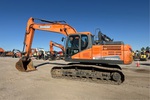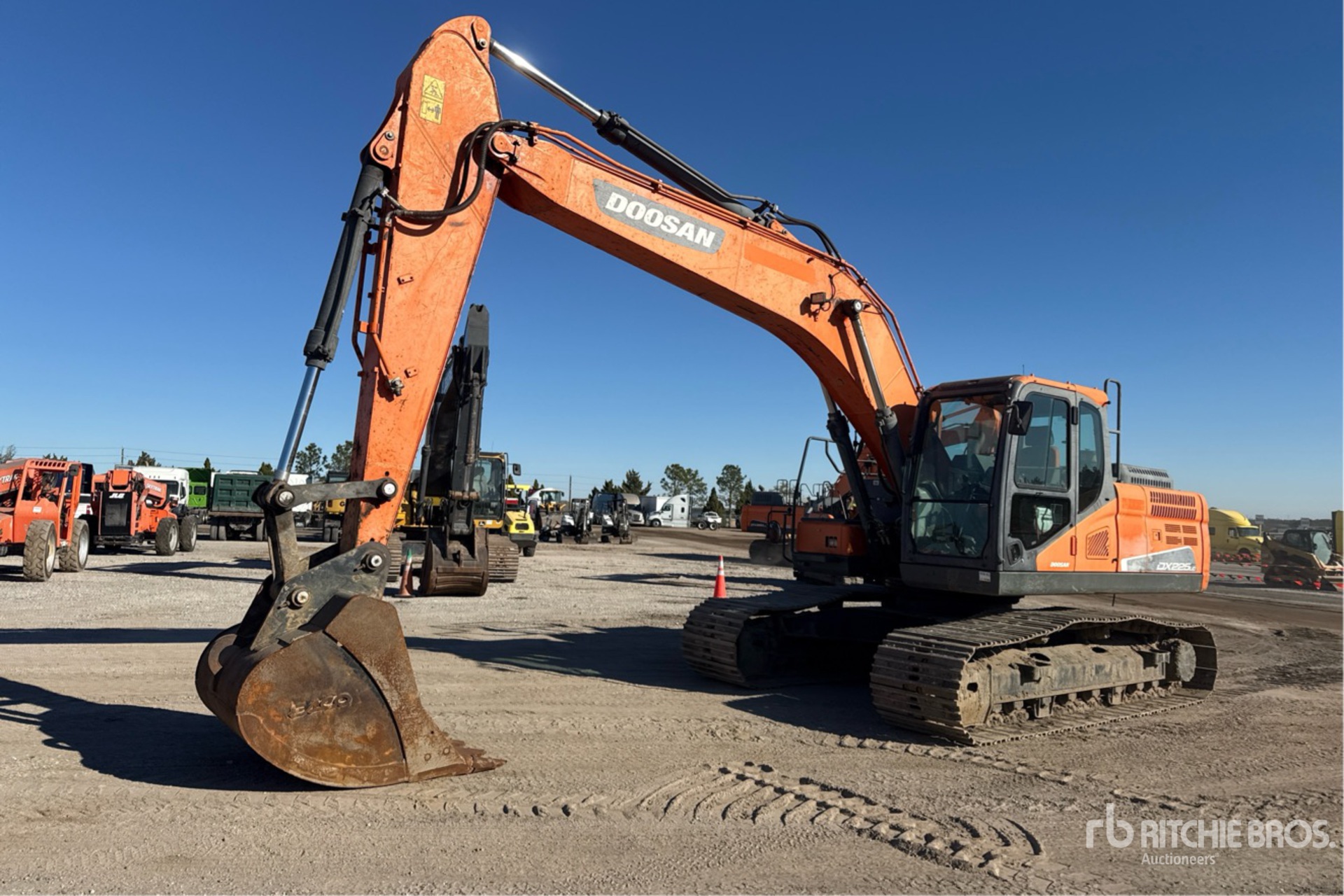 Climatisation, caméras de recul et latérales, homologation EPA américaine 2018, nécessite du liquide d'échappement diesel, bras de 2,92 m, circuit hydraulique auxiliaire, chenilles à triple crampon de 80 cm, godet de 122 cm