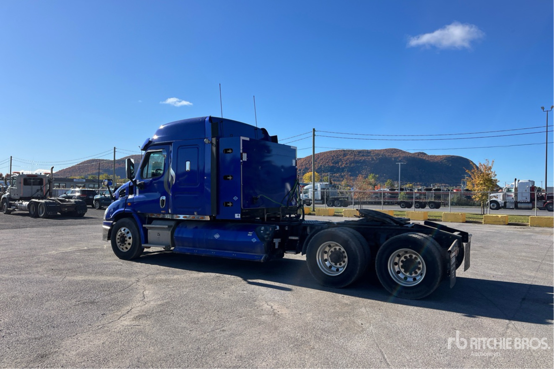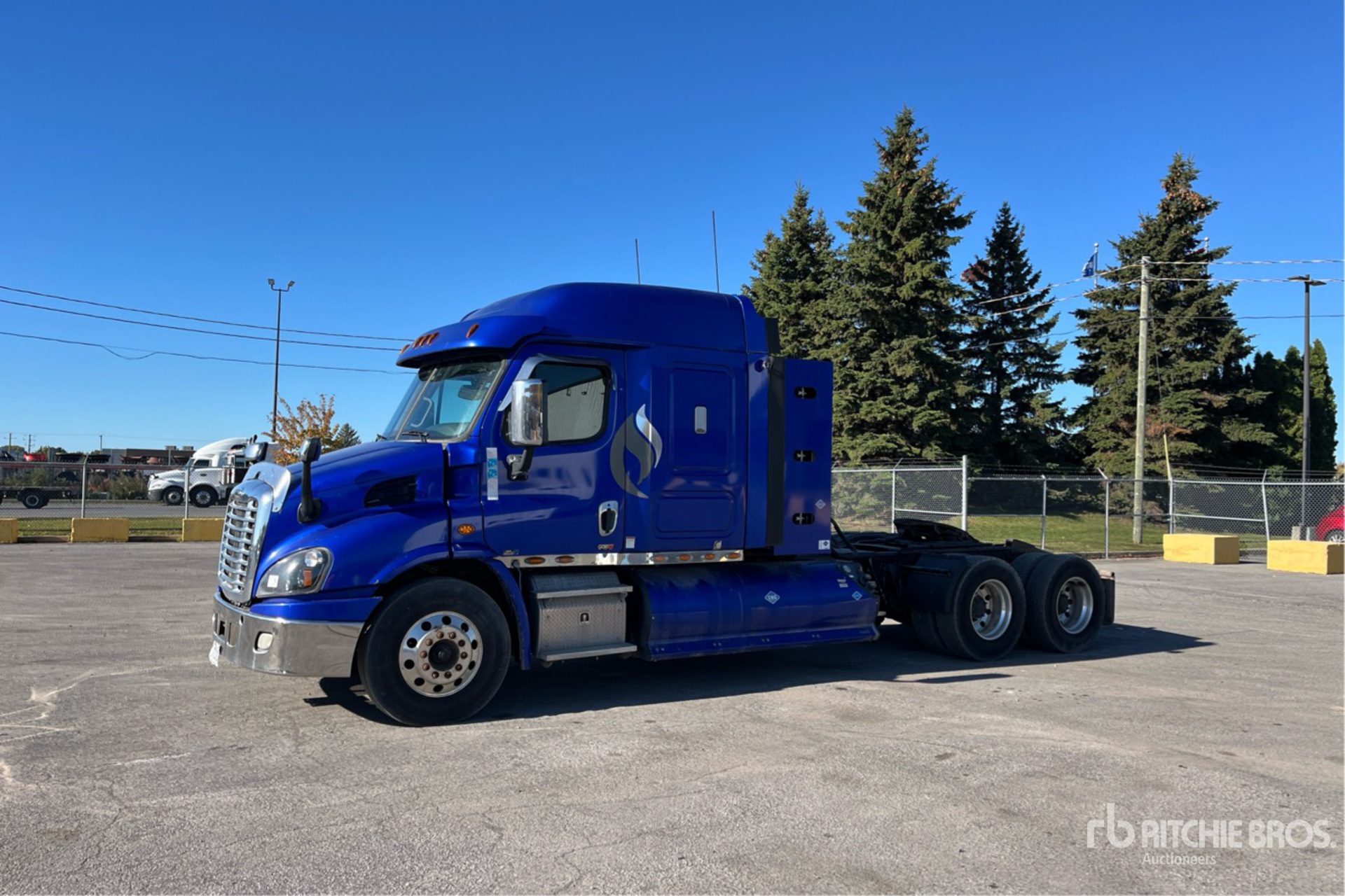 Situé sur la voie 16, emplacement 6, moteur Cummins ISX12G de 400 ch, transmission manuelle Eaton Fuller RTLO-16918B à 18 vitesses, essieu avant de 13 220 lb, essieu arrière de 46 000 lb, PNBV de 26 862 kg, frein moteur, blocage de différentiel, cabine couchette surélevée de 34 po, empattement de 244 po, suspension pneumatique, roues en aluminium, 11R22.5, sellette d'attelage coulissante pneumatique