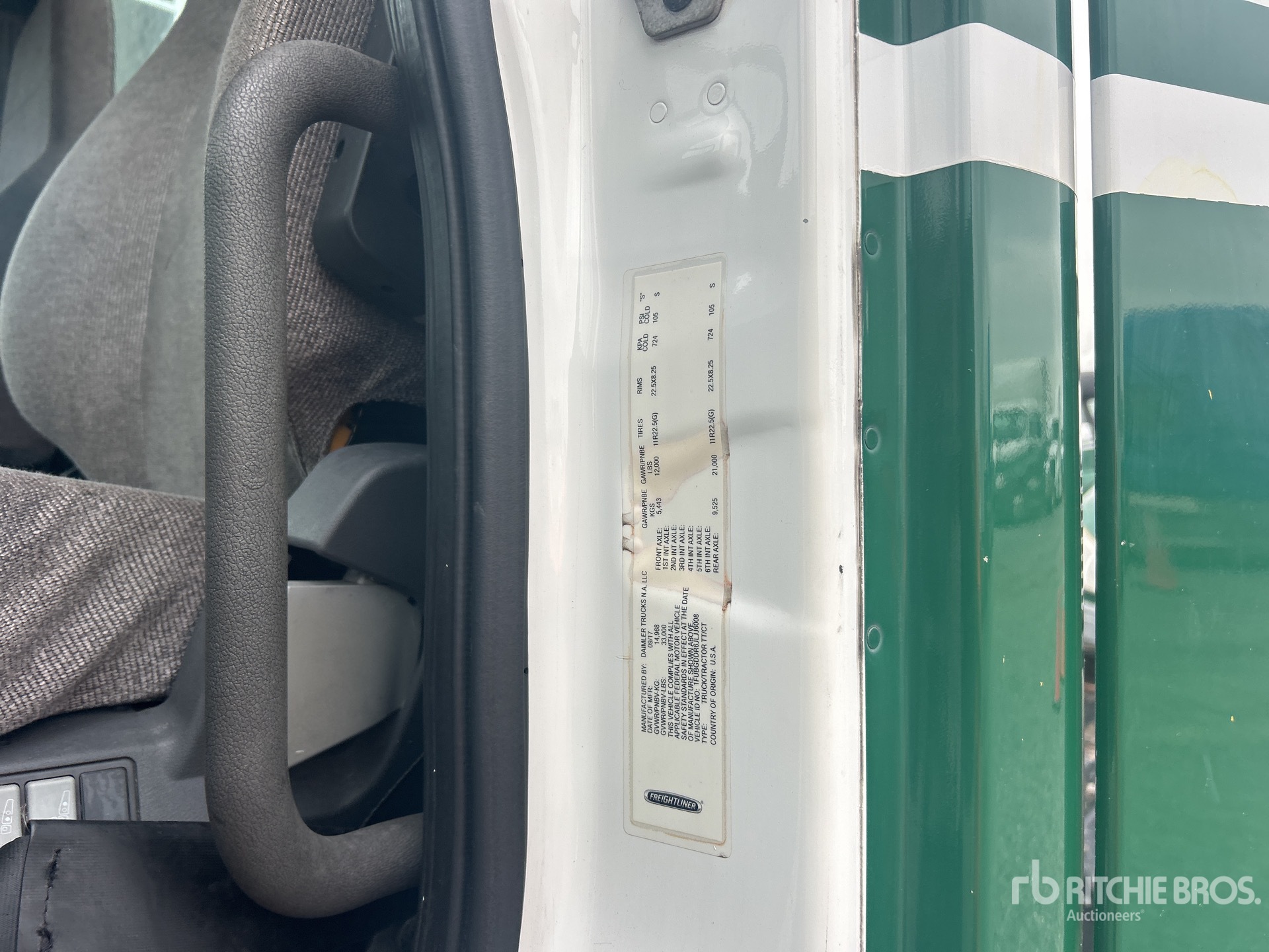Situé sur la voie 32, emplacement 24, moteur Detroit DD15 de 455 ch, étiquette EPA américaine 2018, transmission automatisée Eaton Fuller FAO-15810C, essieu avant de 12 000 lb, essieu arrière de 21 000 lb, PTAC de 33 000 lb, empattement de 158 po, suspension pneumatique, pneus 11R22.5, réservoir double de carburant