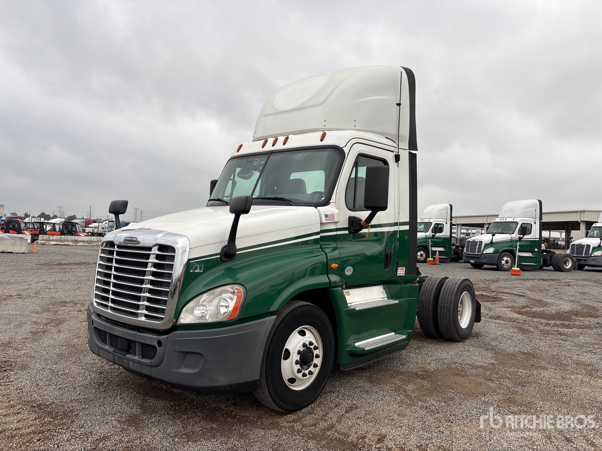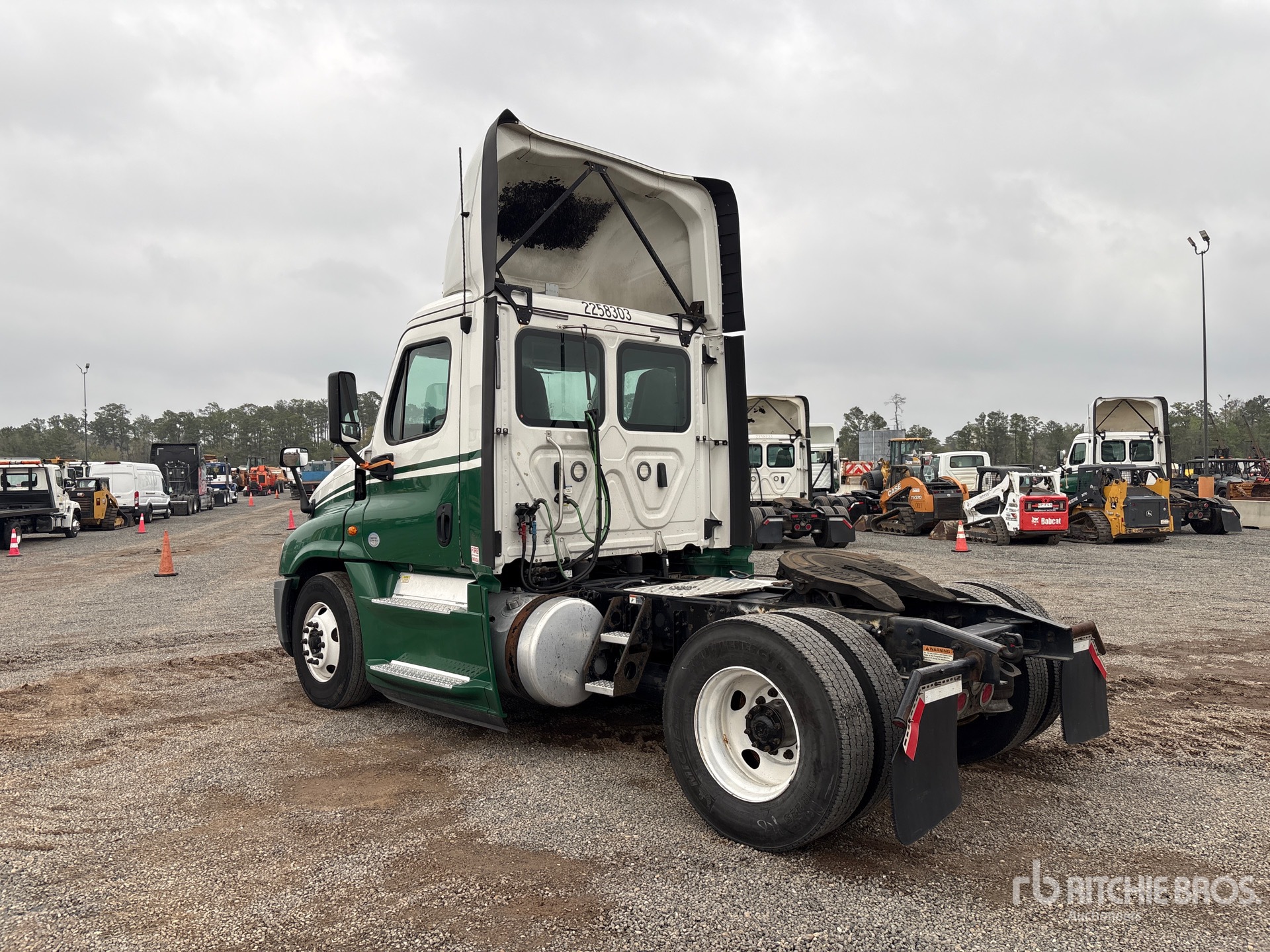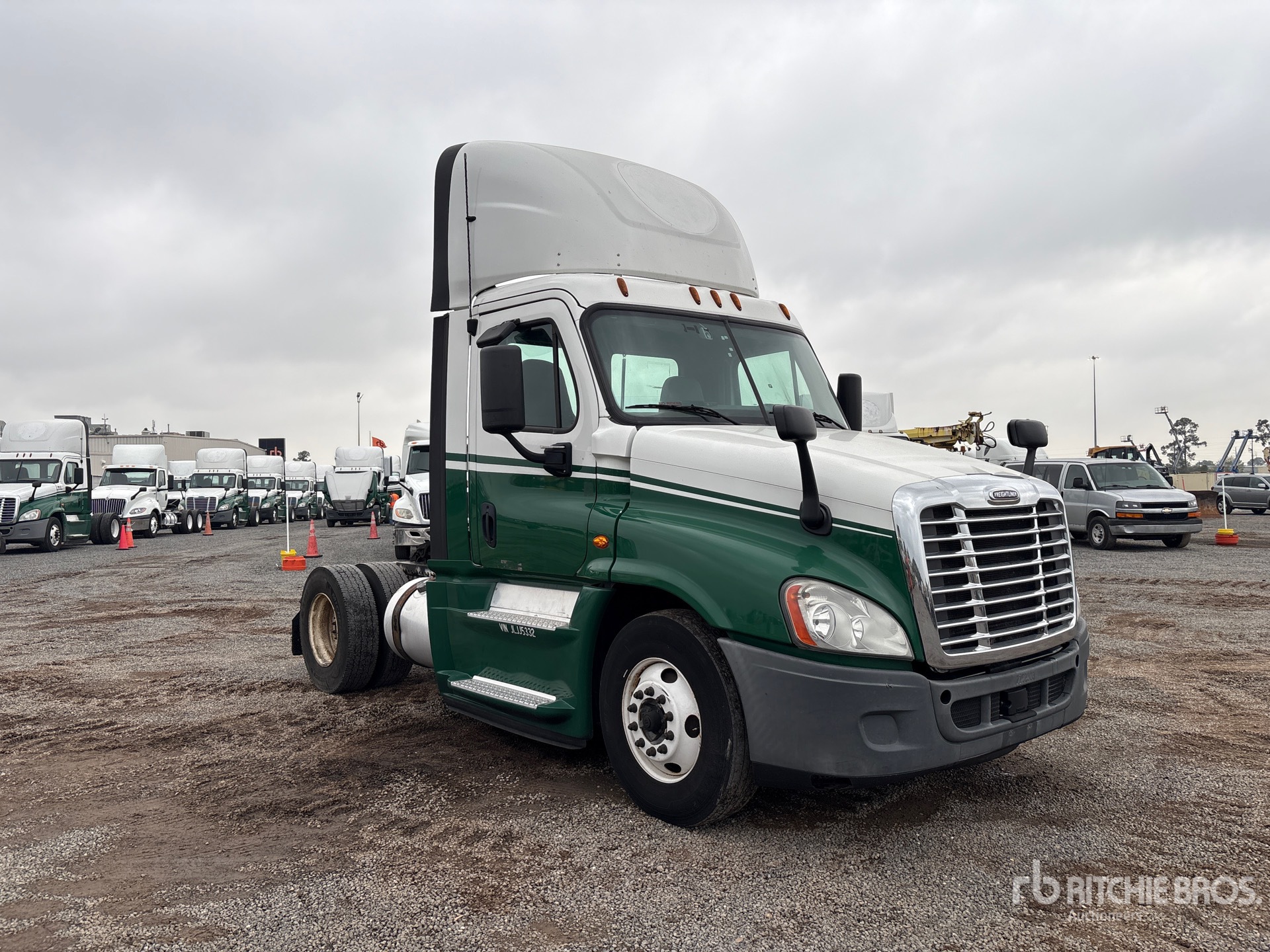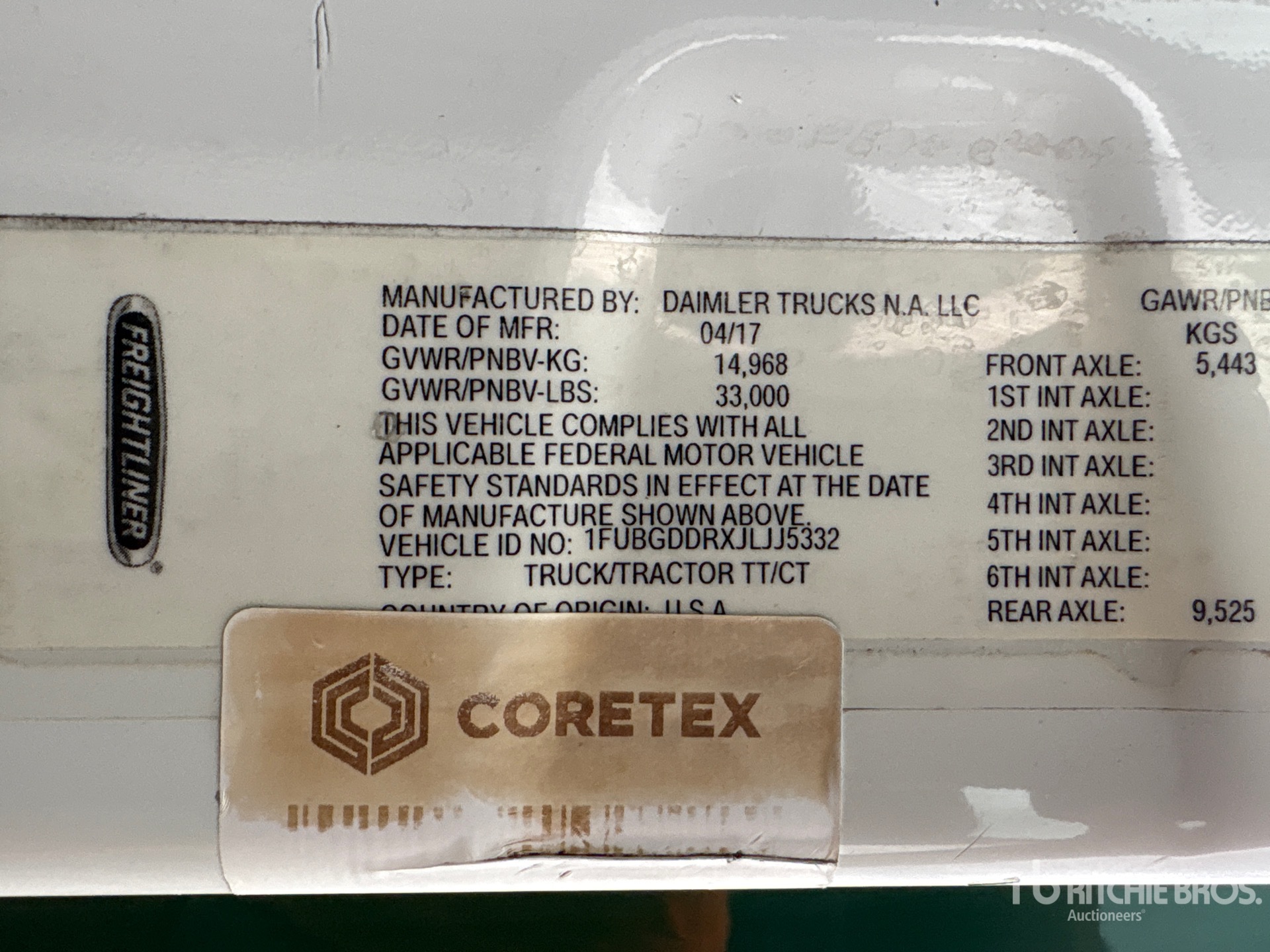 Situé sur la voie 32, emplacement 28, moteur Detroit DD15 de 455 ch, étiquette EPA américaine 2017, 17 793 heures de fonctionnement, transmission manuelle Eaton Fuller EATON FAO-15810C FULLER à 10 vitesses, essieu avant de 12 000 lb, essieux arrière de 21 000 lb, PTAC de 33 000 lb, frein moteur, empattement de 158 po, suspension pneumatique, pneus 11R22.5, double réservoir de carburant