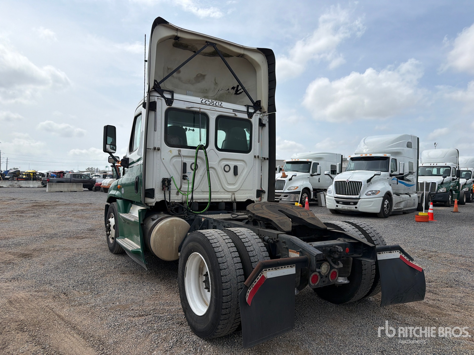 Situé sur la voie 32, emplacement 20, moteur Detroit DD15 de 505 ch, étiquette EPA américaine 2017, 18 881,8 heures de fonctionnement du moteur, essieu avant de 12 000 lb, essieu arrière de 21 000 lb, PTAC de 33 000 lb, frein moteur, empattement de 158 po, suspension pneumatique, pneus 11R22.5, réservoir double de carburant