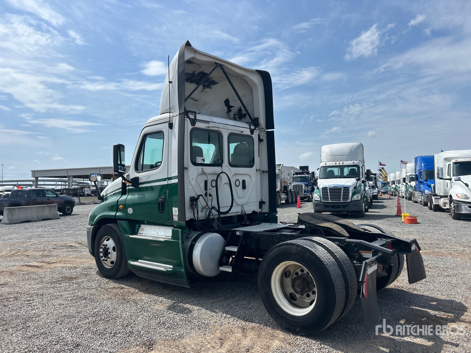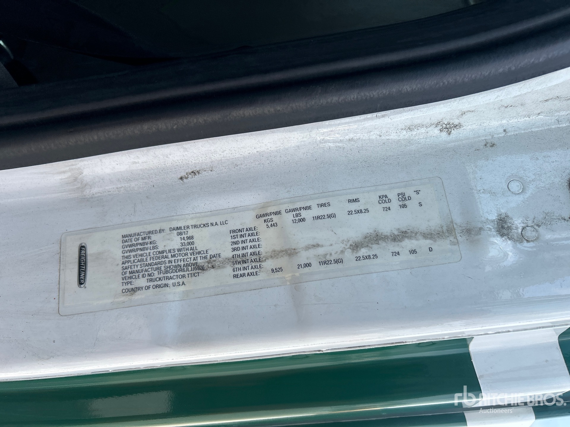 Situé sur la voie 32, emplacement 10, moteur Detroit DD15, étiquette EPA américaine 2017, transmission manuelle Eaton Fuller FR-14210B à 10 vitesses, essieu avant de 12 000 lb, essieu arrière de 21 000 lb, PTAC de 33 000 lb, empattement de 158 pouces, suspension pneumatique, pneus 11R22.5, double réservoir d'essence