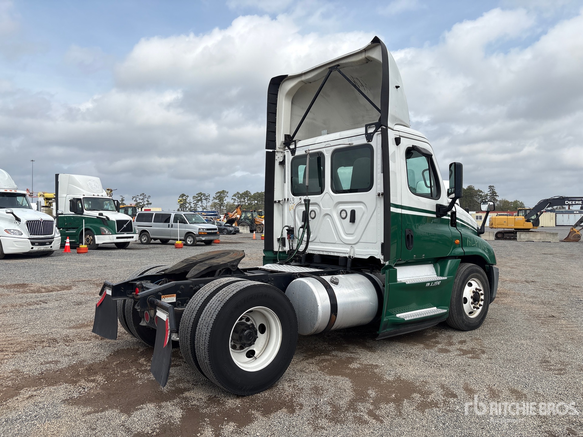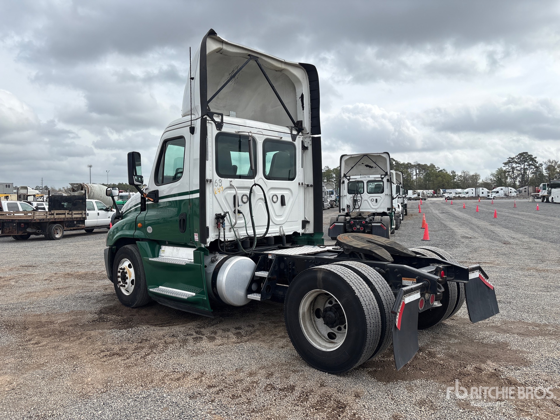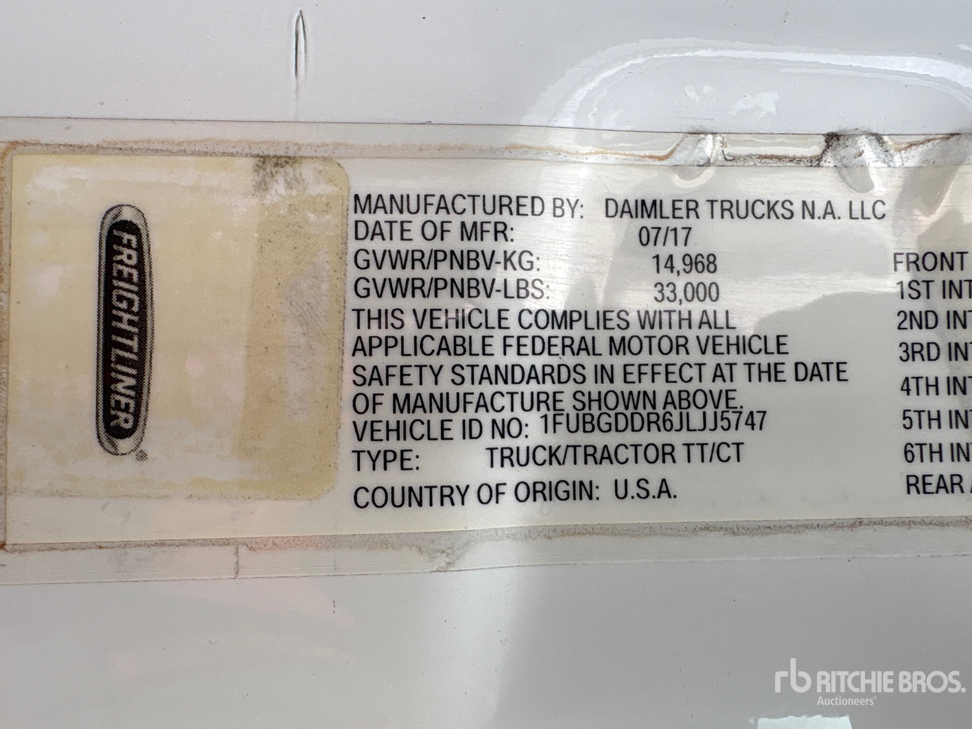 Situé sur la voie 32, emplacement 18, moteur Detroit DD15 de 505 ch, étiquette EPA américaine 2017, 7 219 heures de fonctionnement, transmission manuelle Eaton Fuller EATON FAO-15810C FULLER à 10 vitesses, essieu avant de 12 000 lb, essieux arrière de 21 000 lb, PTAC de 33 000 lb, frein moteur, empattement de 158 po, suspension pneumatique, pneus 11R22.5, double réservoir de carburant