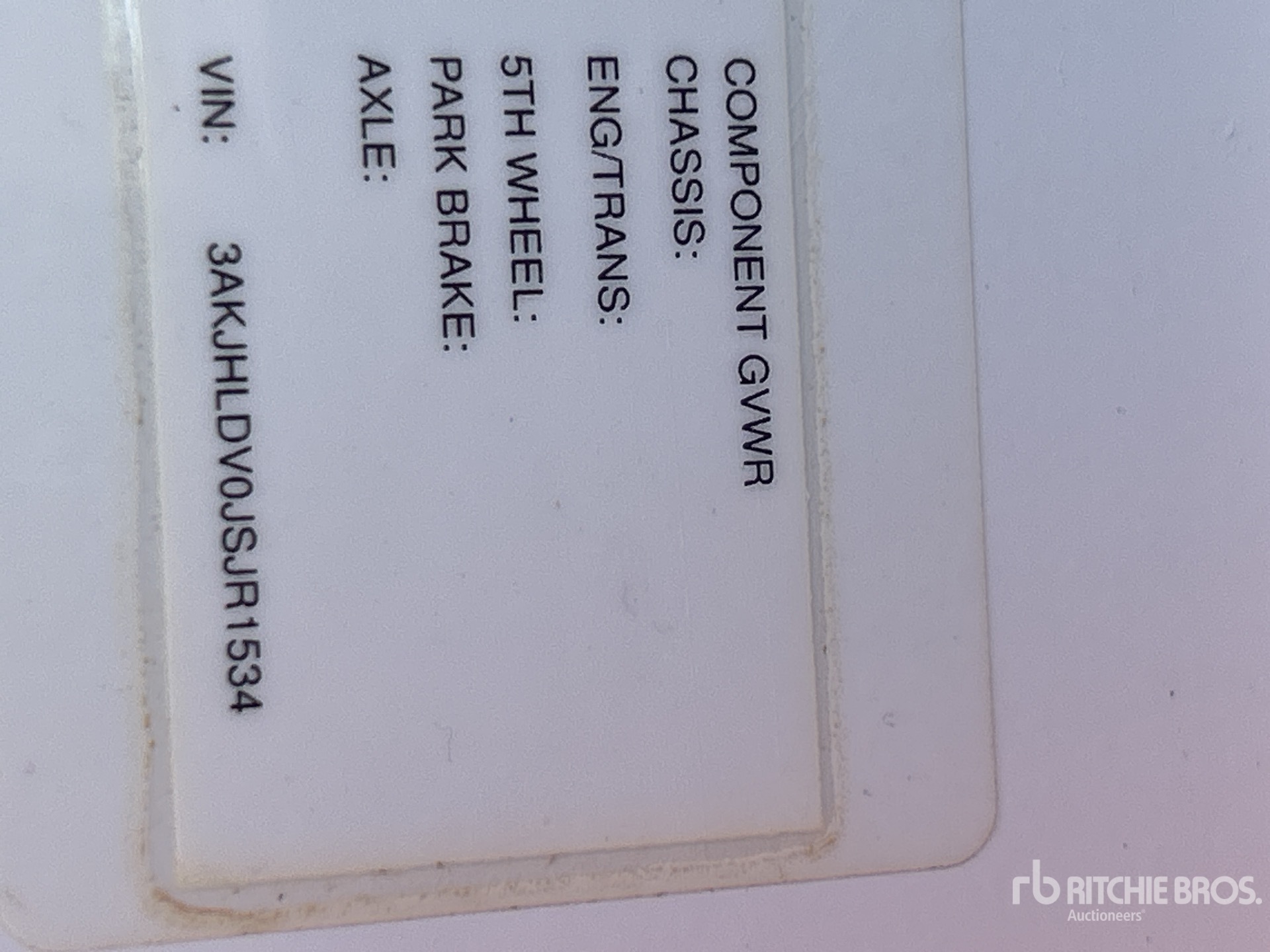 Moteur Detroit DD13 de 435 ch, homologué EPA 2018, 14 113,39 heures de fonctionnement, transmission automatisée Detroit DT12-1550-OH1 à 12 rapports, essieu avant de 5 443 kg (12 000 lb), essieu arrière de 18 144 kg (40 000 lb), PTAC de 23 590 kg (52 000 lb), frein moteur, empattement de 4,52 m (178 po), suspension pneumatique, pneus 11R22.5, sellette d'attelage coulissante pneumatique, double réservoir de carburant, véhicule de flotte entretenu par des professionnels (PAG)