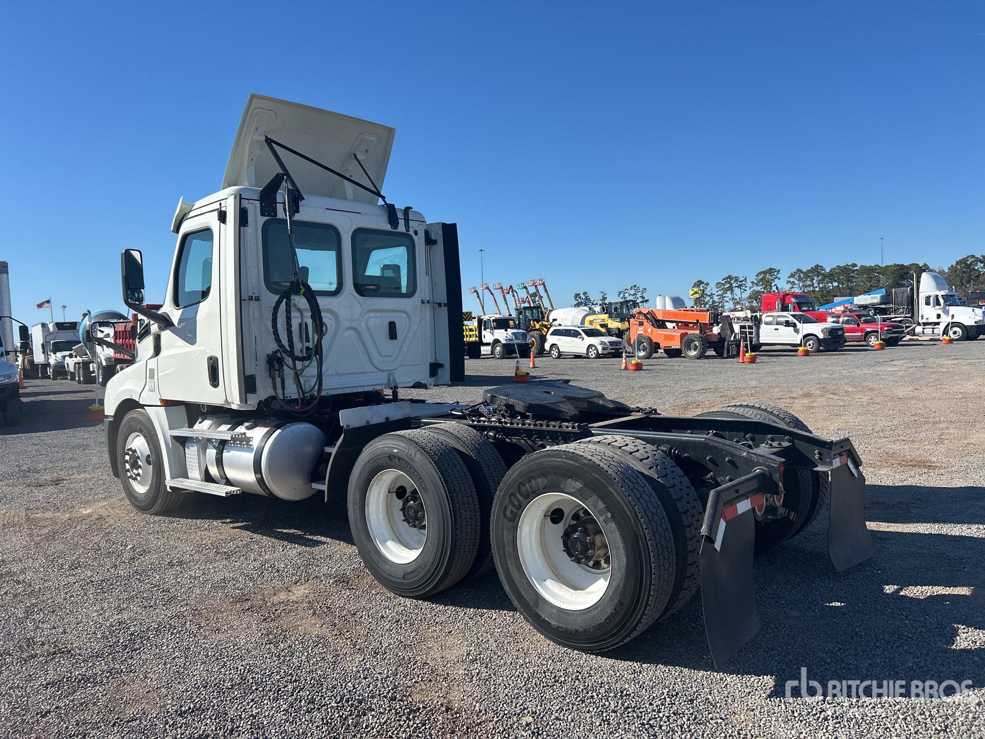Moteur Detroit DD13 de 435 ch, homologué EPA 2018, transmission automatisée Detroit DT12-1550-OH1 à 12 rapports, essieu avant de 5443 kg (12 000 lb), essieu arrière de 1814 kg (40 000 lb), PTAC de 23 590 kg (52 000 lb), ralentisseur, empattement de 452 cm (178 po), suspension pneumatique, pneus 11R22.5, sellette d'attelage coulissante pneumatique, double réservoir de carburant, véhicule de flotte entretenu par des professionnels (PAG)