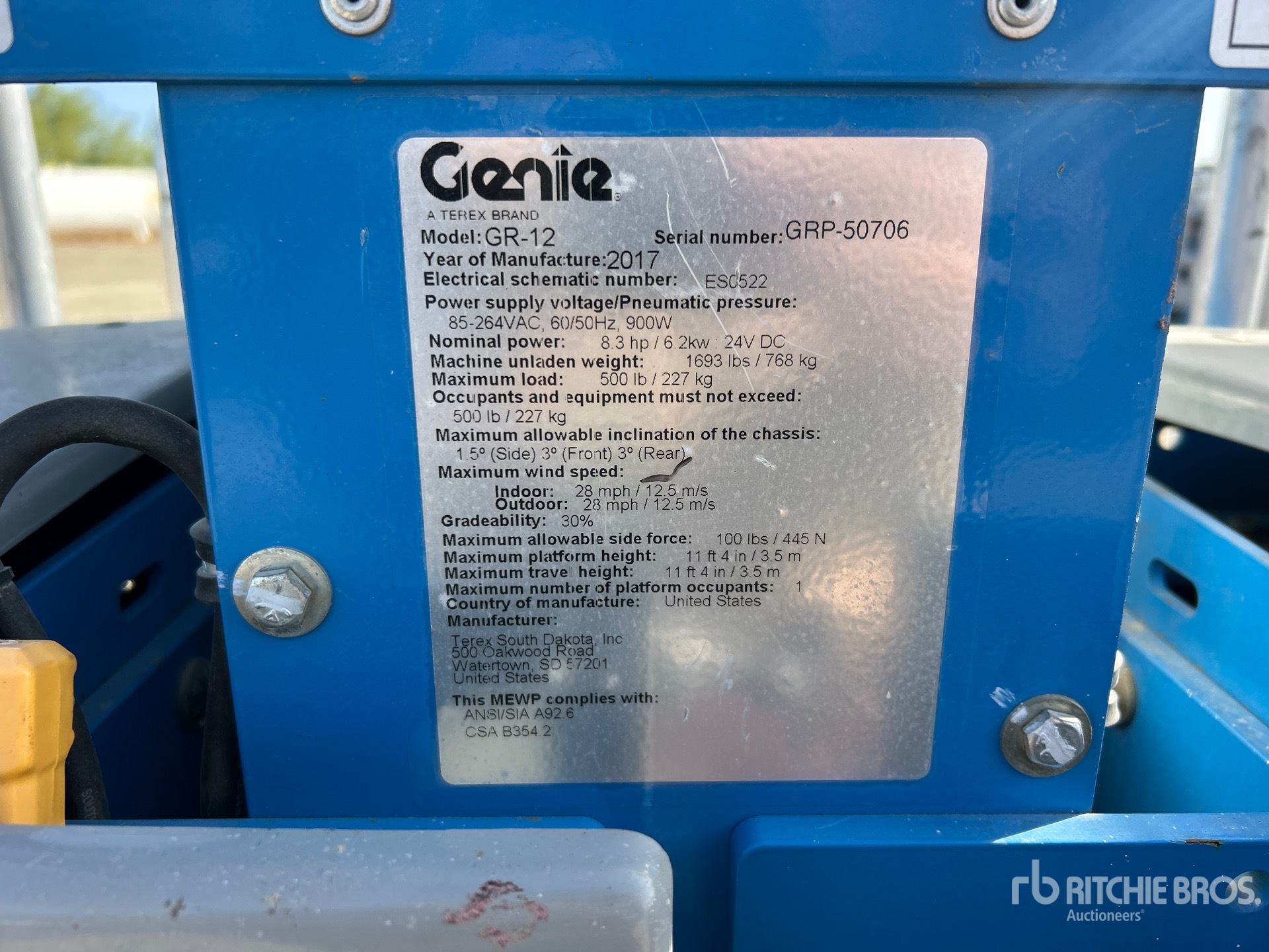 Les Informations détaillées de l’équipement sont d’une portée limitée, et les Encans Ritchie Bros. n’ont inspecté aucun autre aspect ou composant de l’équipement que ceux présentés expressément. Sauf indication précise, nous n’offrons aucune représentation ou garantie, officielle ou implicite, sur l’équipement ou ses composants, sans aucune limite de représentation ou de garantie en ce qui concerne la fonctionnalité, la conformité à toute norme de sécurité ou l’exigence de toute autorité ou agence de régulation en vigueur, l’adaptation à un quelconque usage, ou la valeur commerciale. Il vous est fortement conseillé d’effectuer votre propre inspection détaillée de l’équipement avant d’enchérir.
