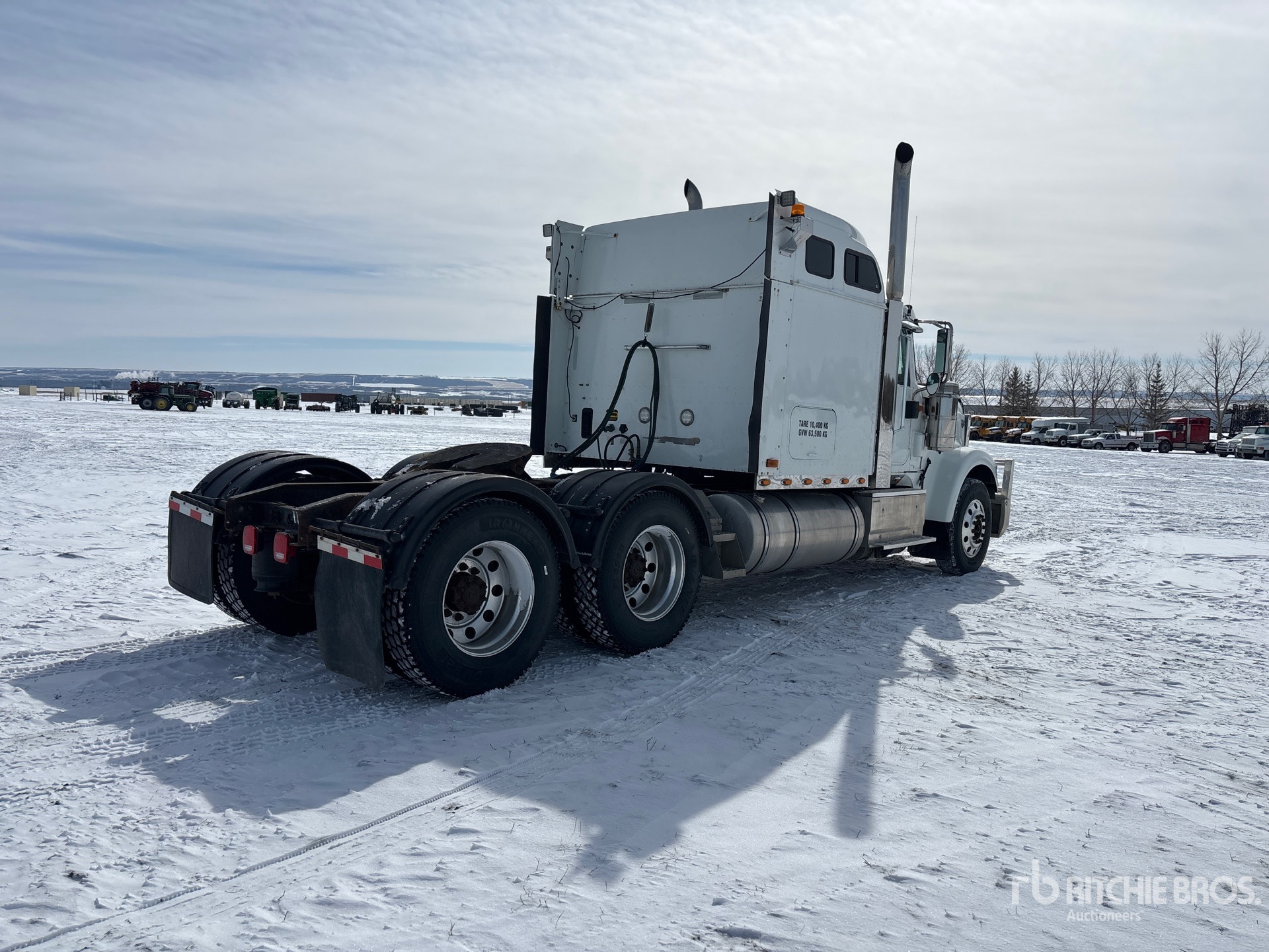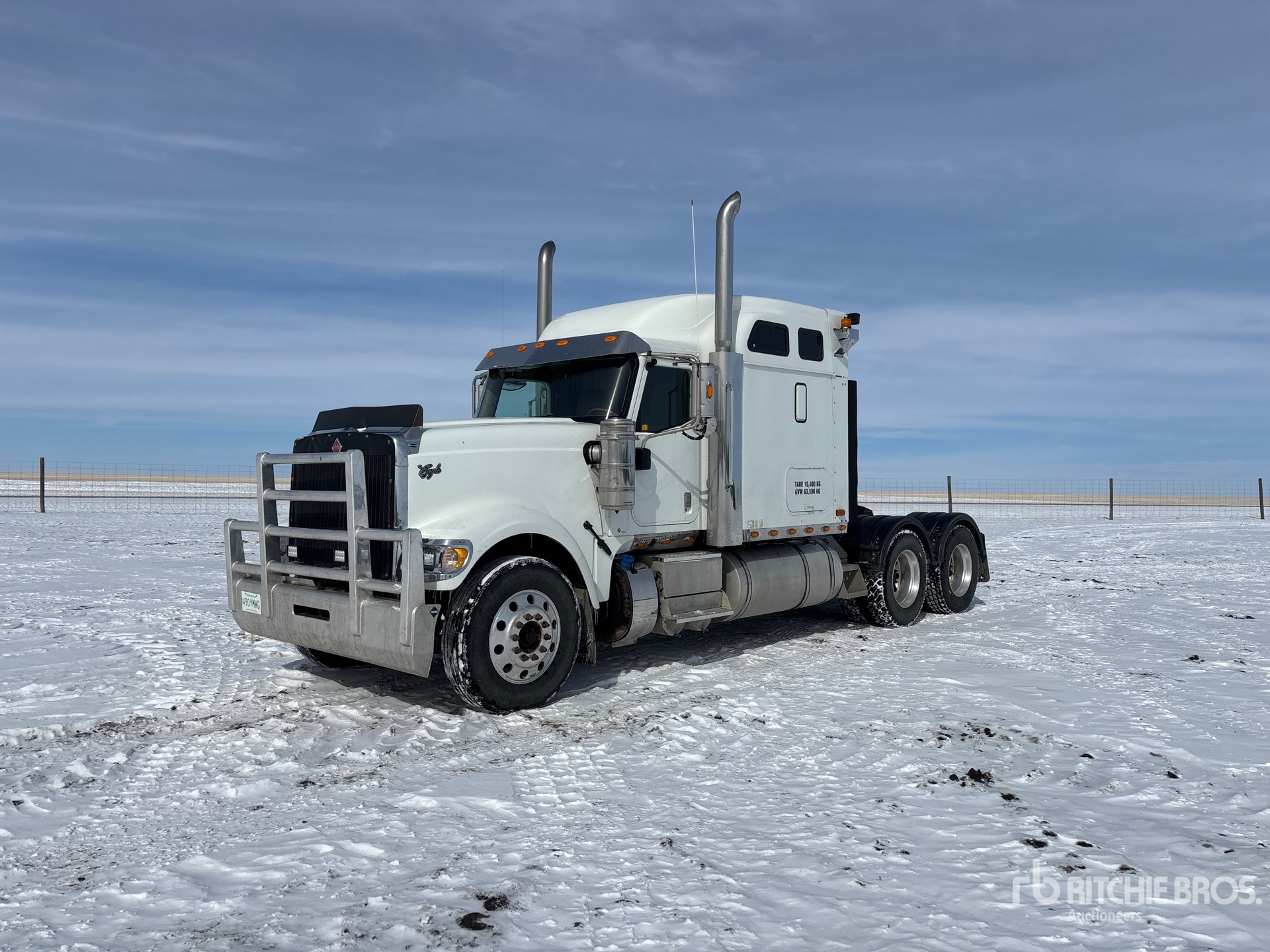 Moteur Cummins ISX15 de 550 ch, réchauffeur de liquide de refroidissement, 8 977 heures de fonctionnement, transmission manuelle Eaton Fuller à 18 vitesses, essieu avant de 6 350 kg, essieu arrière de 18 144 kg, PTAC de 24 450 kg, frein moteur, double blocage de différentiel, cabine couchette à toit surélevé de 142 cm, chauffage de couchette, empattement de 620 cm, suspension pneumatique, jantes en aluminium, pneus 11R24.5, sellette d'attelage coulissante pneumatique, double réservoir de carburant