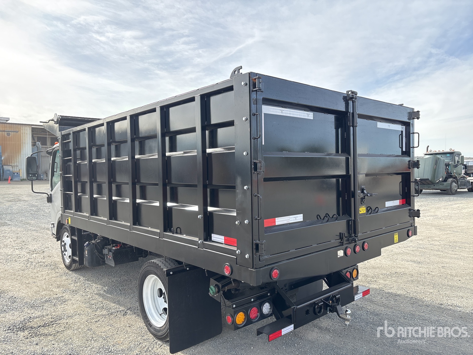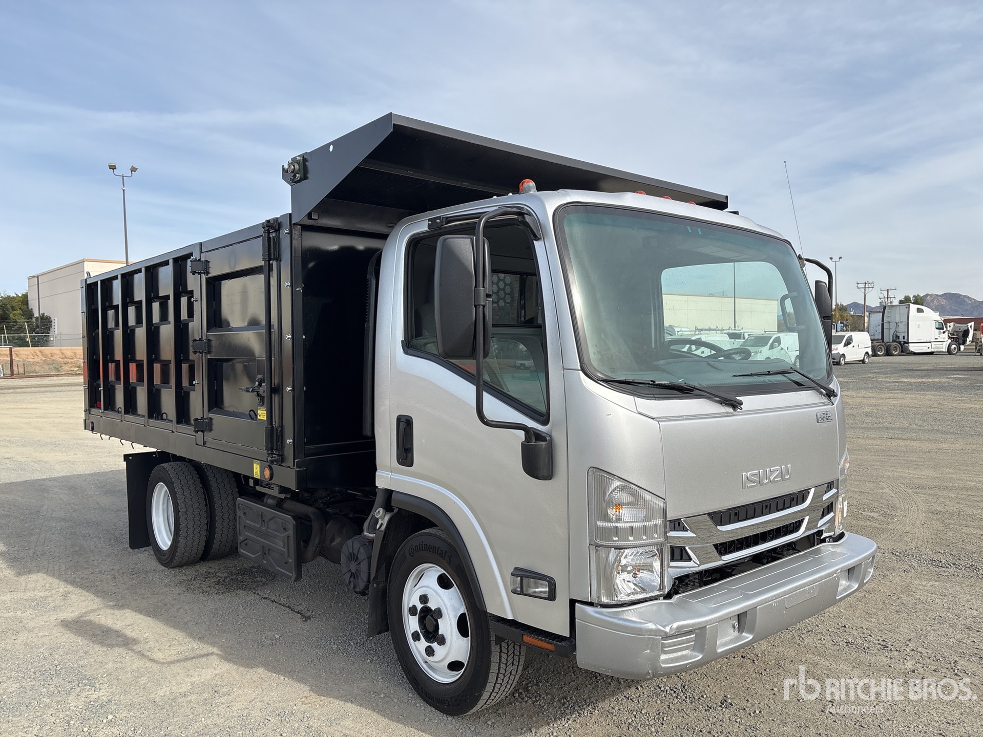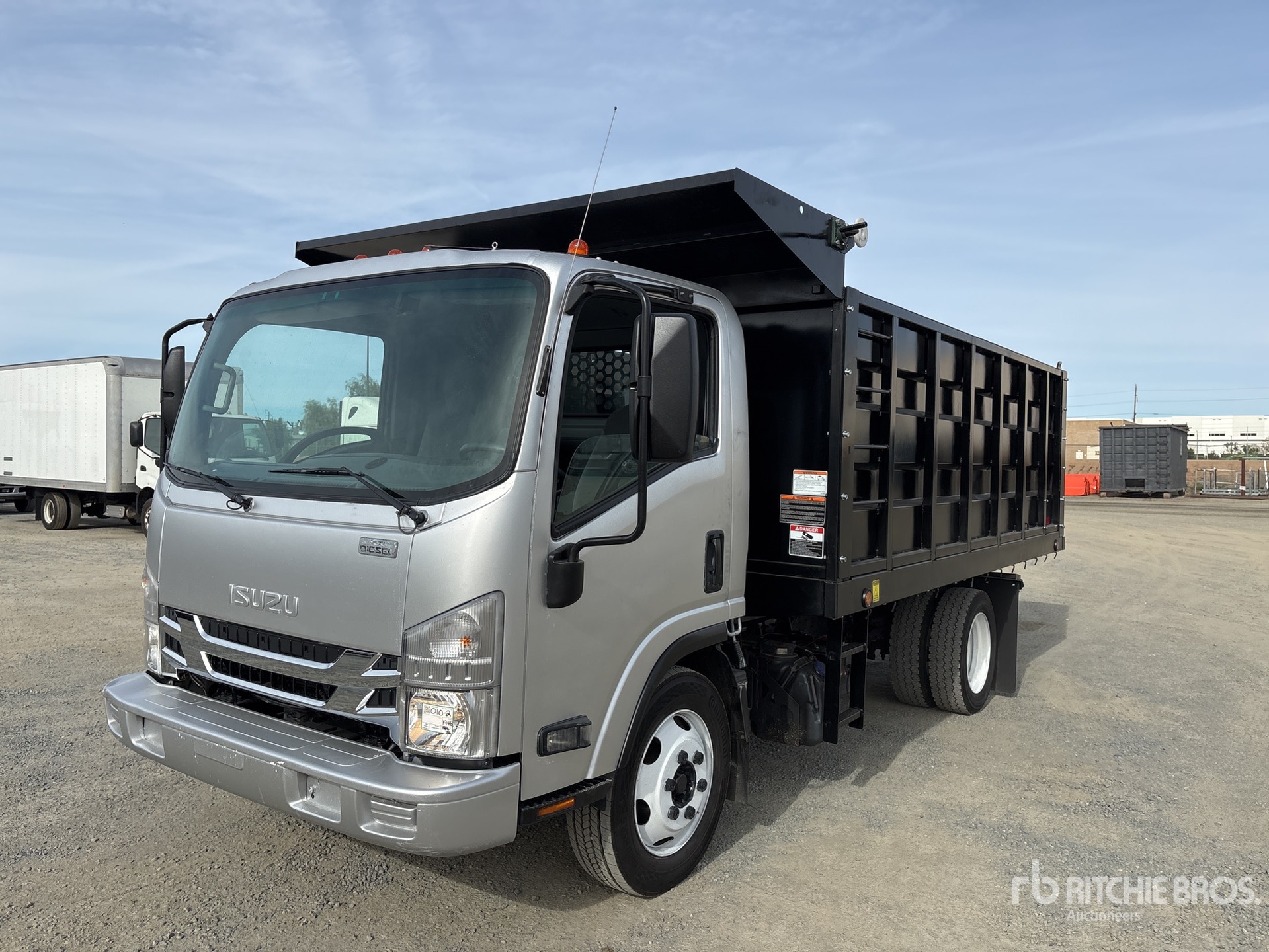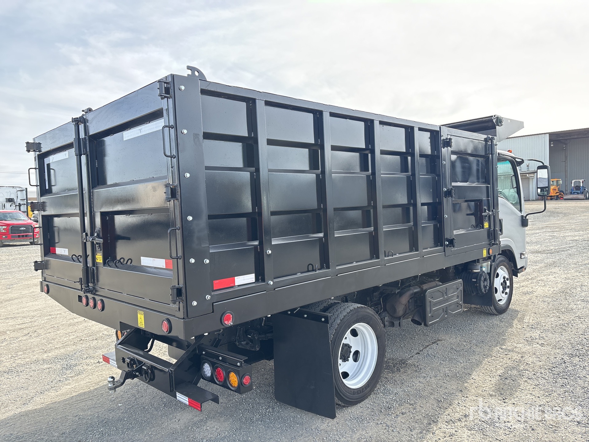 Moteur diesel Isuzu 4HK1TC 4 cylindres, homologué EPA 2017, nécessite un additif pour réservoirs de diesel, 4 834 heures de fonctionnement, transmission automatique, essieu avant de 3 300 kg, essieux arrière de 6 200 kg, PTAC de 8 845 kg, pneus 225/70R19.5, suspension à ressorts, empattement de 3,35 m, carrosserie en acier de 4,27 m de long x 1,22 m de hauteur, bâche à enroulement manuel, hayon arrière à ouverture latérale.