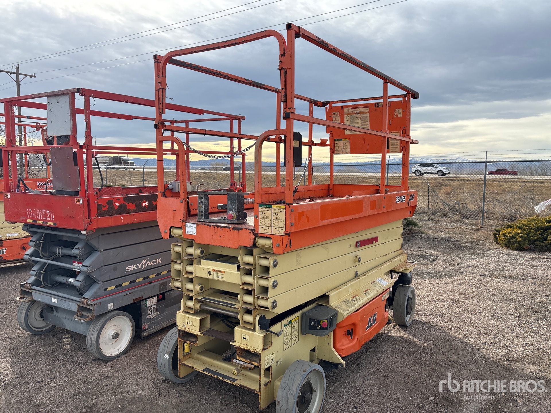 Hauteur maximale de la plateforme : 32 pi, capacité de charge maximale : 700 lb, rallonge de la plateforme, alimentation électrique, pneus pleins non marquants