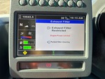 Le moteur a démarré et a fonctionné. Le témoin d'avertissement « Filtre d'échappement bouché » est allumé. Le témoin d'avertissement « Puissance du moteur limitée » est allumé.