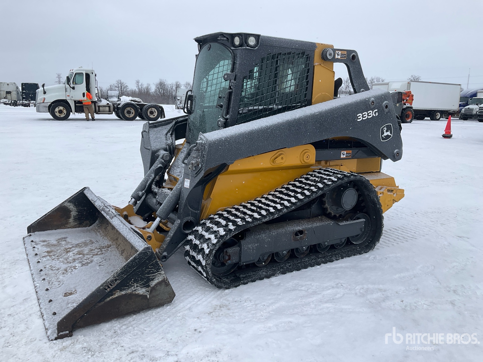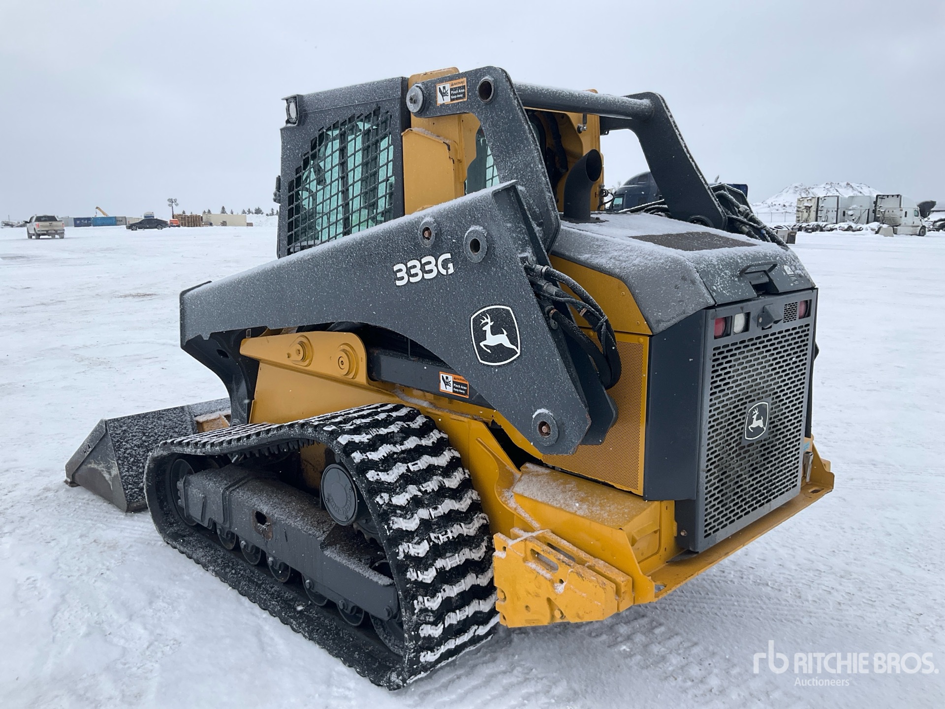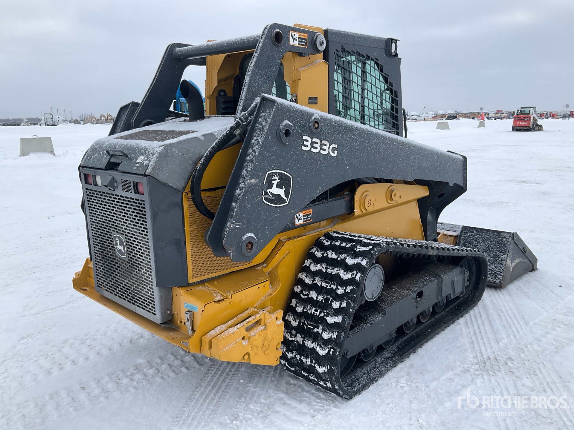 Cabine fermée, climatisation, système de contrôle de la conduite, caméra de recul, chenilles de 45,7 cm (18 po), attelage manuel, godet de 213 cm (84 po), ensemble de contrepoids