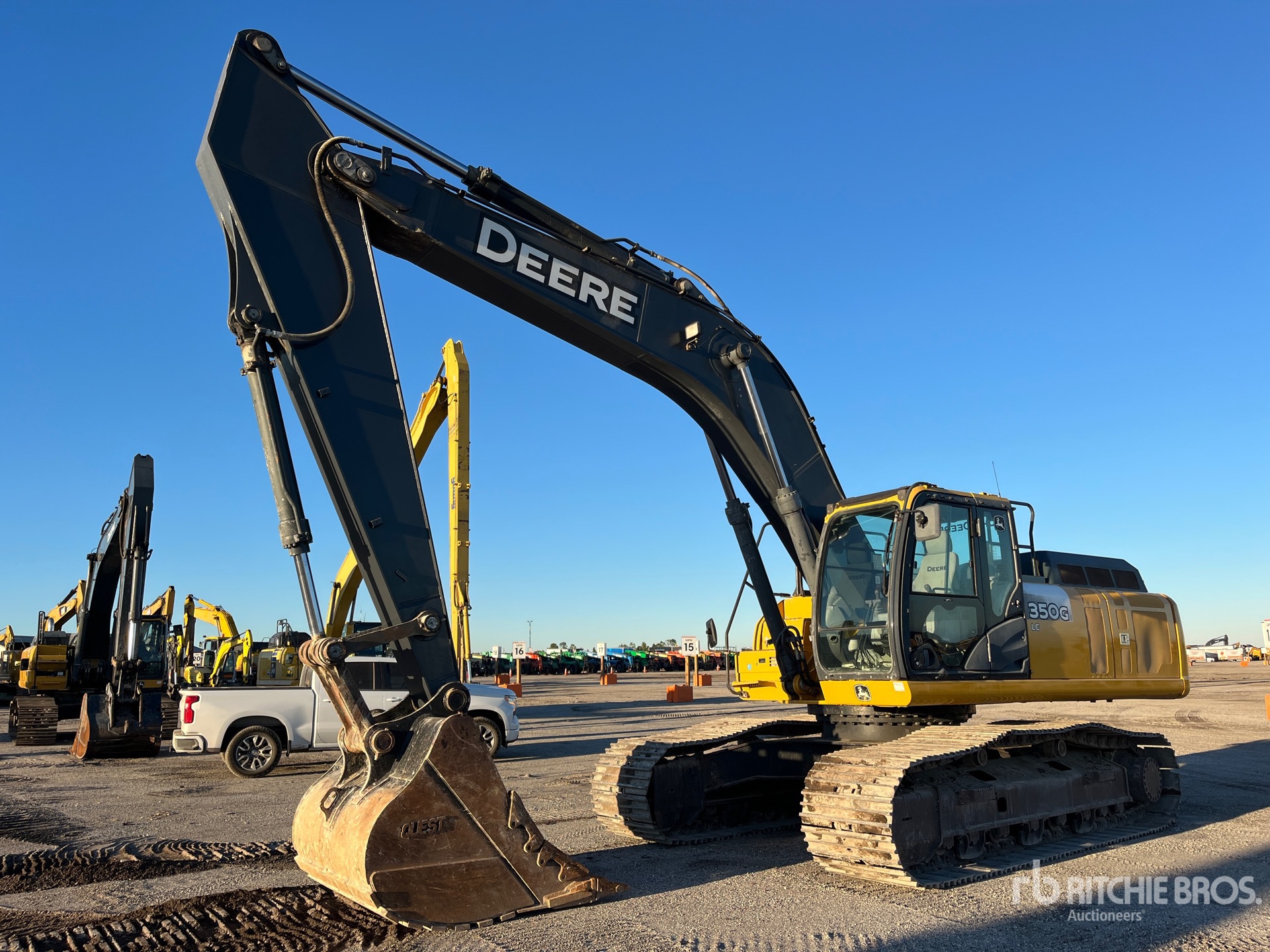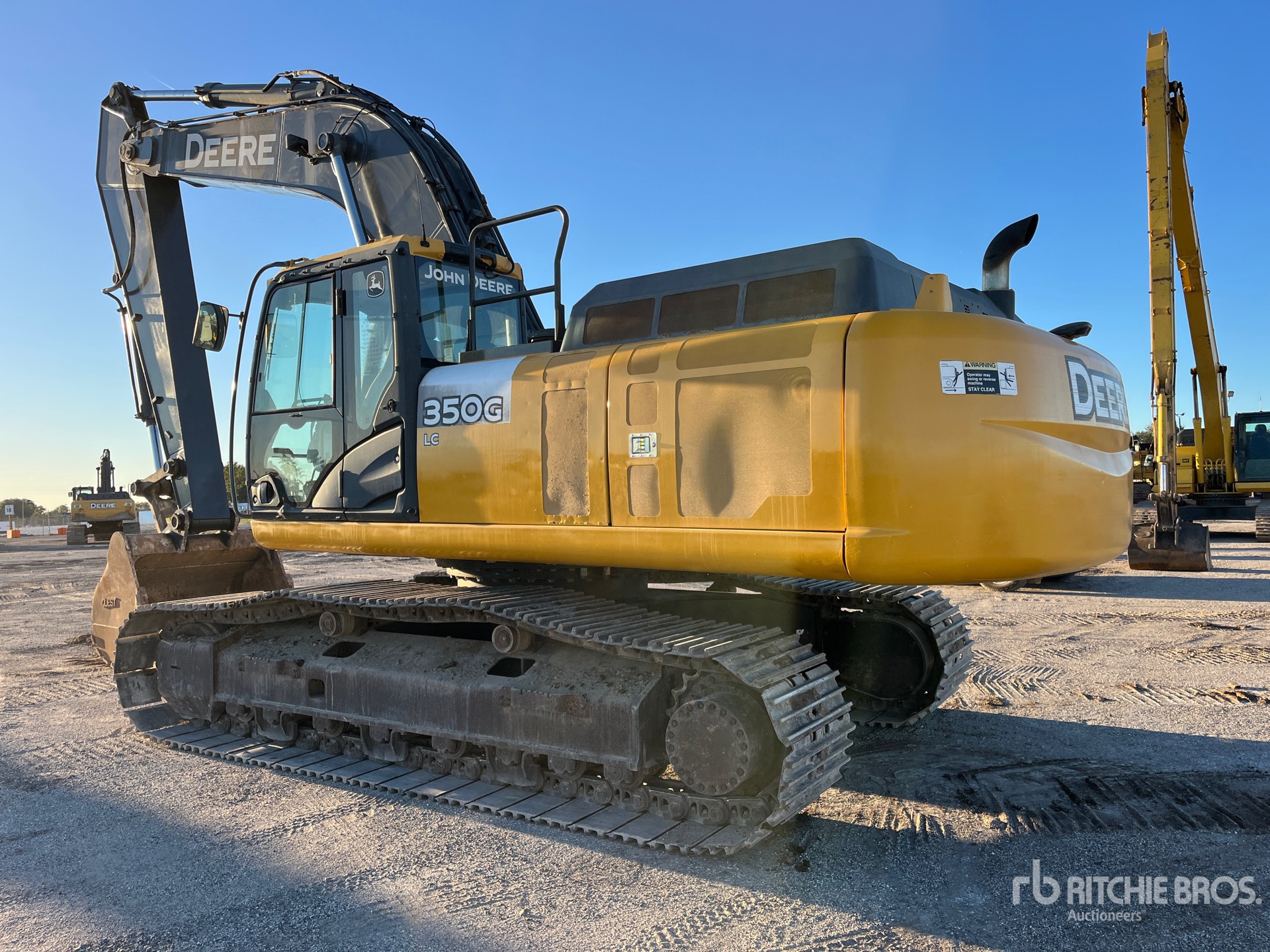 Climatisation, sélecteur de mode de commande, caméra de recul, homologation EPA américaine, nécessite du liquide d'échappement diesel, bras de 4 m, chenilles à triple crampon de 80 cm, godet de creusement de 150 cm