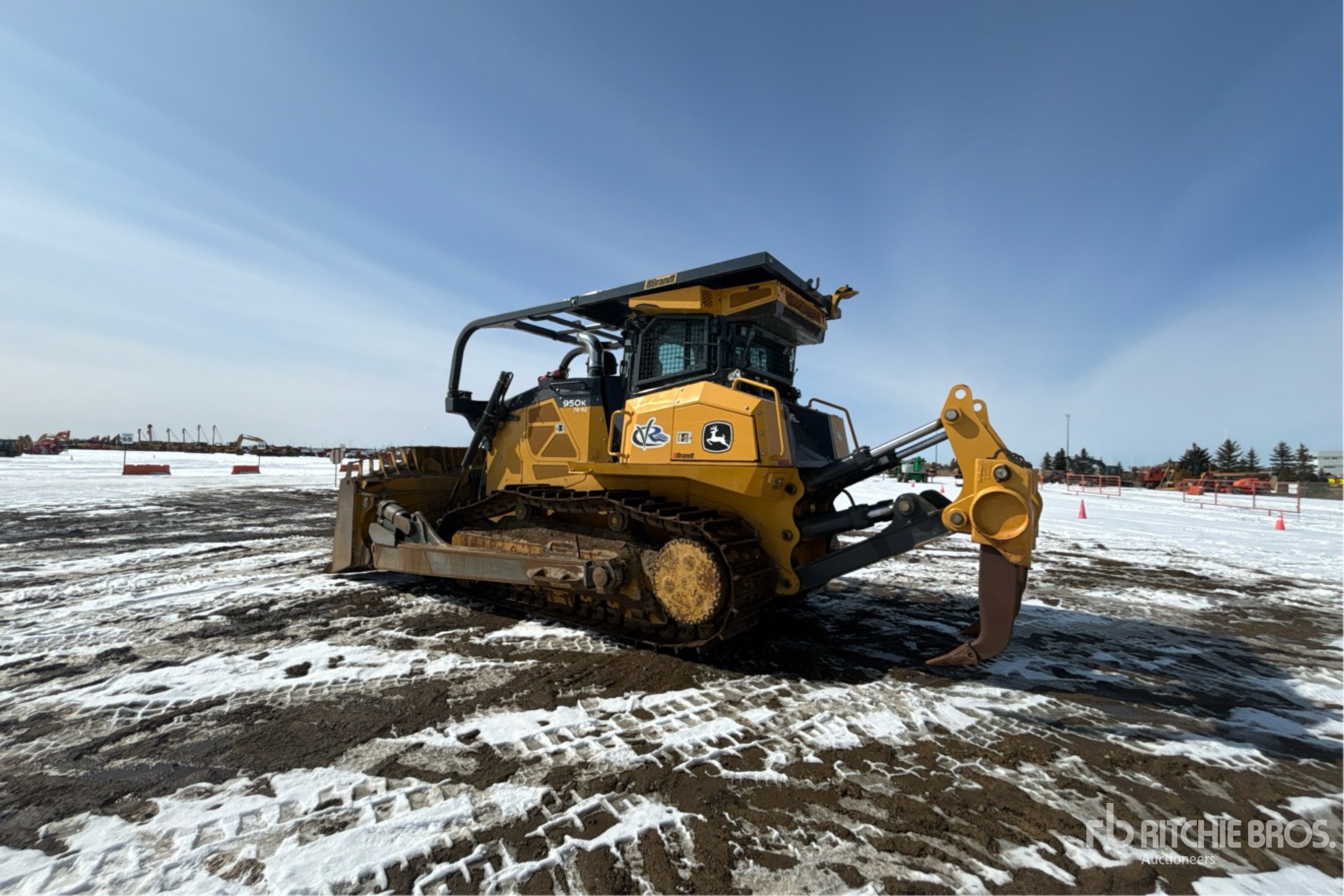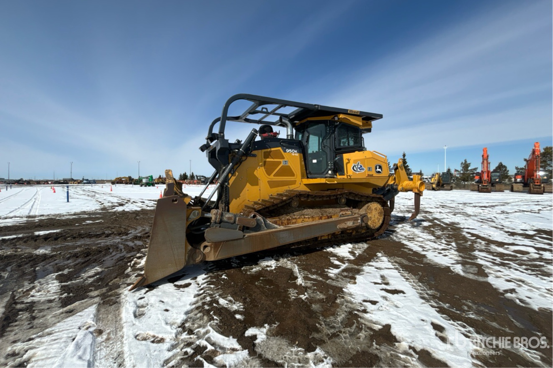 Cabine fermée, climatisation, précâblée pour le contrôle de nivellement, homologation EPA américaine 2018, conforme aux normes CARB, nécessite un fluide d'échappement diesel, balayeuses, système d'alimentation rapide, lame semi-U de 3,70 m de large avec double inclinaison, chenilles à crampons simples de 66 cm, ripper à 4 dents multiples