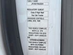 Moteur Cummins X15 de 400 ch, homologué EPA 2017, 11 385,3 heures de fonctionnement, essieu avant de 5 443 kg, essieux arrière de 10 284 kg, PTAC de 15 773 kg, frein moteur, empattement de 3 944 cm, suspension pneumatique, pneus avant et arrière 275/80R22.5, sellette d'attelage coulissante pneumatique, deux réservoirs de carburant.