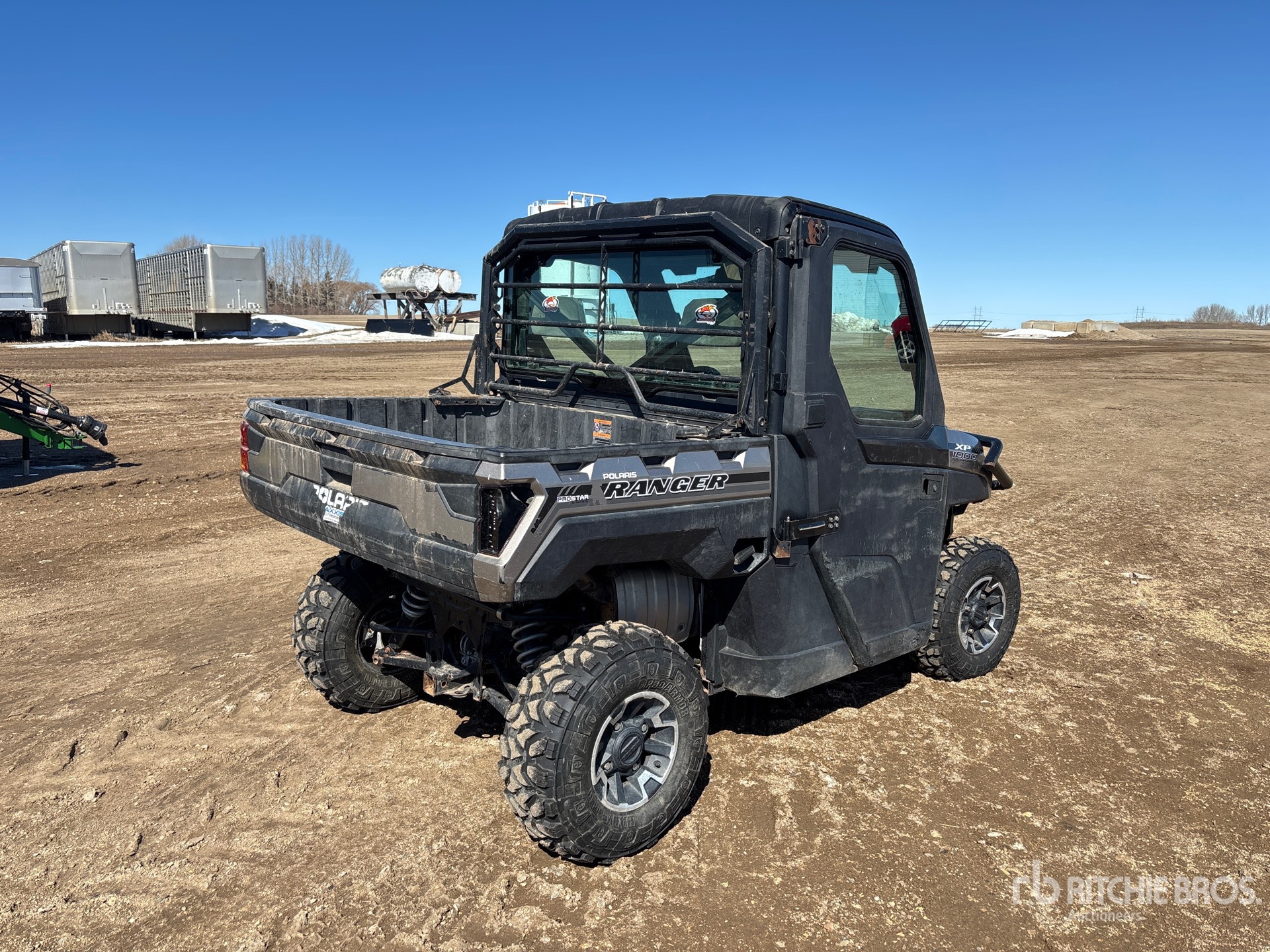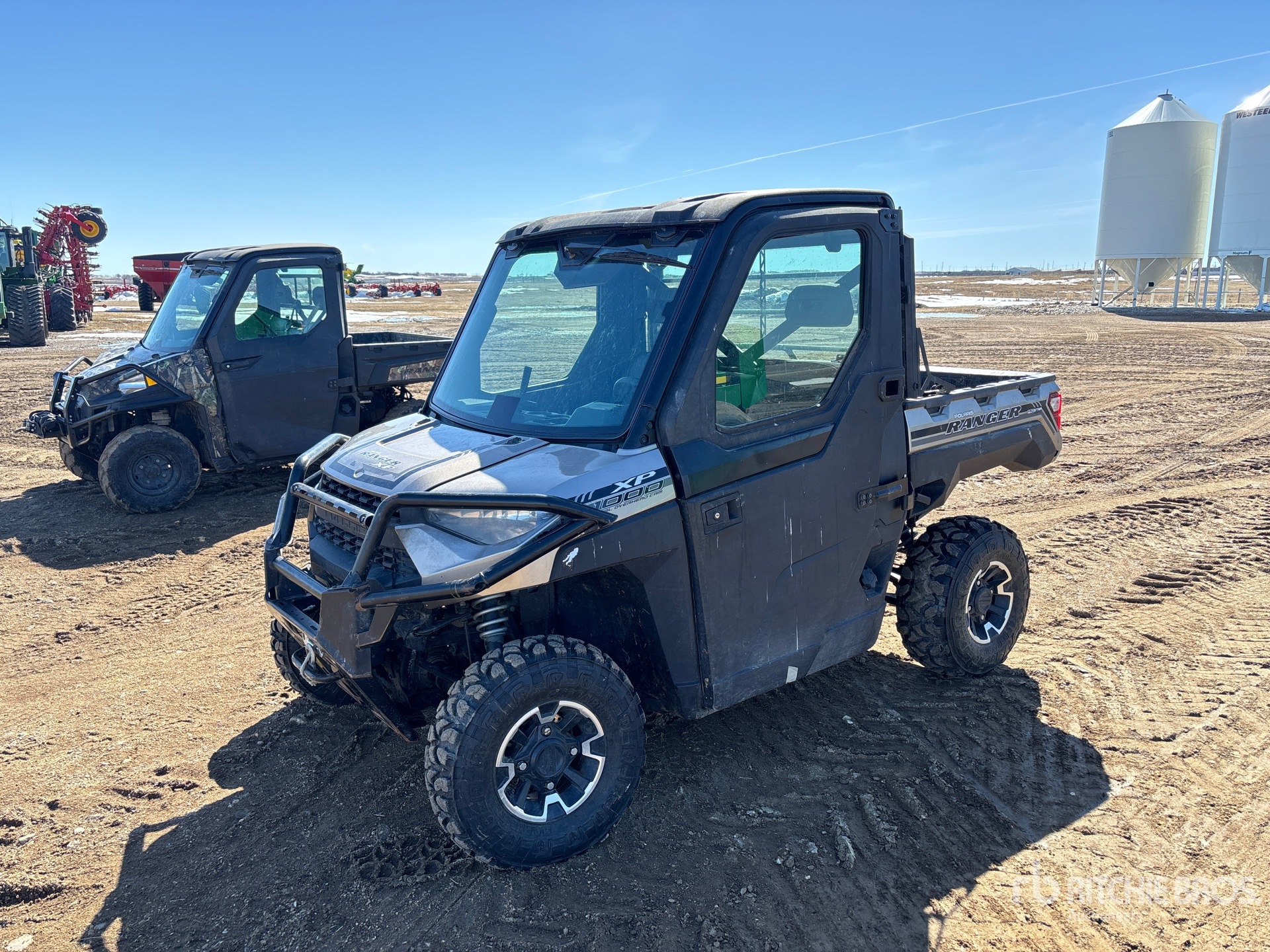 Cabine fermée, 2 places, treuil, benne basculante manuelle, moteur à essence Polaris 2 cylindres