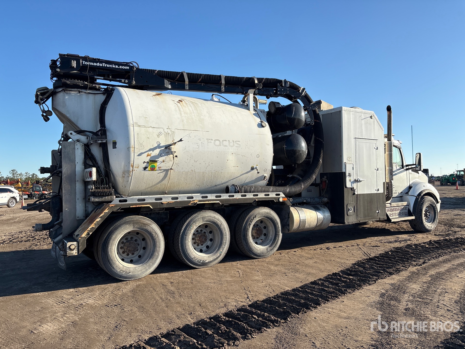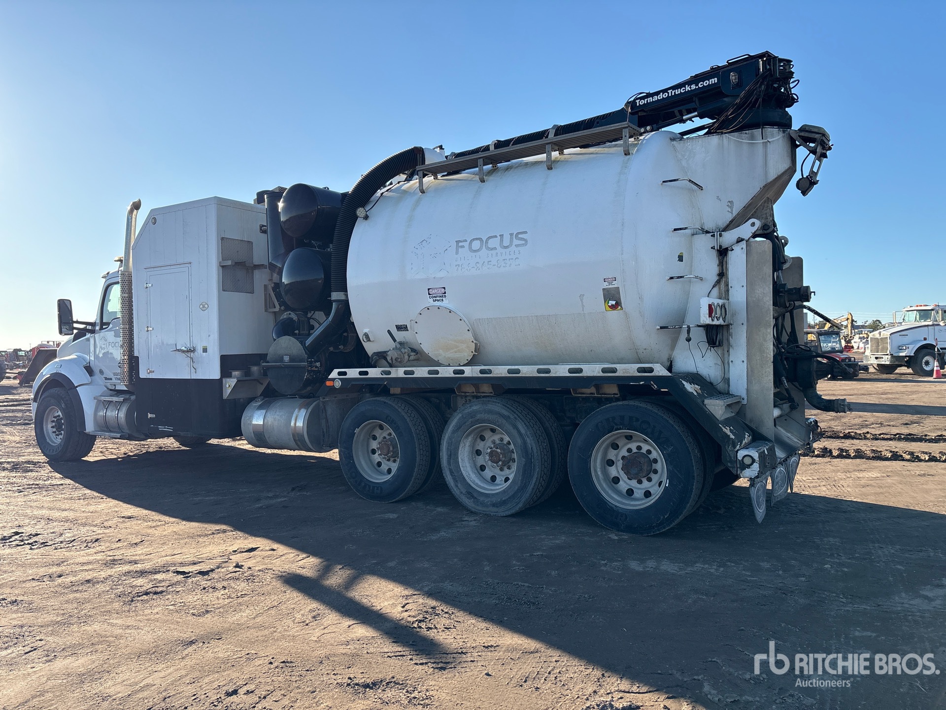 Moteur diesel Cummins X15 14,9 L 485 ch, homologué EPA 2017, 9 695 heures de fonctionnement, frein moteur, boîte de vitesses manuelle Eaton Fuller RTLO-18918B à 18 rapports, double blocage de différentiel, essieu avant de 9 072 kg, essieux arrière de 29 037 kg, essieux moteurs Spicer, rapport de pont de 4,30:1, jantes en aluminium, pneus avant 445/65R22.5, pneus arrière 11R24.5, suspension pneumatique, empattement de 853 mm, prise de force, cuve à débris en acier de 6 437 litres, hayon entièrement ouvrant, flèche, chaudière Dynablast