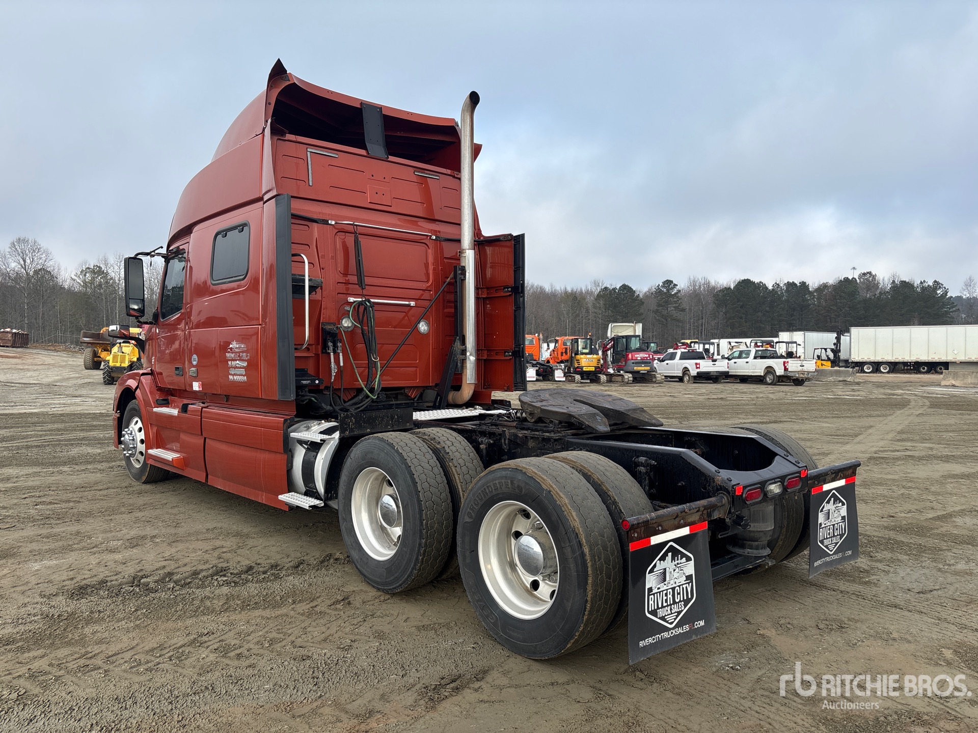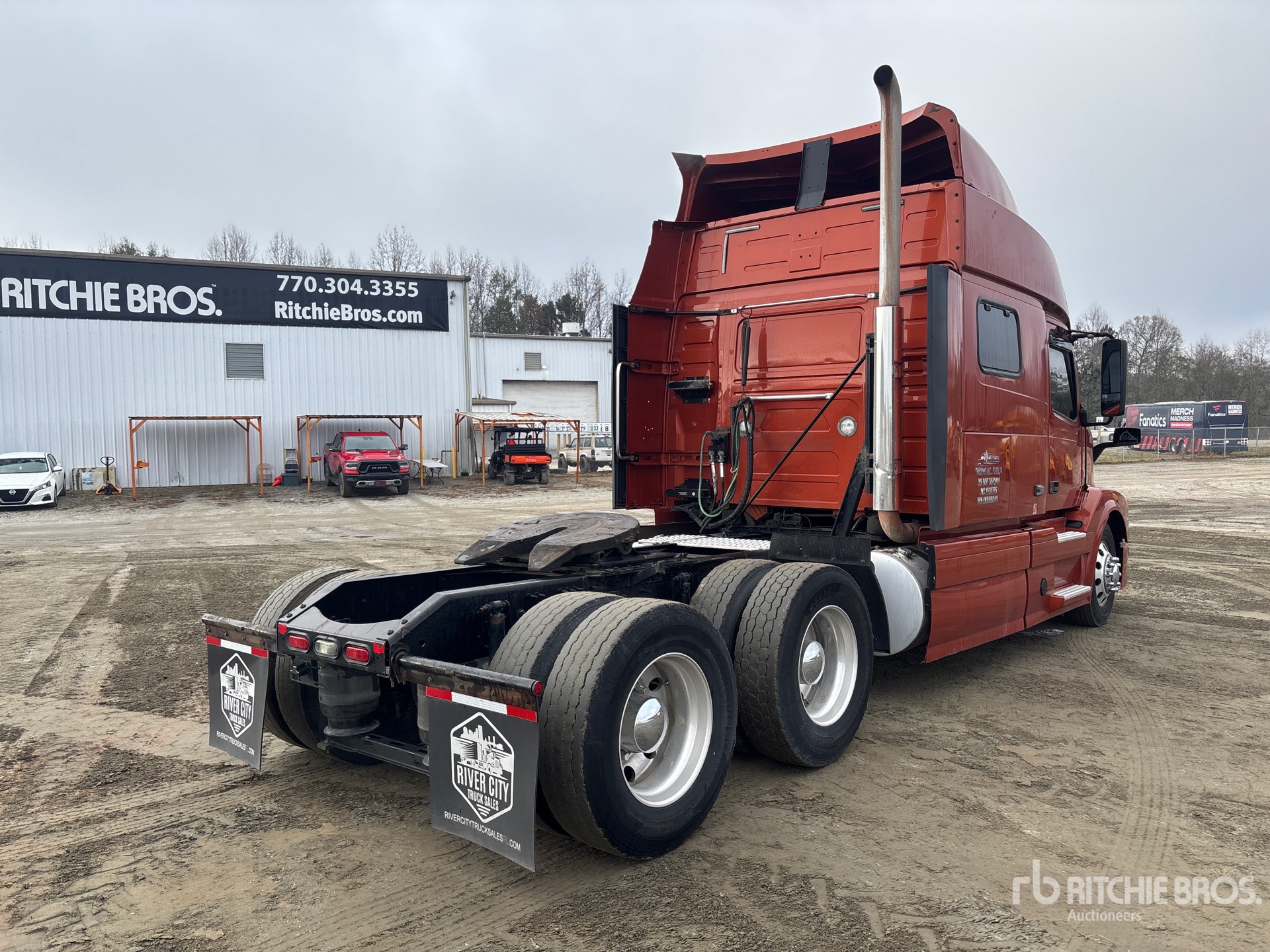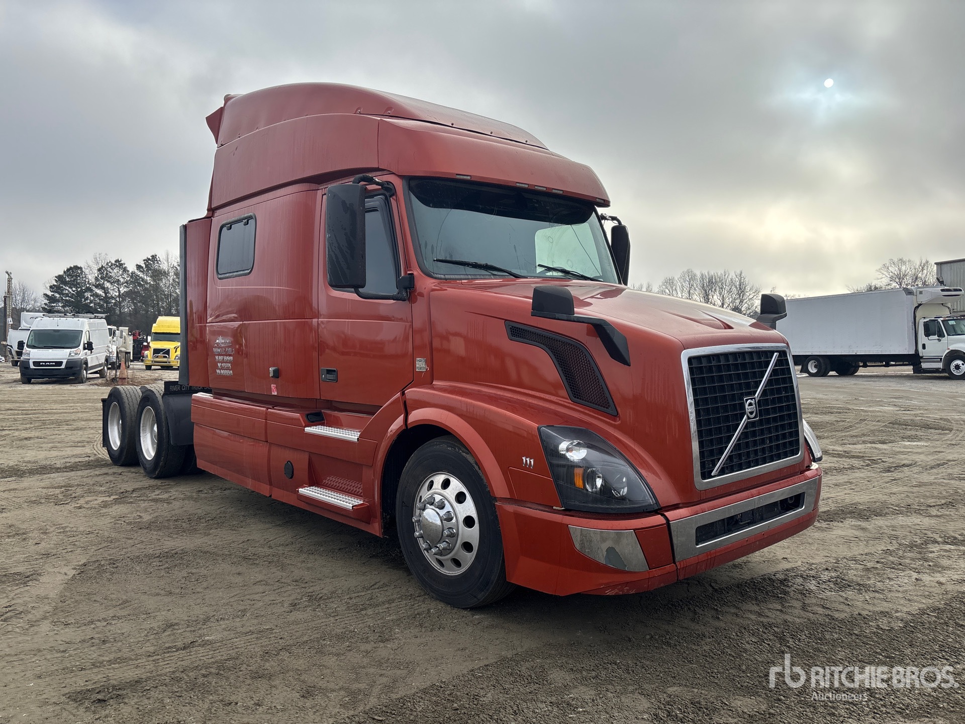 Situé sur la voie 1, emplacement 40, moteur Volvo D13M de 455 ch, homologué EPA 2017, 23 608,6 heures de fonctionnement, transmission automatisée Volvo ATO2612F à 12 rapports, essieu avant de 5 600 kg, essieu arrière de 17 240 kg, PTAC de 22 800 kg, cabine couchette surélevée de 178 cm, empattement de 58 cm, suspension pneumatique, jantes en aluminium, pneus 295/75R22.5, sellette d'attelage coulissante pneumatique, double réservoir de carburant.