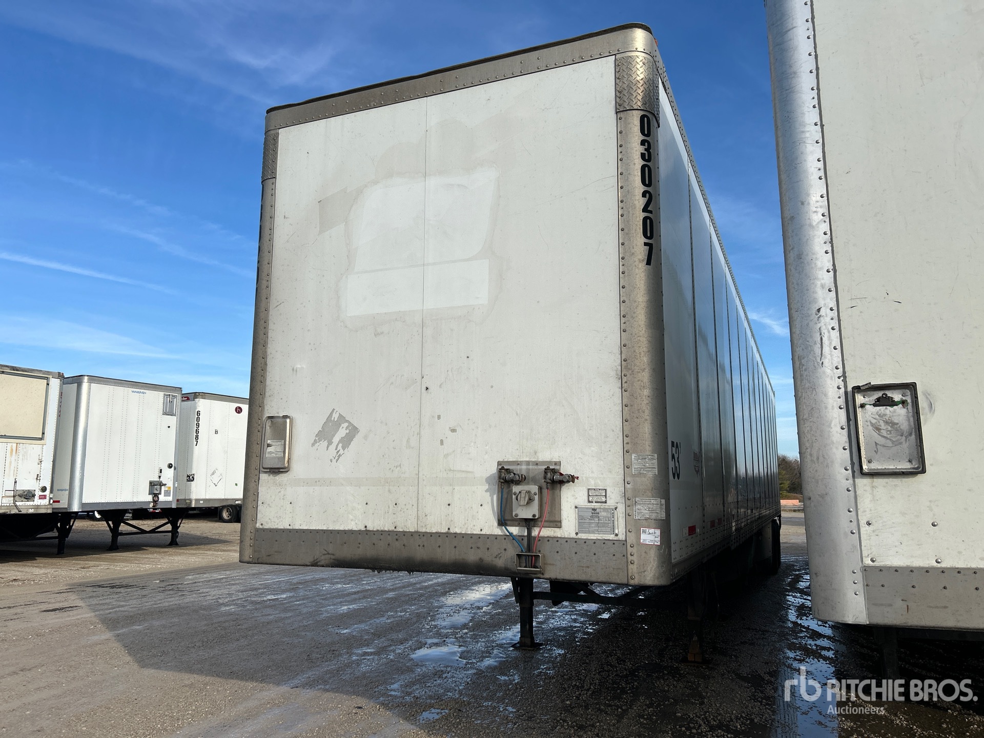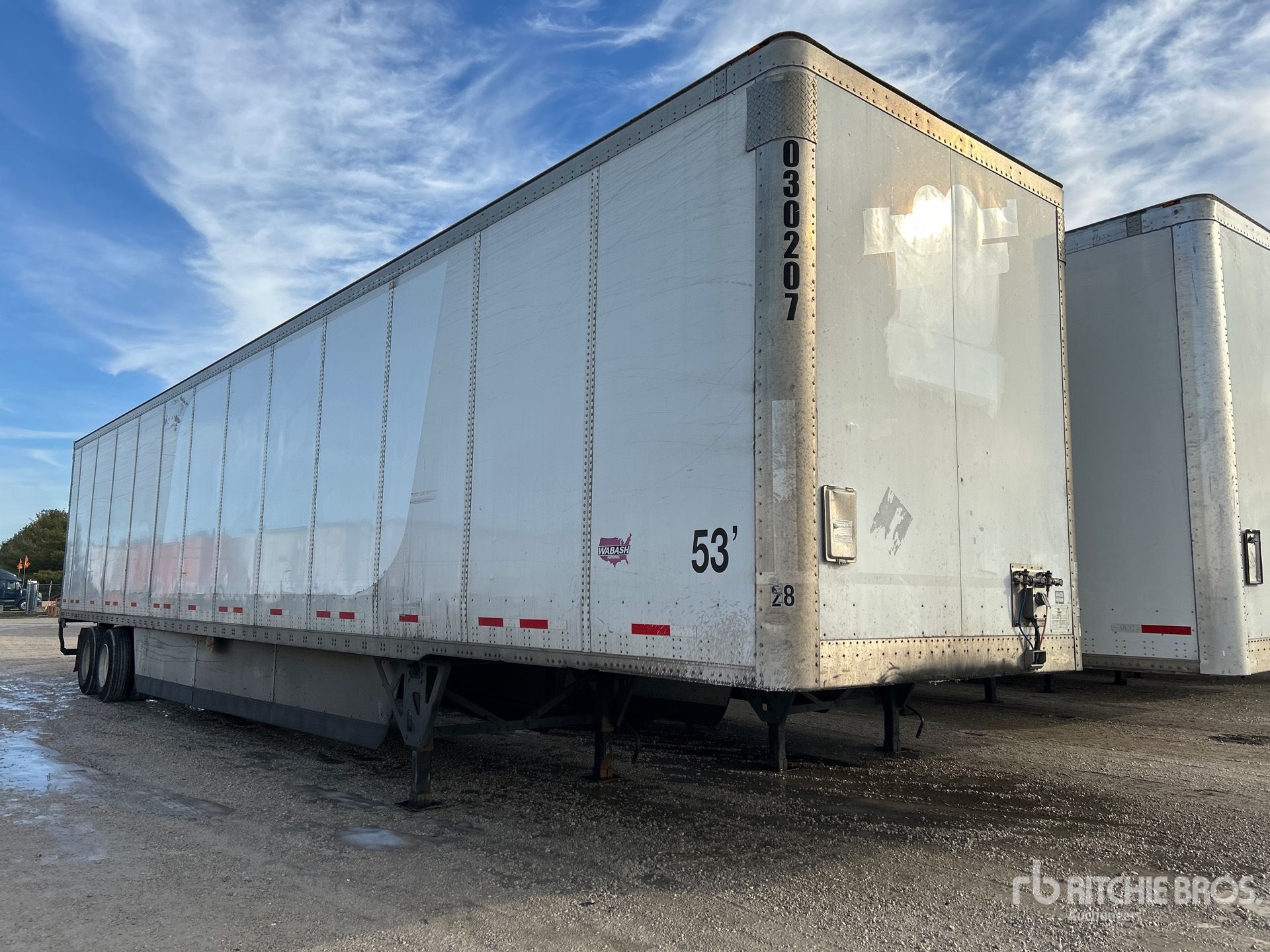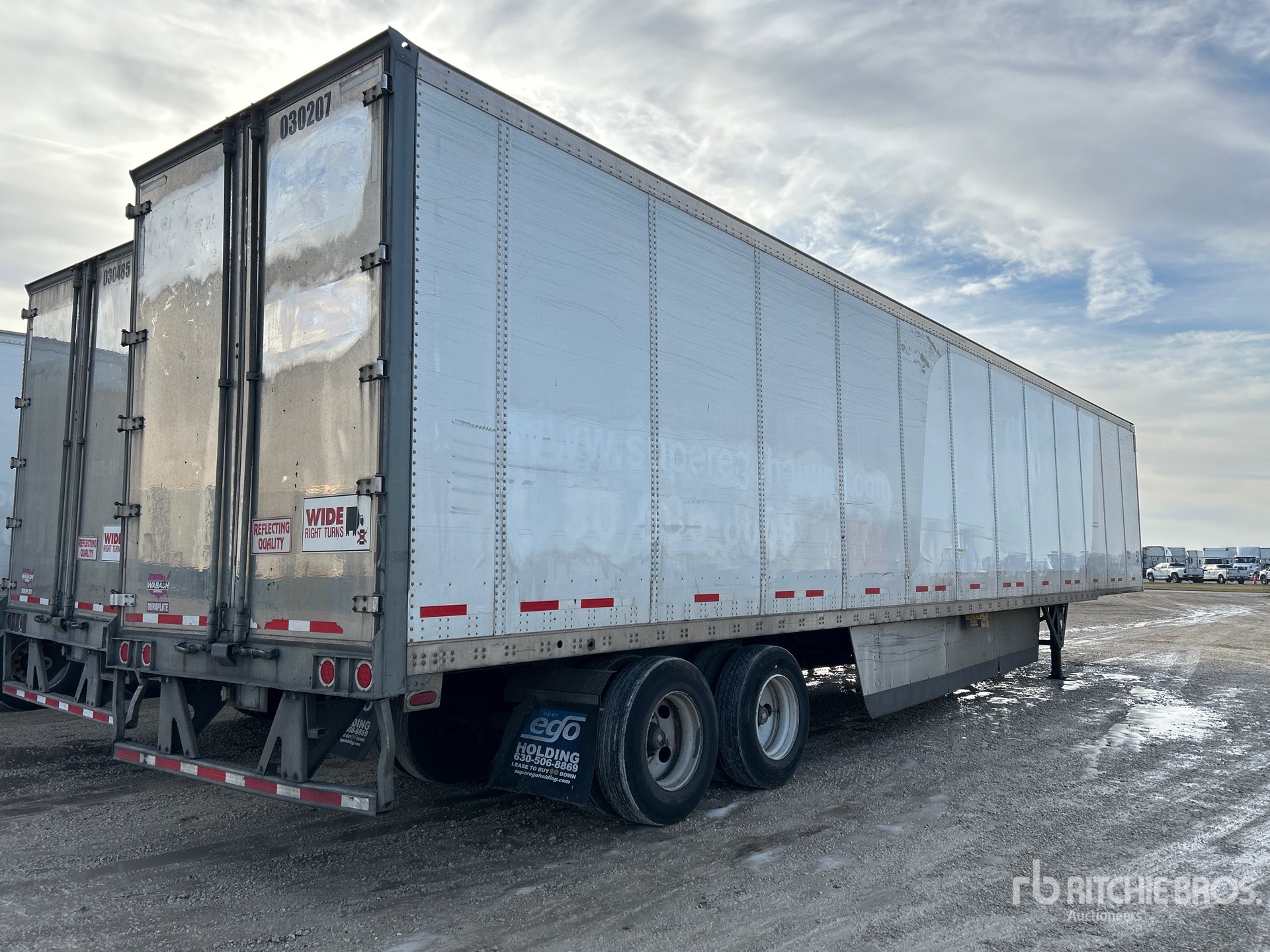 Suspension à ressorts coulissants, jupes latérales, plancher de bois franc, porte battante, pneus 295/75R22.5, PNBV de 68 000 lb