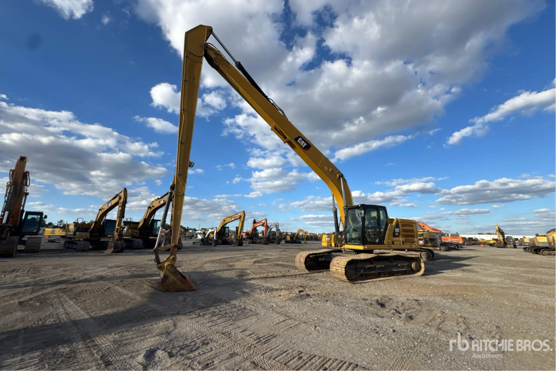 Climatiseur, pédale de déplacement droit, homologation EPA américaine 2018, flèche de 9,75 m, manche de 7,90 m, chenilles à triple crampons de 80 cm, godet de nettoyage de 1,47 m