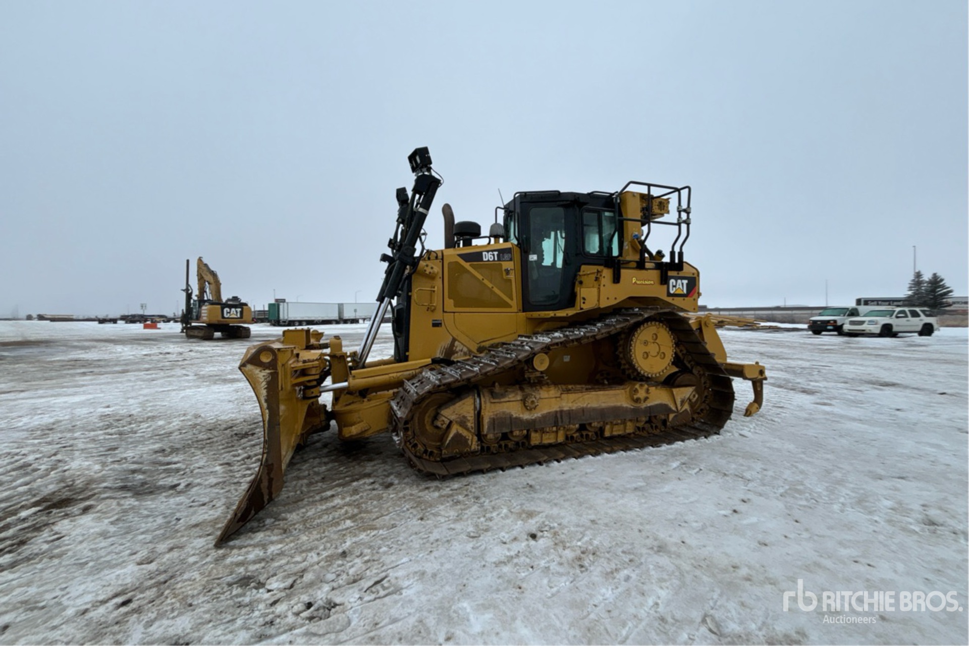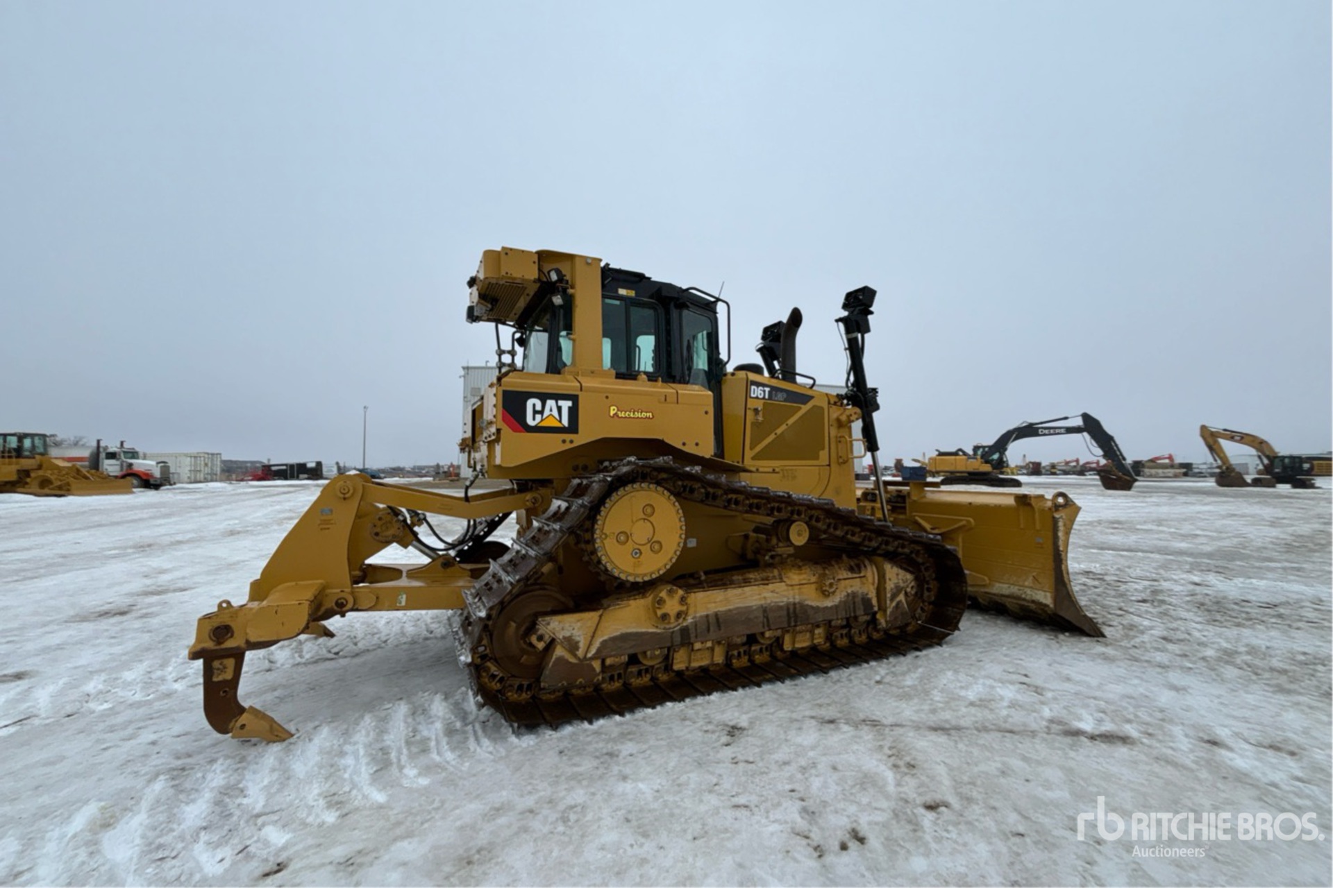 Situé sur la voie 53, emplacement 9, cabine fermée, climatisation, caméra de recul, précâblé pour le contrôle de nivellement, étiquette EPA américaine 2018, nécessite du liquide d'échappement diesel, vanne d'arrêt d'air positive, lame PAT de 160 pouces de large, chenilles à crampons simples de 31 pouces, ripper à dents multiples monocylindre