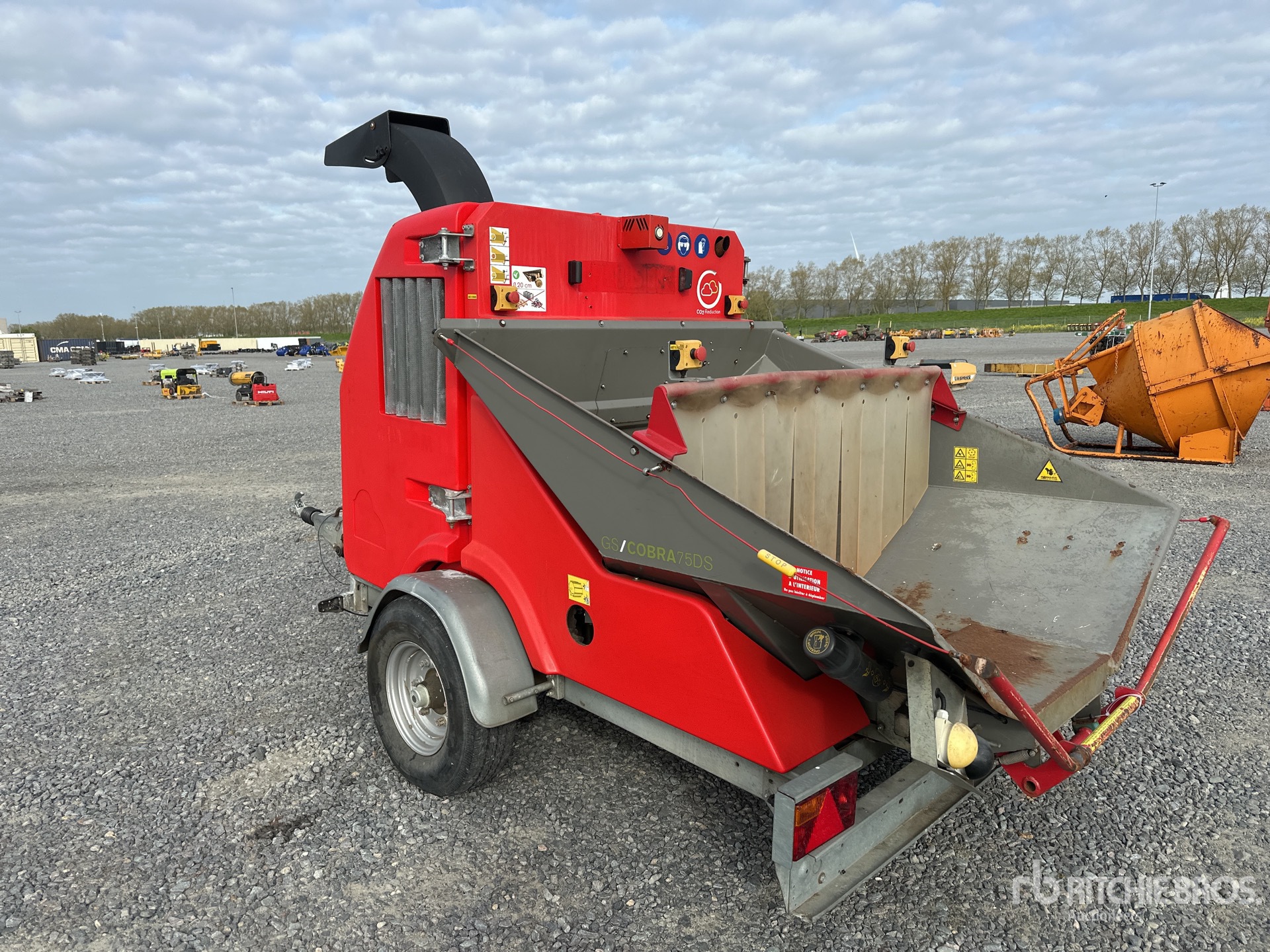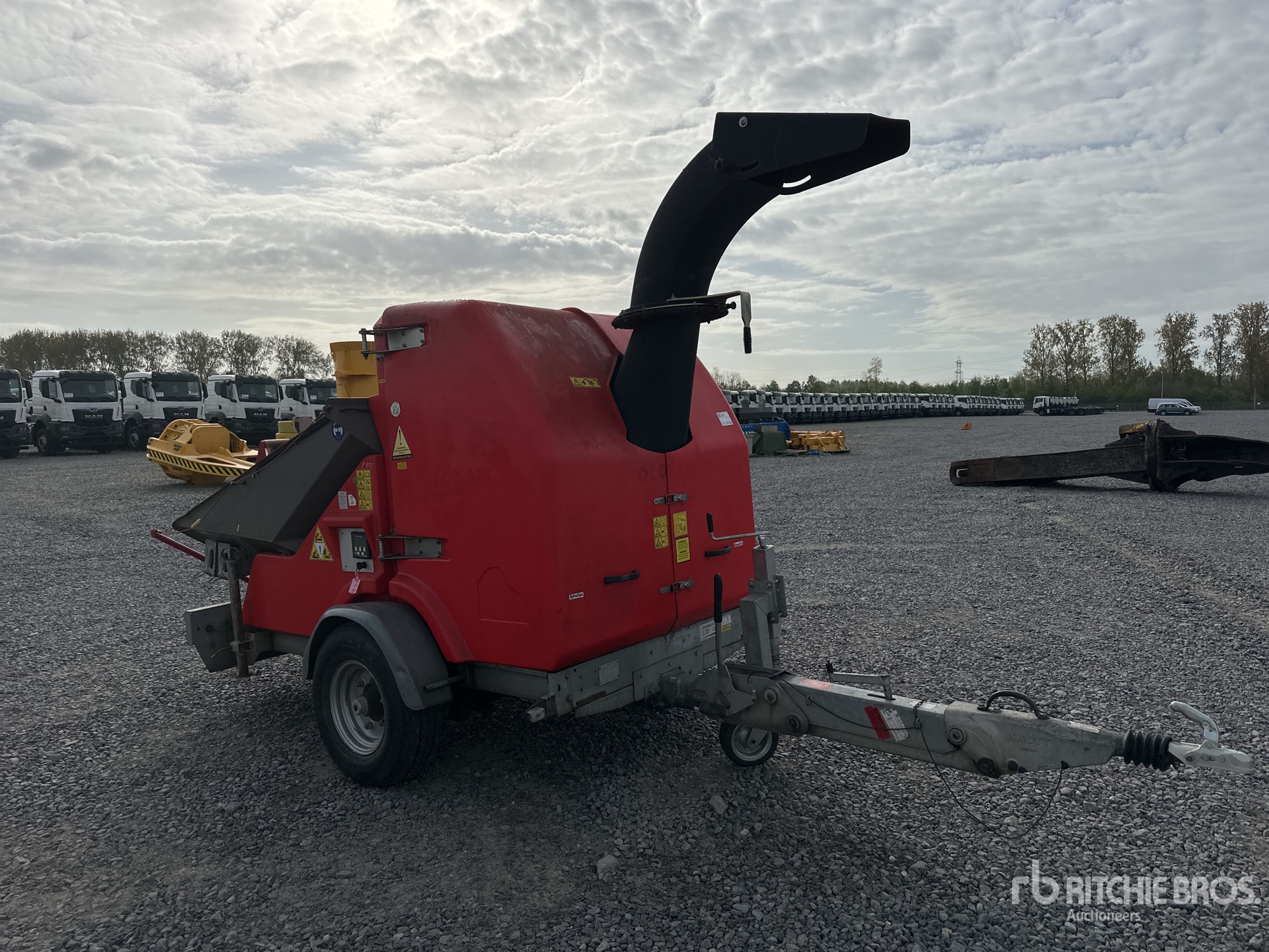 Moteur diesel Kohler 4 cylindres, ouverture d'alimentation de 550 mm, goulotte d'éjection pivotante, remorque porte-conteneurs à attelage à boule, freins à inertie
