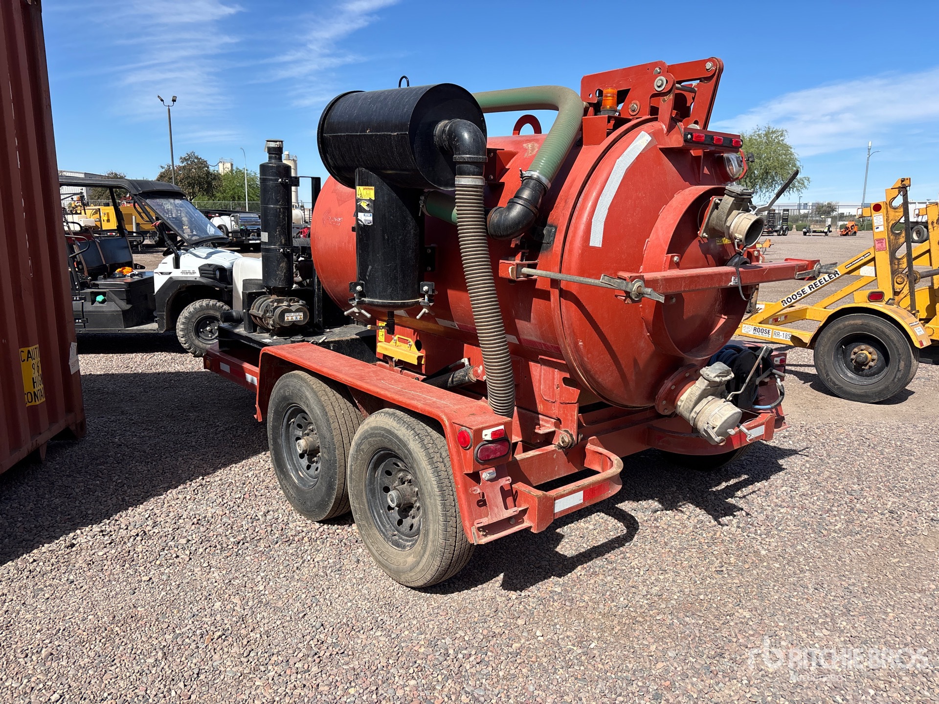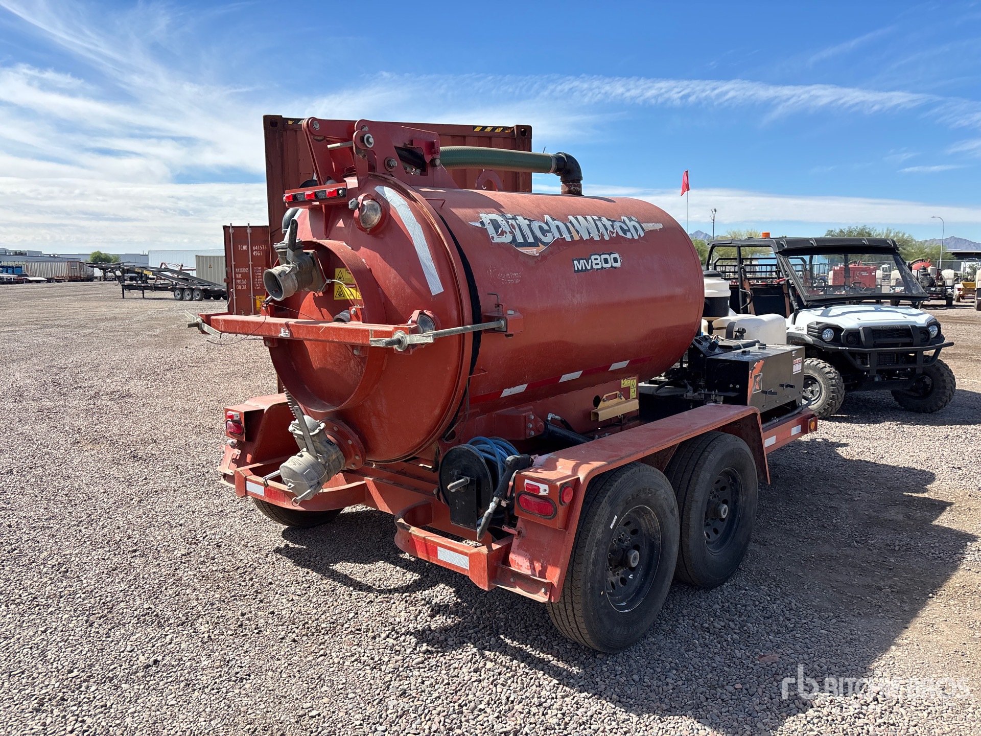 Situé sur la voie 8, emplacement 66, ce véhicule est équipé d'un attelage à anneau Lunette, de freins électriques, d'un réservoir à débris en acier, d'un enrouleur de tuyau arrière, d'un réservoir d'eau douce de 100 gallons, d'un hayon élévateur hydraulique, de pneus 235/80R16, d'une étiquette EPA américaine de 2017 et d'un moteur à essence Briggs & Stratton.