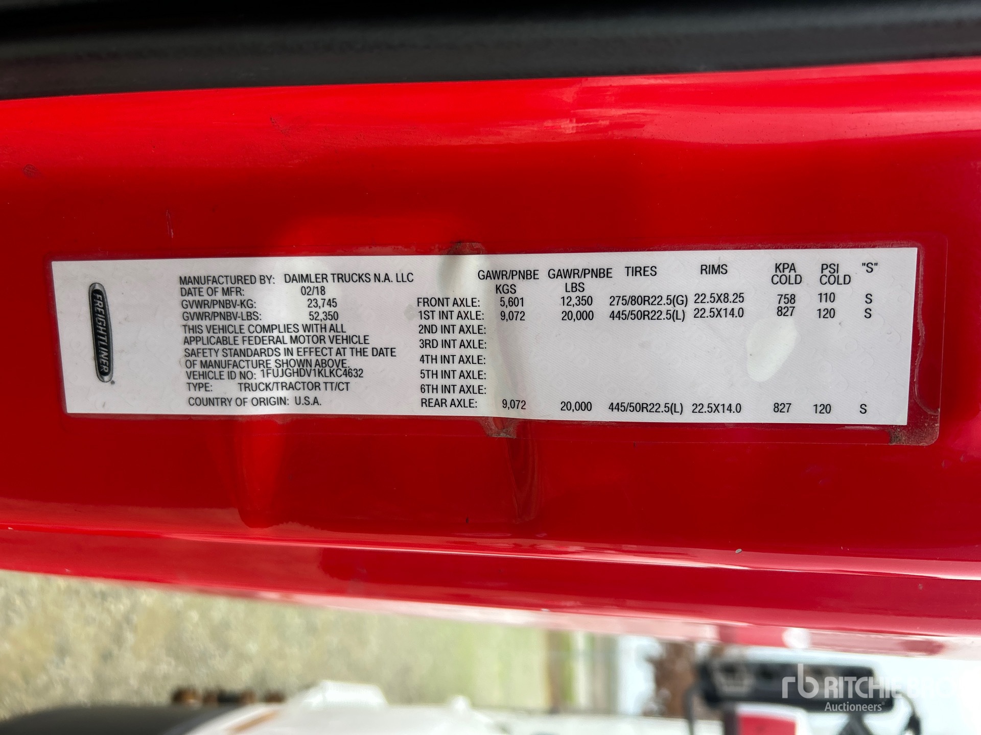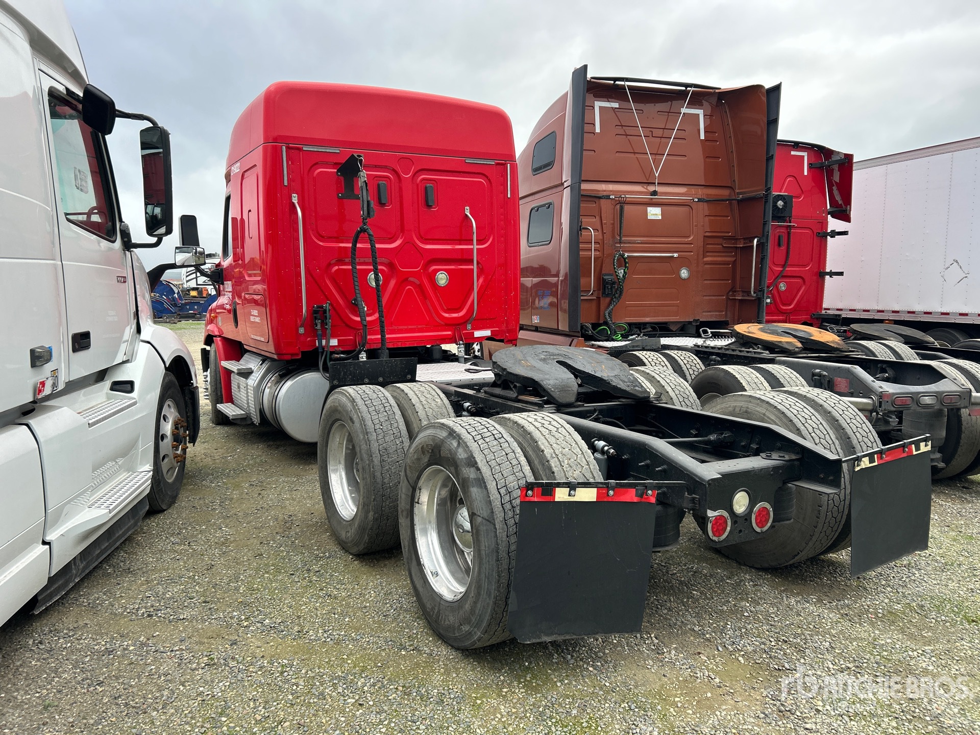 Moteur Detroit DD13 de 450 ch, transmission manuelle Eaton Fuller FAQ-15810C à 10 vitesses, essieu avant de 5 600 kg, essieu arrière de 18 144 kg, PTAC de 23 700 kg, frein moteur, cabine couchette à toit surélevé de 152 cm, empattement de 541 cm, suspension pneumatique, jantes extérieures en aluminium, pneus 295/75R22.5, sellette d'attelage coulissante pneumatique, deux réservoirs de carburant.