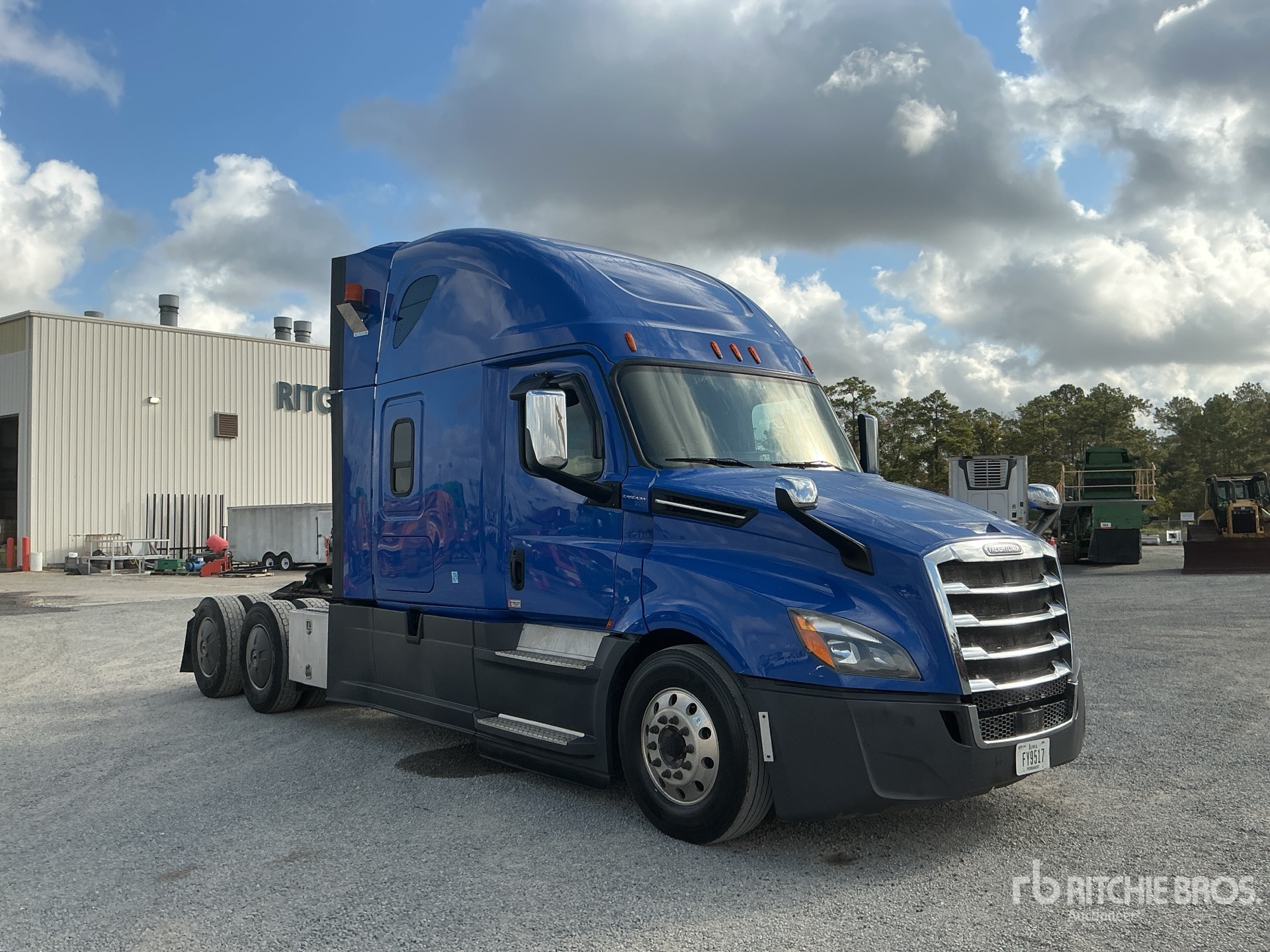Situé sur la voie 29, emplacement 45, moteur Detroit DD15 de 455 ch, homologué EPA 2019, transmission automatisée Detroit DT12-1650-OH1 à 12 vitesses, essieu avant de 6 034 kg, essieux arrière de 18 1444 kg, PTAC de 24 235 kg, ralentisseur, cabine couchette surélevée de 147 cm, lits superposés, empattement de 617 cm, suspension pneumatique, jantes en aluminium, pneus 295/75R22.5, sellette d'attelage coulissante pneumatique, double réservoir de carburant.