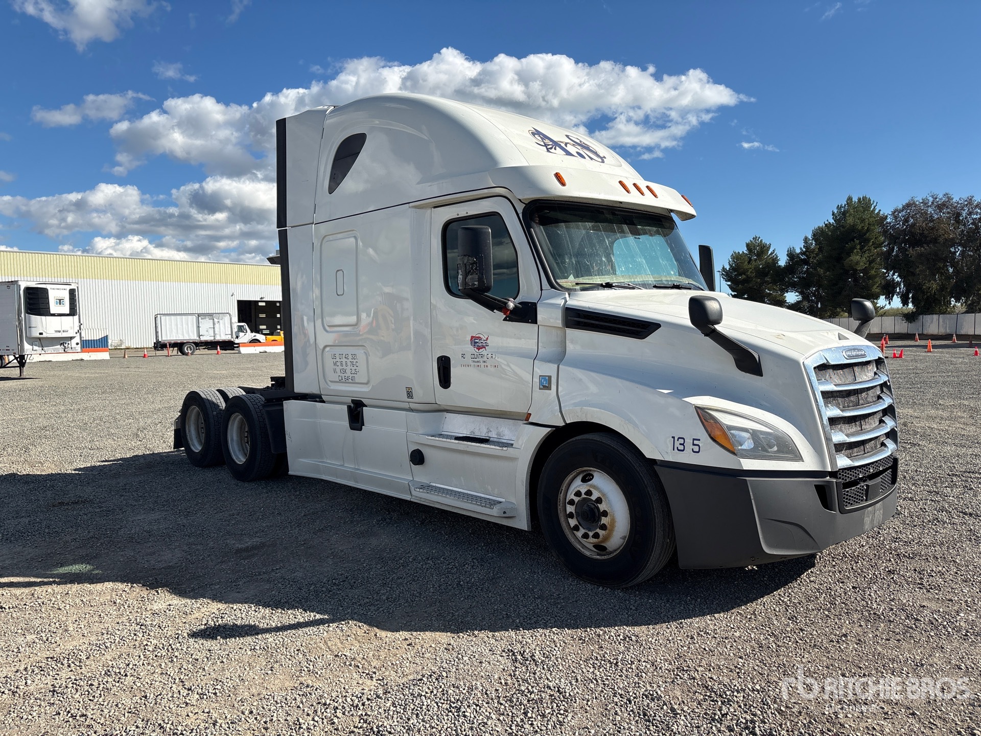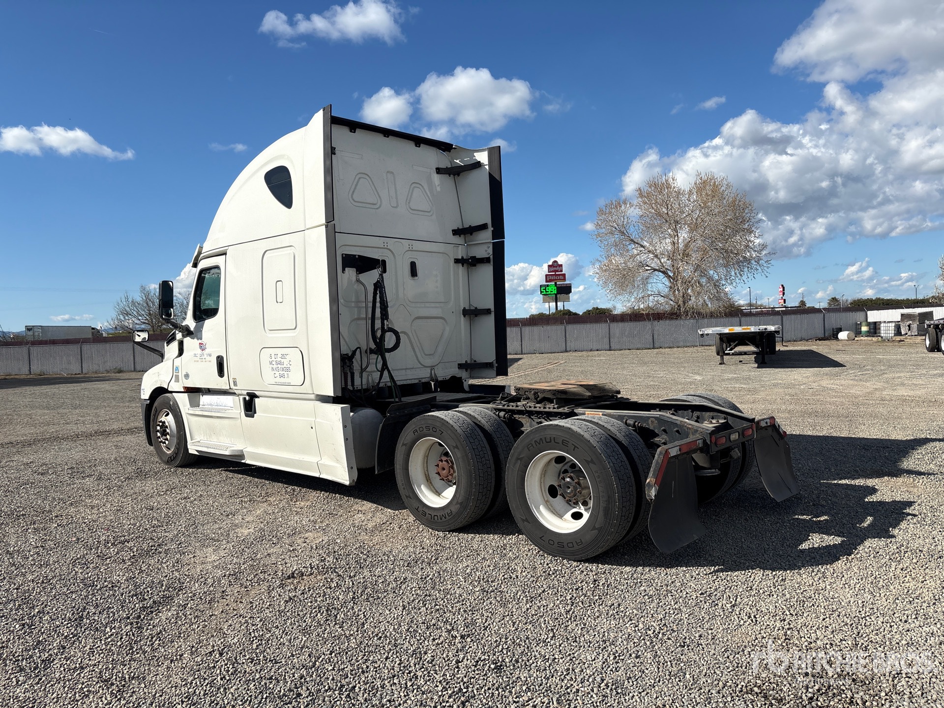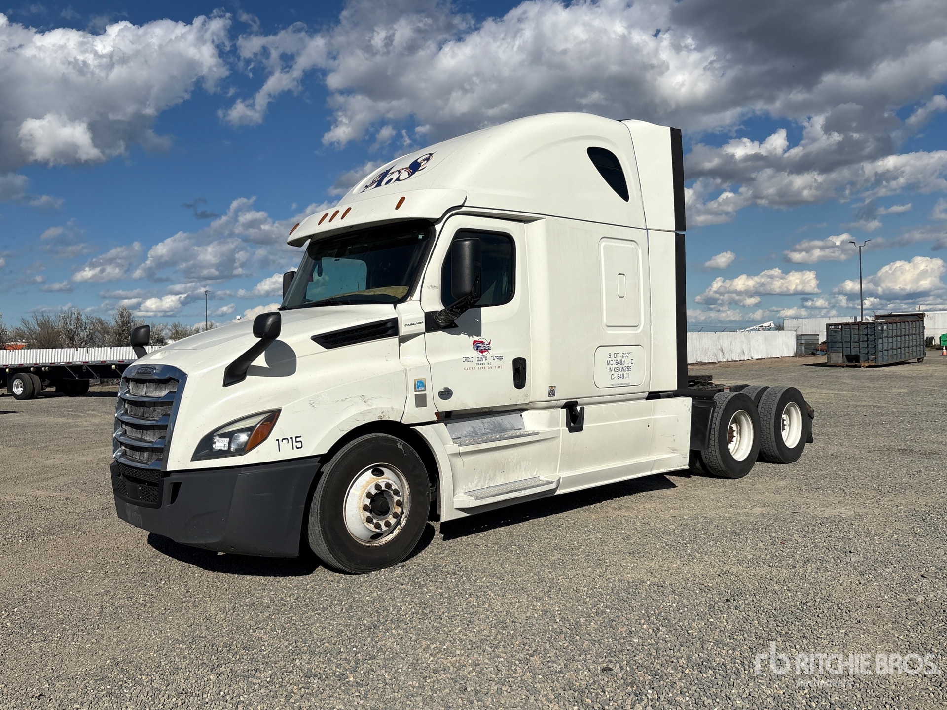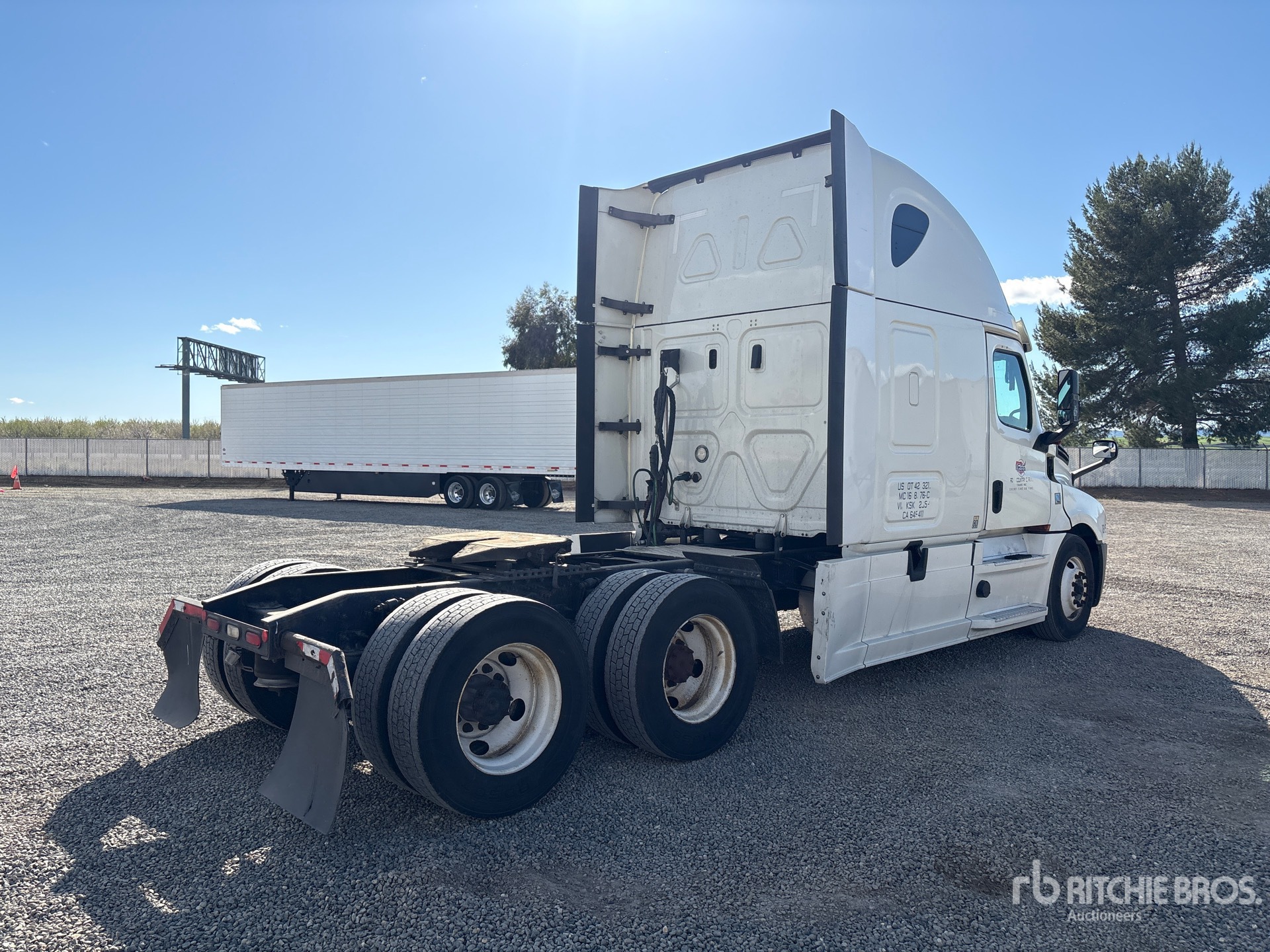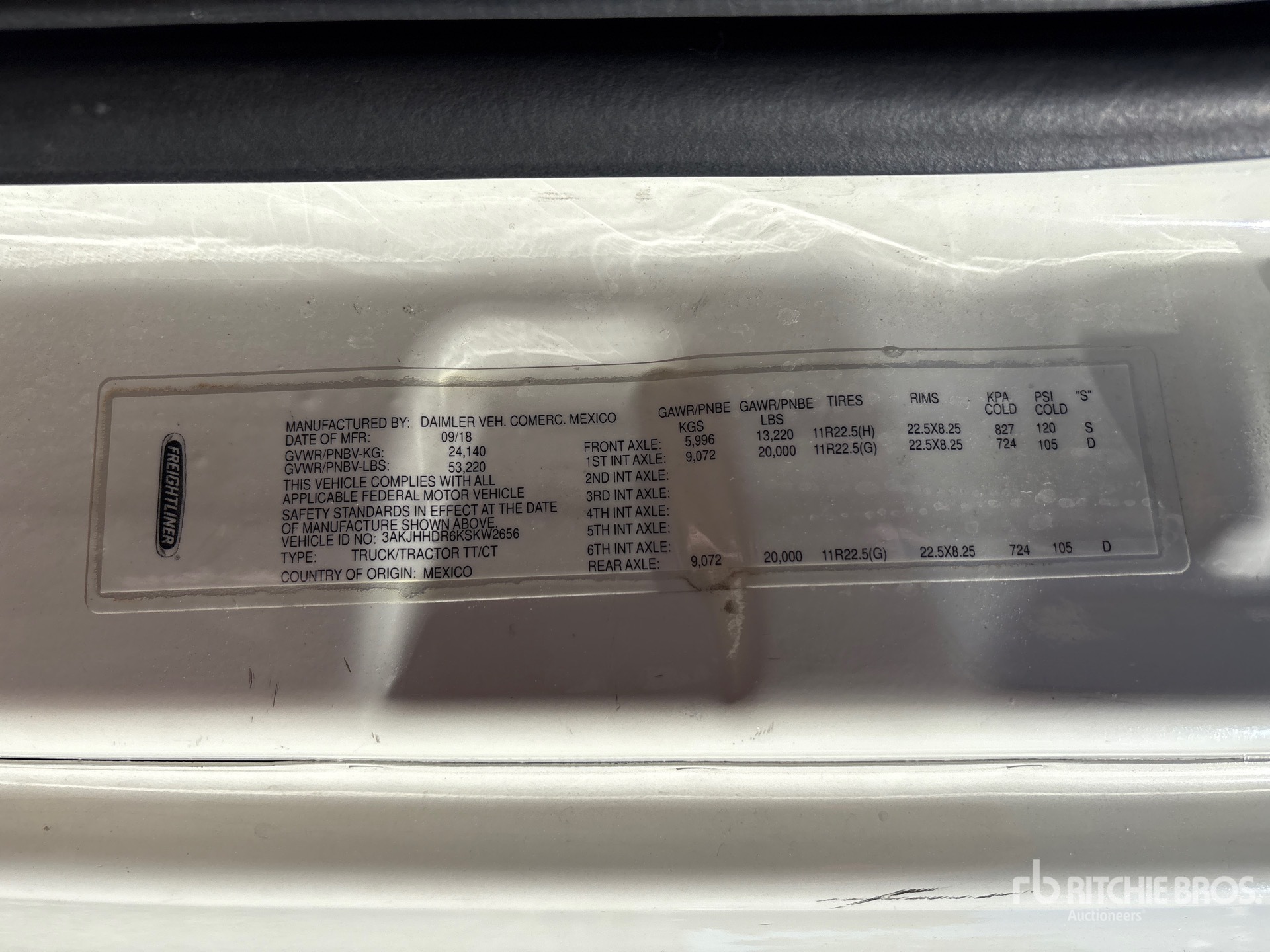 Moteur Detroit DD15 de 455 ch, homologué EPA 2018, transmission automatisée Detroit DT12-1650-OH1 à 12 rapports, essieu avant de 6 034 kg, essieu arrière de 18 1444 kg, PTAC de 24 235 kg, cabine couchette surélevée de 178 cm, lits superposés, chauffage dans les lits superposés, empattement de 581 cm, suspension pneumatique, pneus 295/75R22.5, sellette d'attelage coulissante pneumatique, deux réservoirs de carburant.