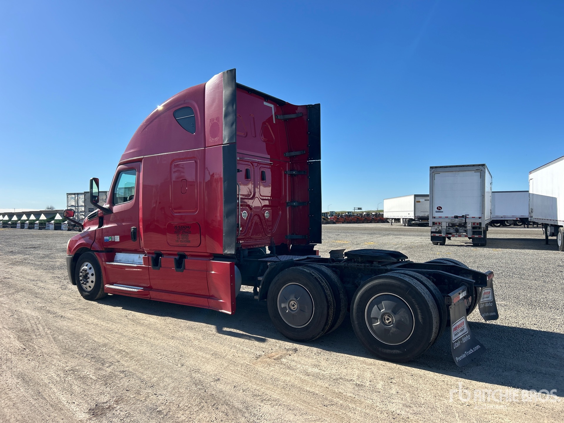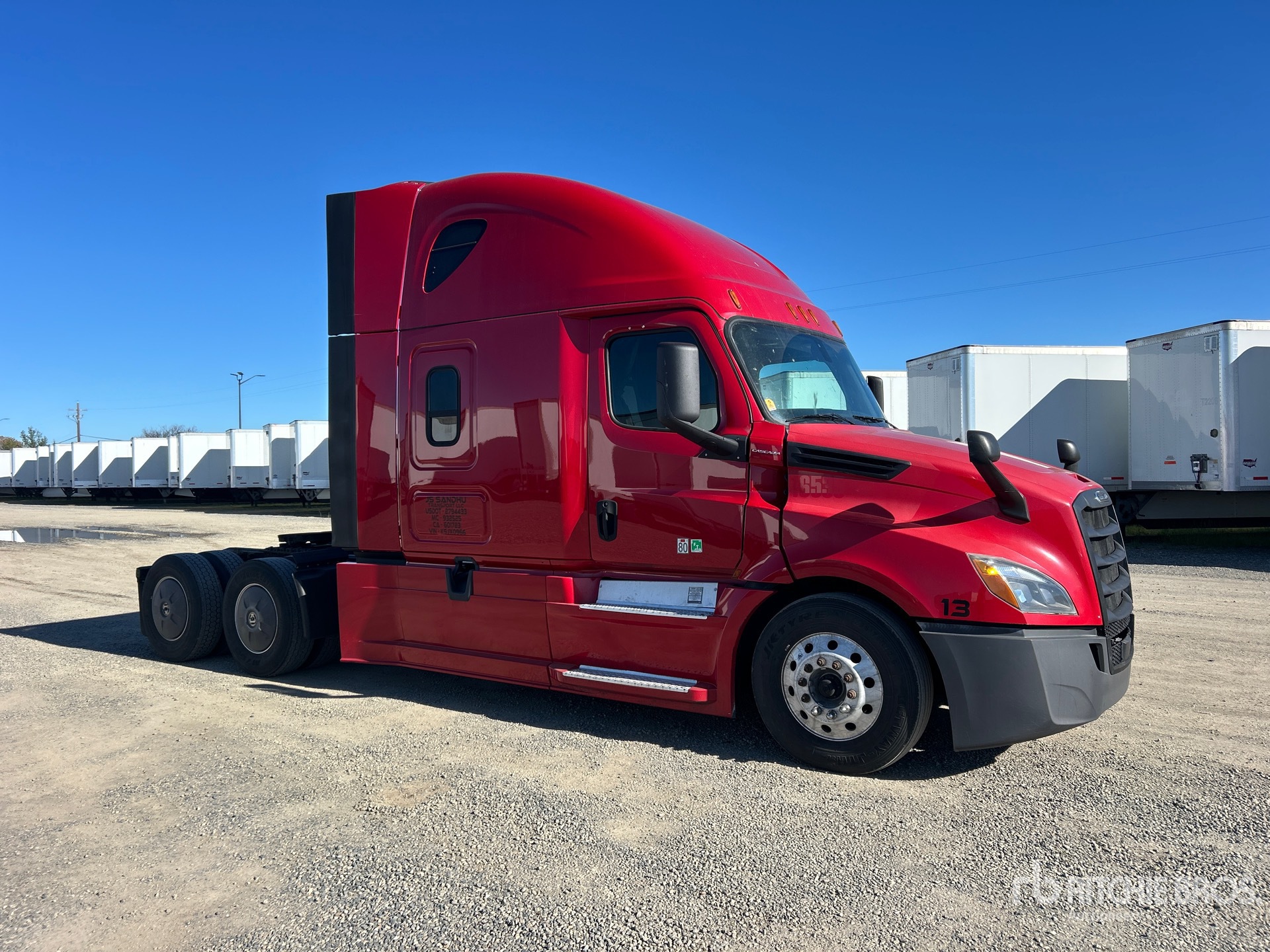 Moteur Detroit DD15 de 400 ch, homologué EPA 2018, 22 040 heures de fonctionnement, transmission automatisée Detroit DT12-1750-DH1 à 12 rapports, essieu avant de 5 600 kg, essieu arrière de 18 144 kg, PTAC de 23 700 kg, frein moteur, cabine couchette surélevée de 183 cm, lits superposés, empattement de 577 cm, suspension pneumatique, jantes en aluminium, pneus 295/75R22.5, sellette d'attelage coulissante pneumatique, double réservoir de carburant.