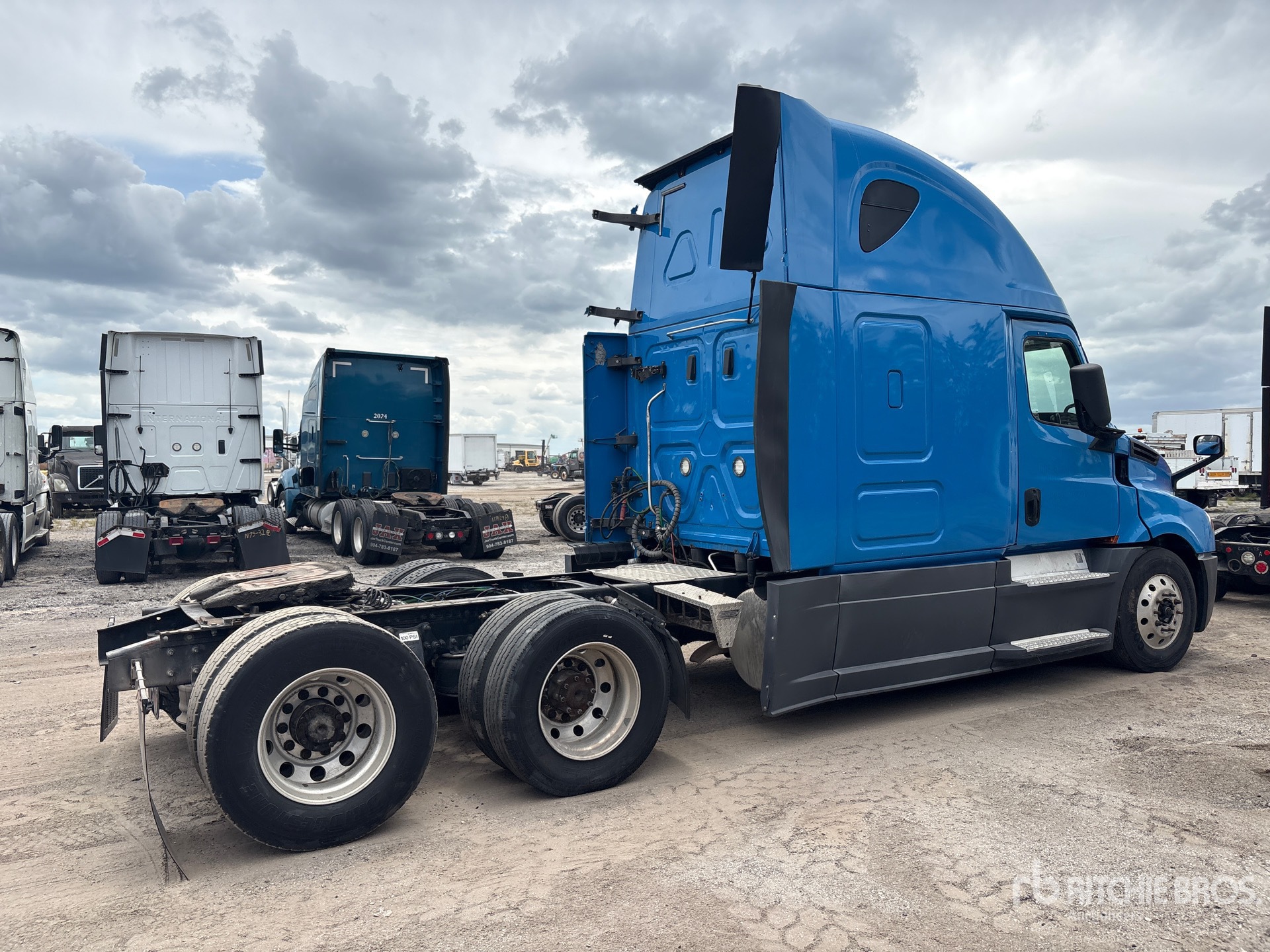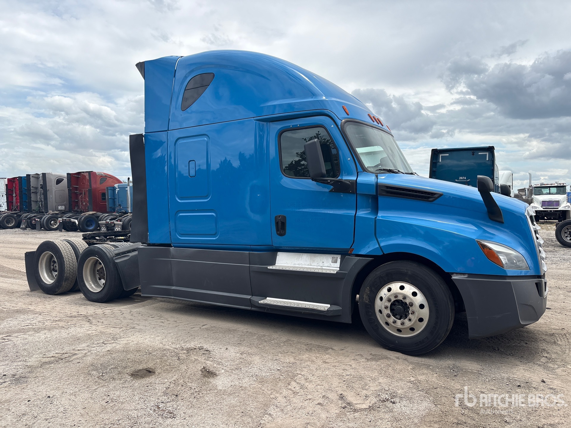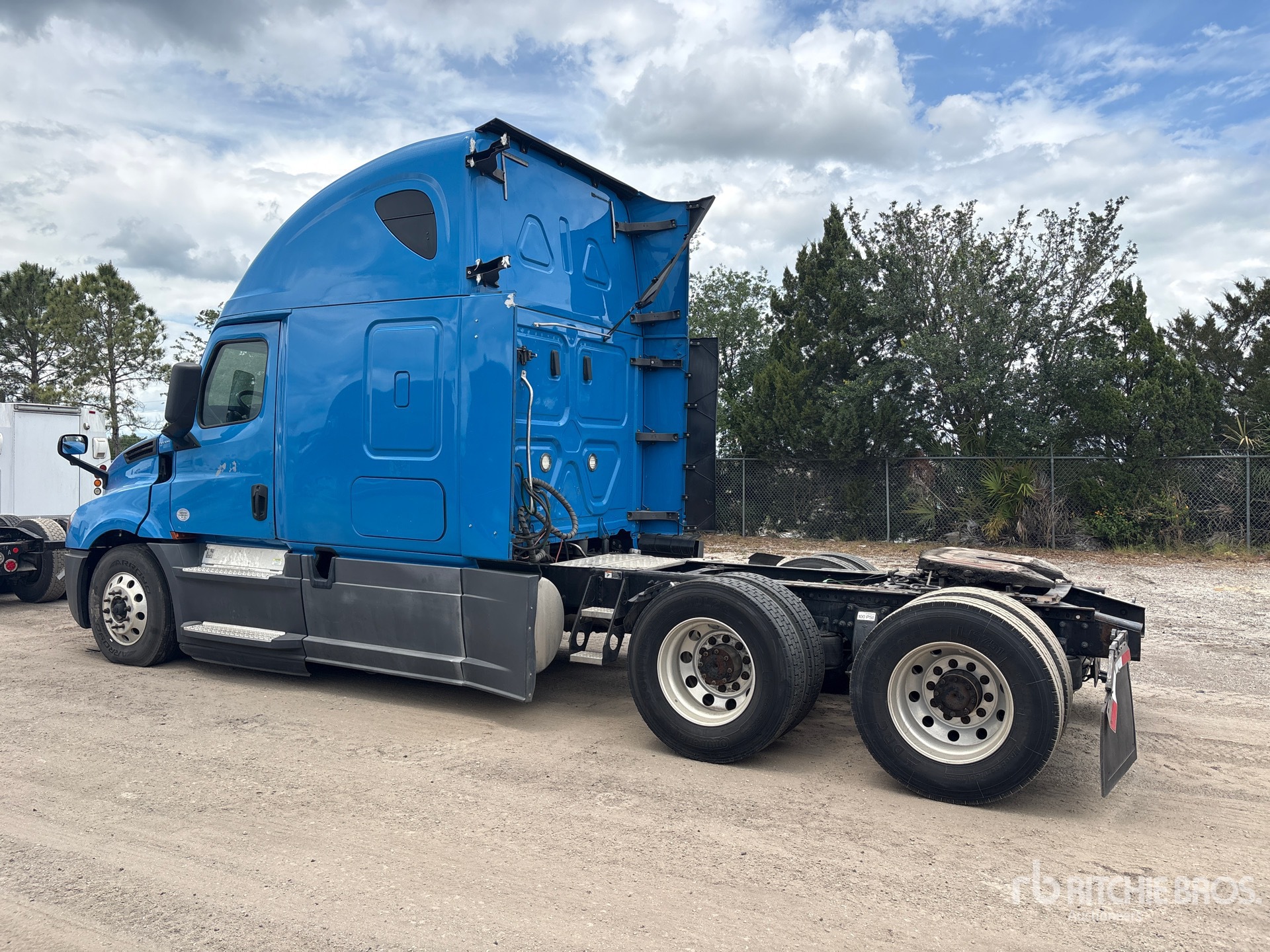 Moteur Detroit DD15 de 400 ch, homologué EPA 2018, transmission automatisée Detroit DT12-1750-DH1 à 12 rapports, essieu avant de 5 587 kg, essieu arrière de 18 144 kg, PTAC de 23 750 kg, frein moteur, cabine couchette surélevée de 178 cm, lits superposés, empattement de 581 cm, suspension pneumatique, pneus 295/75R22.5, sellette d'attelage coulissante pneumatique, deux réservoirs de carburant.