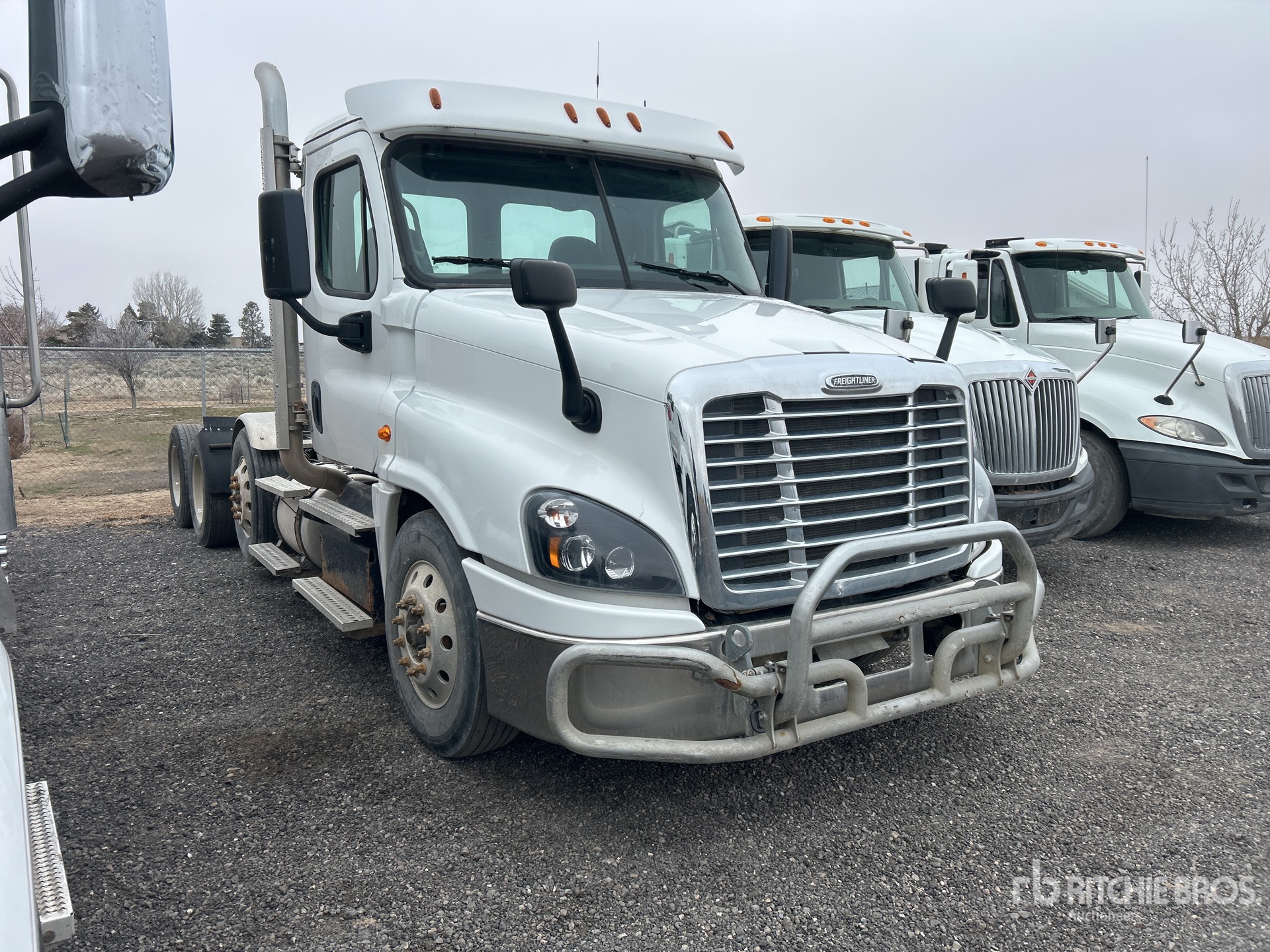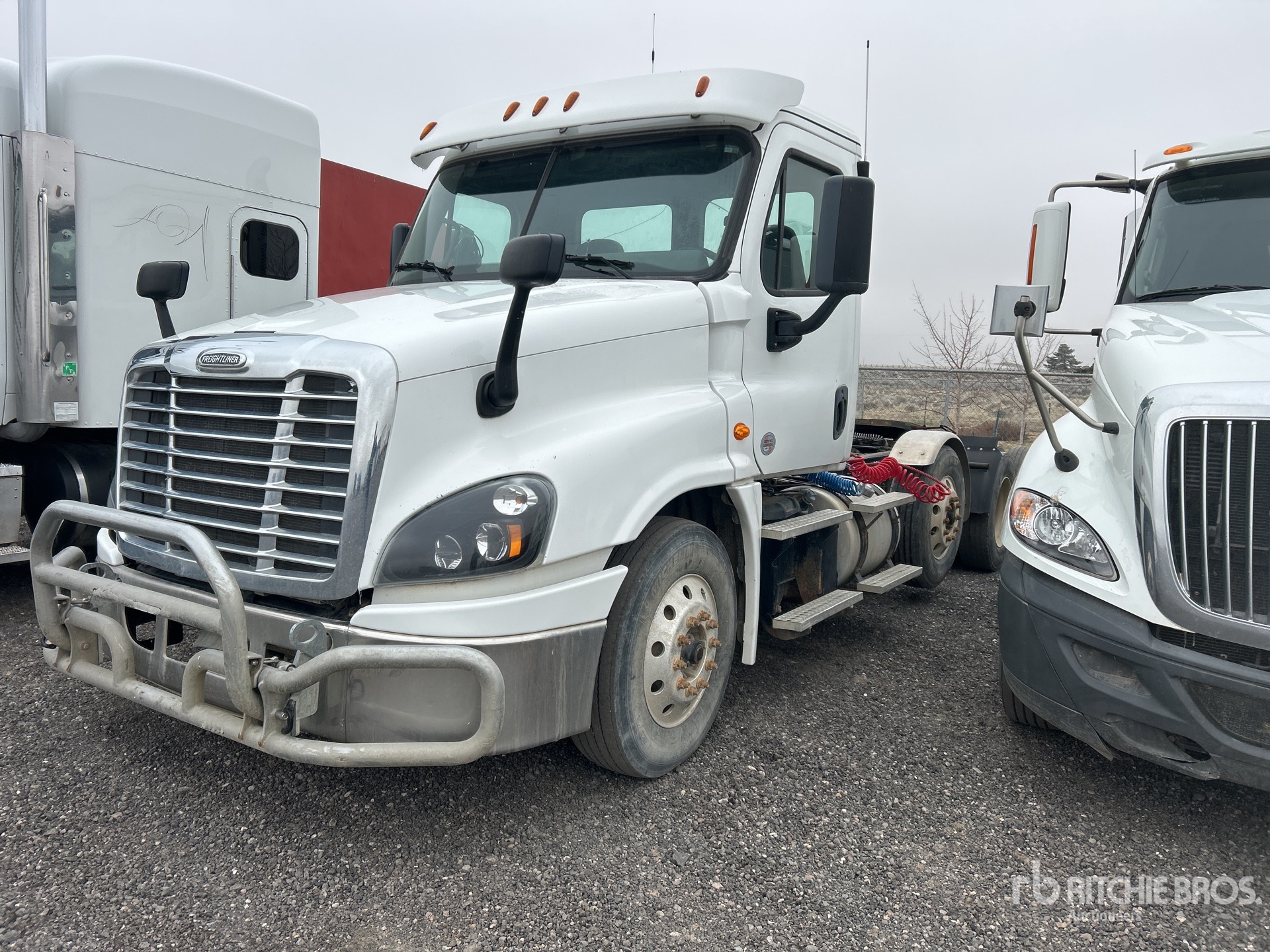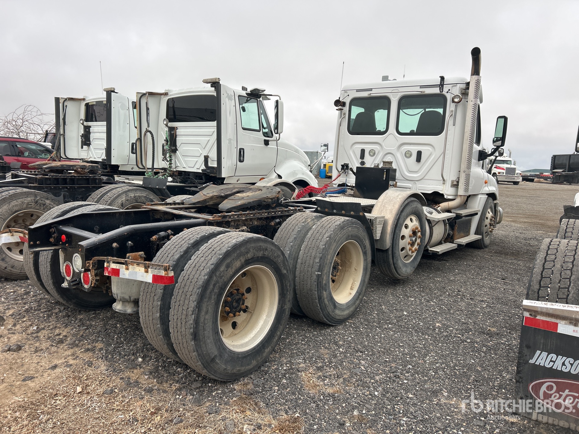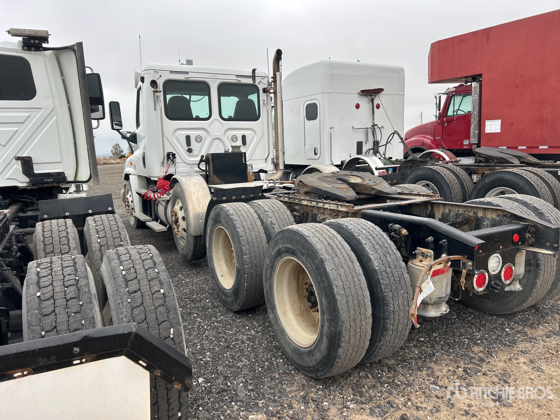 Moteur Detroit DD15 de 505 ch, homologué EPA 2018, transmission automatique, essieu avant de 5443 kg, essieux arrière de 2378 kg, différentiel autobloquant, suspension pneumatique, essieu porteur à levage pneumatique, pneus avant et arrière 275/80R22.5, trousse hydraulique, sellette d'attelage coulissante pneumatique