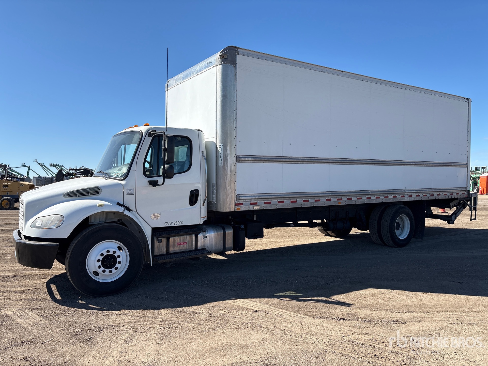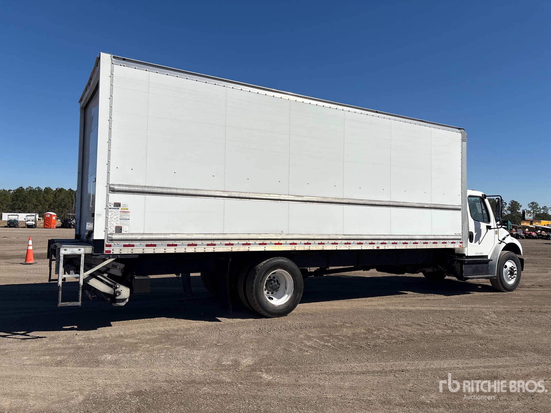 Situé sur la voie 91, emplacement 49, moteur diesel Detroit DD5 de 230 ch, homologué EPA 2018, nécessite un additif pour réservoirs de diesel, transmission automatique, essieu avant de 4 536 kg, essieux arrière de 8 618 kg, PTAC de 11 793 kg, pneus avant et arrière 11R22.5, suspension pneumatique, empattement de 691 cm, carrosserie MORGAN de 7,92 m x 2,59 m x 2,59 m, porte latérale, hayon élévateur