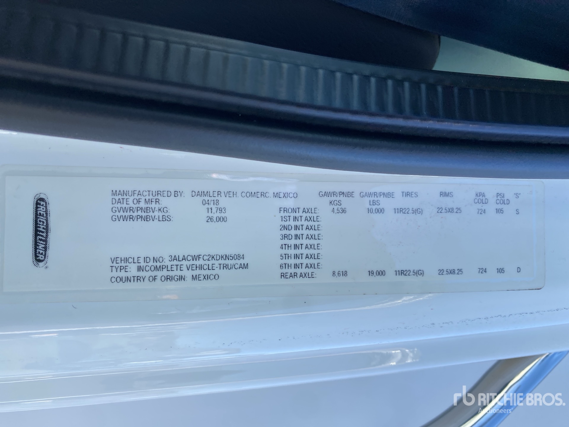 Moteur diesel Cummins B 6.7 220, 6 cylindres, 6,7 L, 220 ch, nécessite du liquide d'échappement diesel, 6 830 heures moteur, transmission automatique Allison 2200, essieu avant de 4 536 kg, essieu arrière de 8 618 kg, essieux moteurs Detroit DA-RS-19.4, rapport de pont de 5,22:1, PTAC de 11 793 kg, pneus 11R22.5, suspension à ressorts, empattement de 6,86 m, benne AMH de 7,92 m x 2,59 m x 2,62 m, rampe d'accès, véhicule de flotte entretenu par des professionnels (PAG).