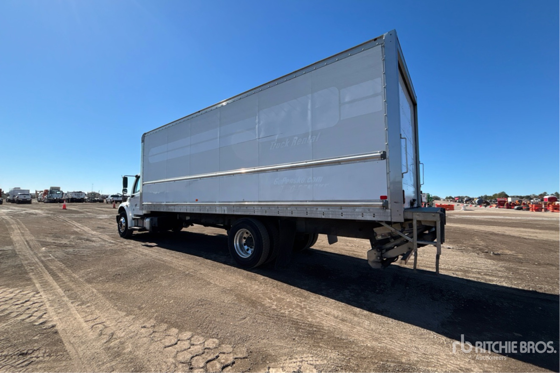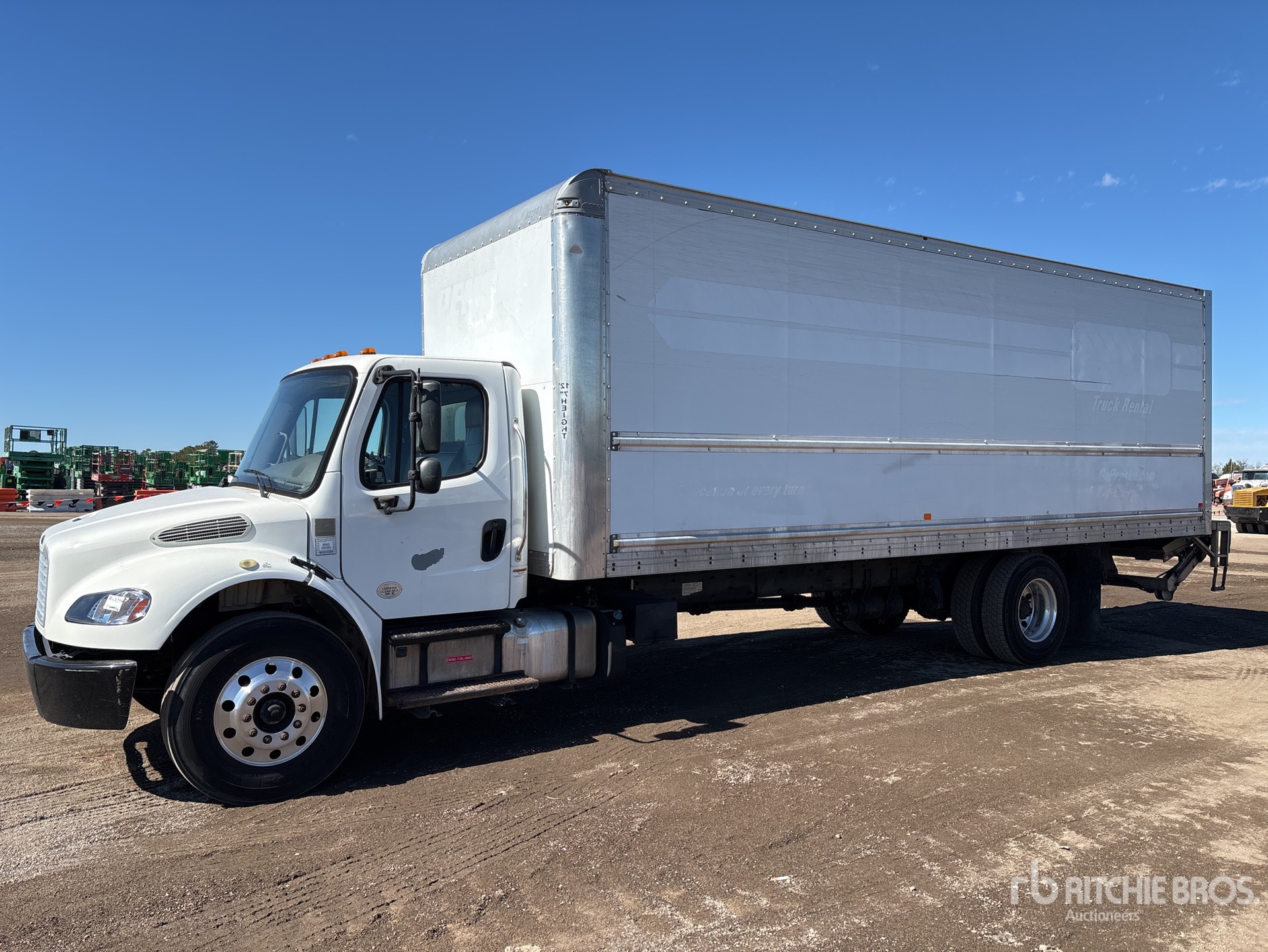 Situé sur la voie 91, emplacement 51, moteur diesel Cummins B6.7 6 cylindres 6,7 L 220 ch, homologué EPA 2018, nécessite un fluide d'échappement diesel, 7 048 heures de fonctionnement, transmission automatique Allison 2200, essieu avant de 4 536 kg, essieux arrière de 8 618 kg, essieux moteurs Detroit DA-RS-19.0-4, rapport de pont 5,22:1, PTAC de 11 793 kg, jantes en aluminium, pneus 11R22.5, suspension pneumatique Airliner, empattement de 6,86 m, dimensions de la carrosserie : 7,92 m x 2,59 m x 2,34 m, porte latérale, hayon élévateur