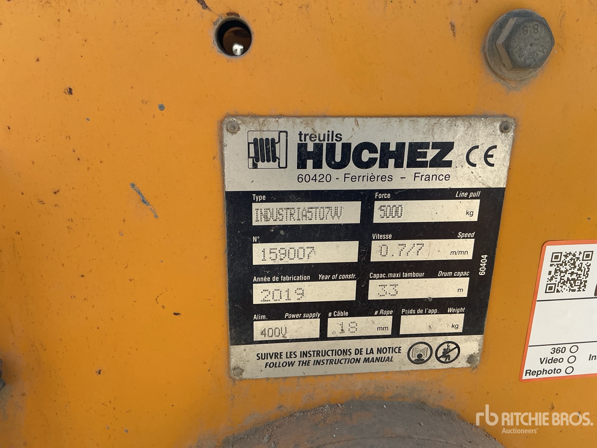 Les Informations détaillées de l’équipement sont d’une portée limitée, et les Encans Ritchie Bros. n’ont inspecté aucun autre aspect ou composant de l’équipement que ceux présentés expressément. Sauf indication précise, nous n’offrons aucune représentation ou garantie, officielle ou implicite, sur l’équipement ou ses composants, sans aucune limite de représentation ou de garantie en ce qui concerne la fonctionnalité, la conformité à toute norme de sécurité ou l’exigence de toute autorité ou agence de régulation en vigueur, l’adaptation à un quelconque usage, ou la valeur commerciale. Il vous est fortement conseillé d’effectuer votre propre inspection détaillée de l’équipement avant d’enchérir.