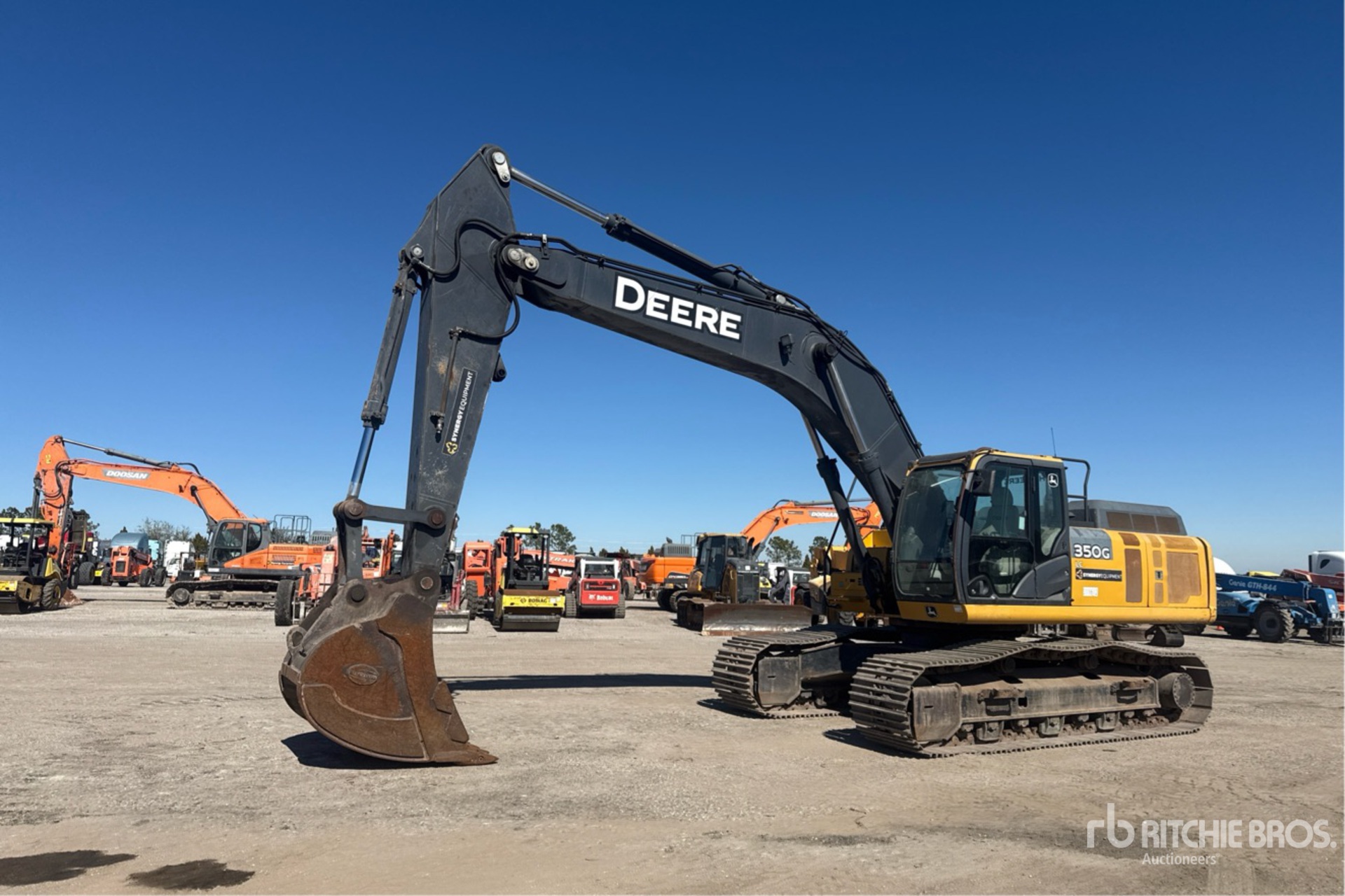 Climatisation, sélecteur de mode de conduite, caméra de recul, homologation EPA américaine 2019, nécessite du liquide d'échappement diesel, bras de 3,23 m, circuit hydraulique auxiliaire, chenilles à triple crampon de 80 cm, godet de 122 cm