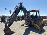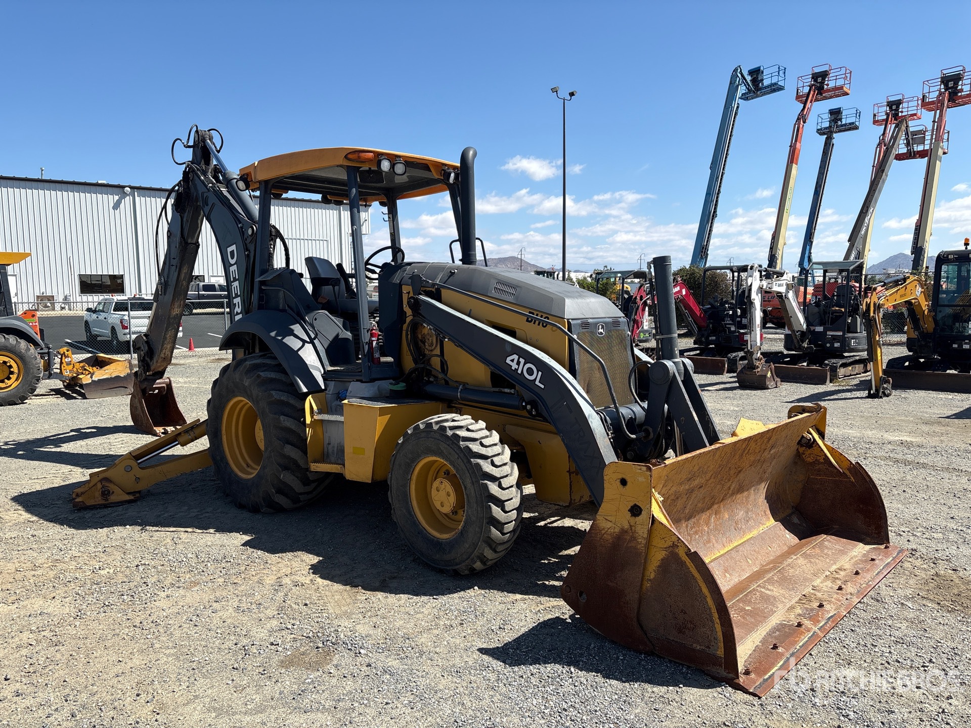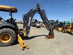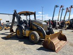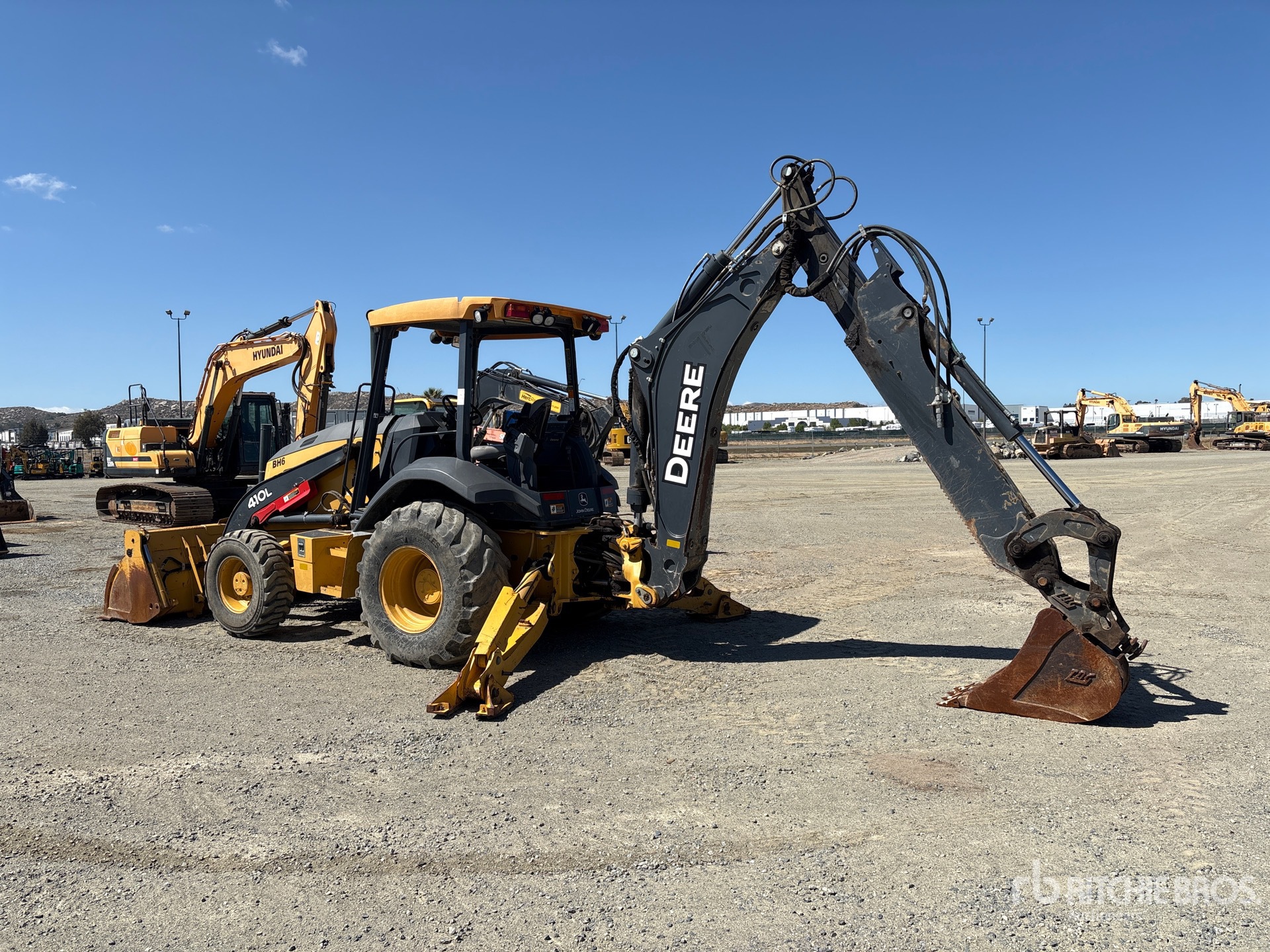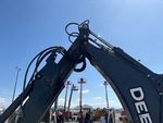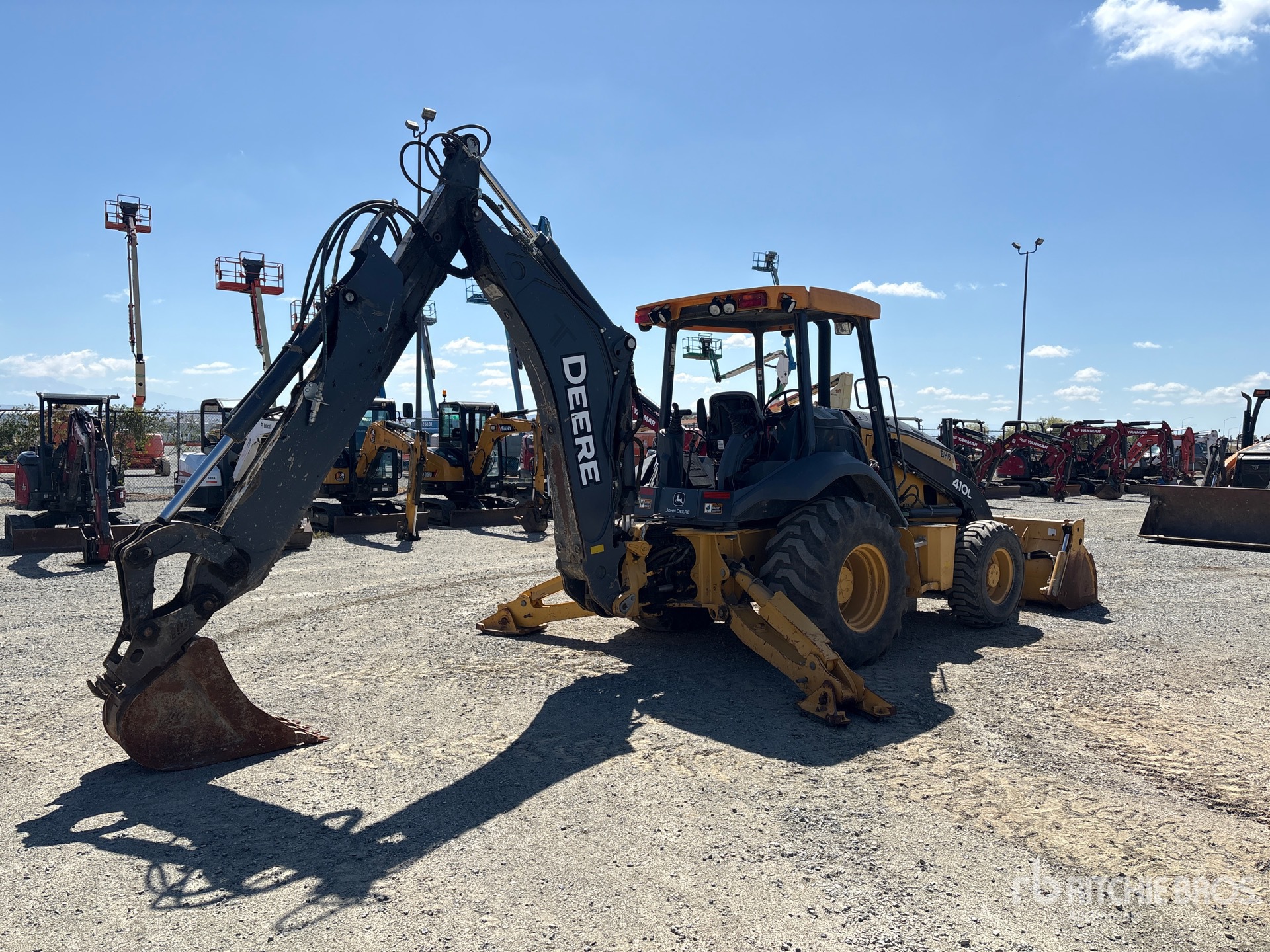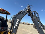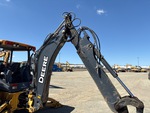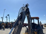Poste de conduite ouvert, contrôle de la suspension, commandes de pilotage de la pelle rétro, sélecteur de mode de commande, transmission Powershift, nécessite du liquide d'échappement diesel, godet de chargeuse polyvalent de 235 cm, bras extensible, attache rapide, godet de pelle rétro de 46 cm, circuit hydraulique auxiliaire arrière