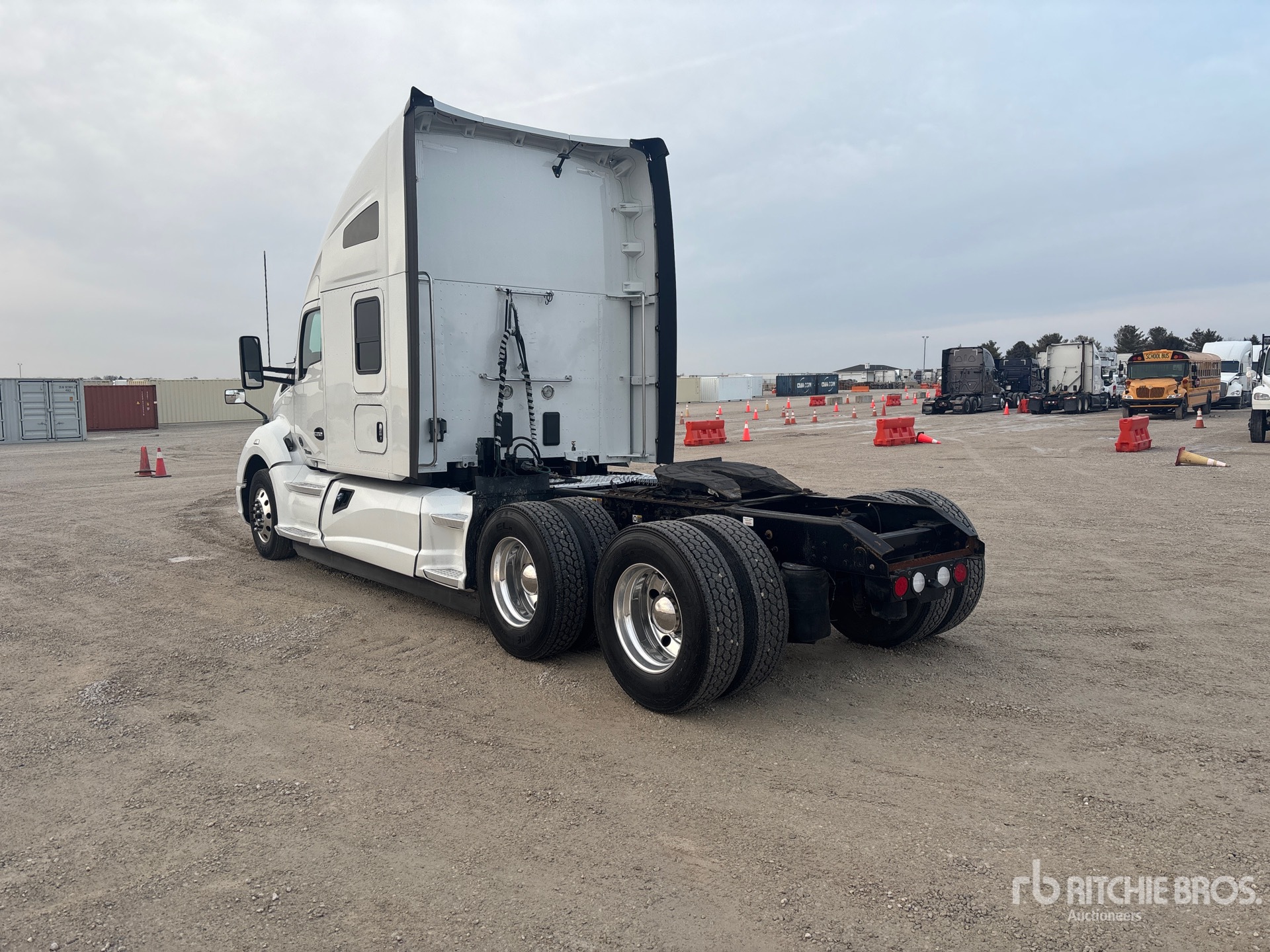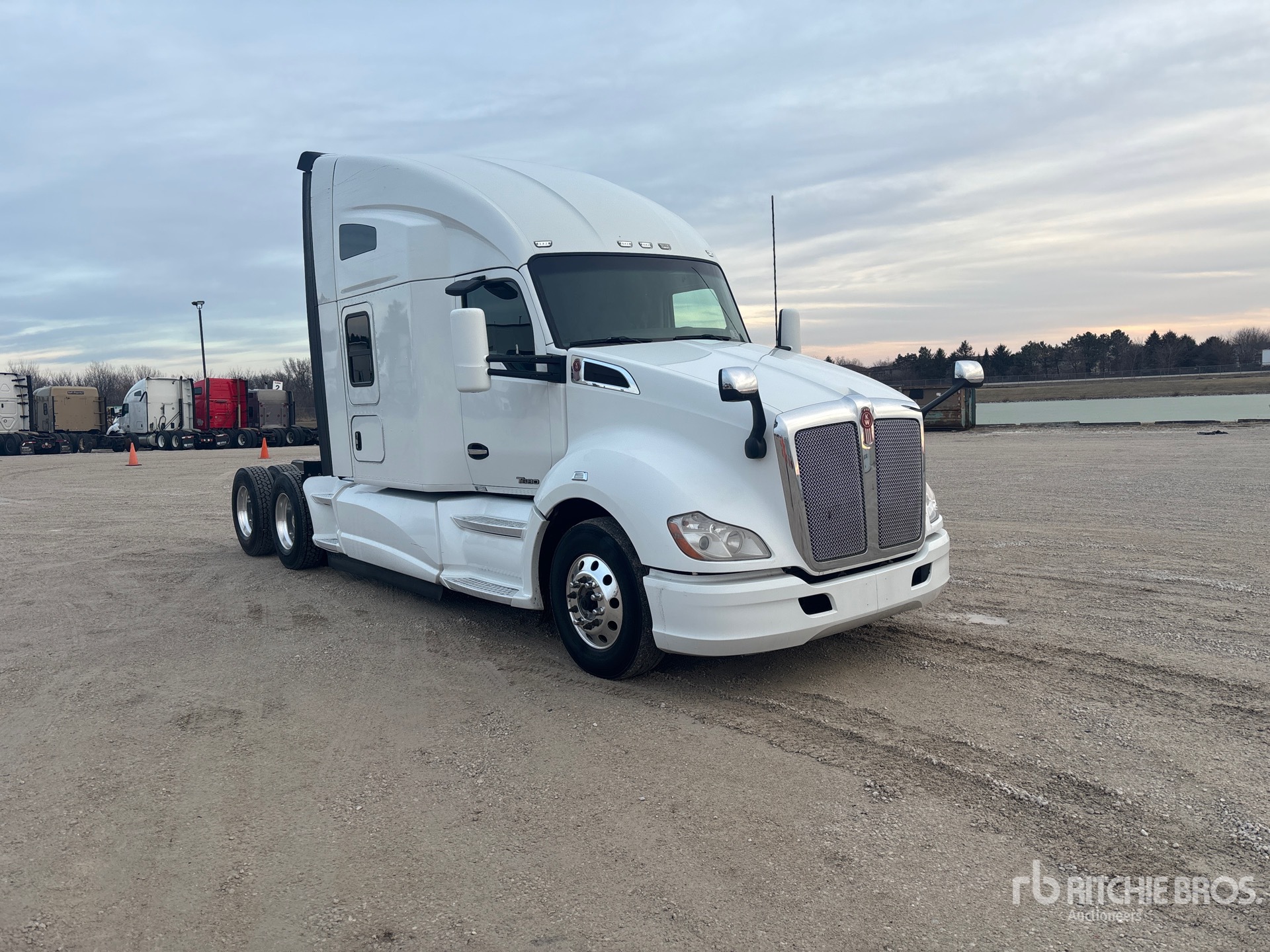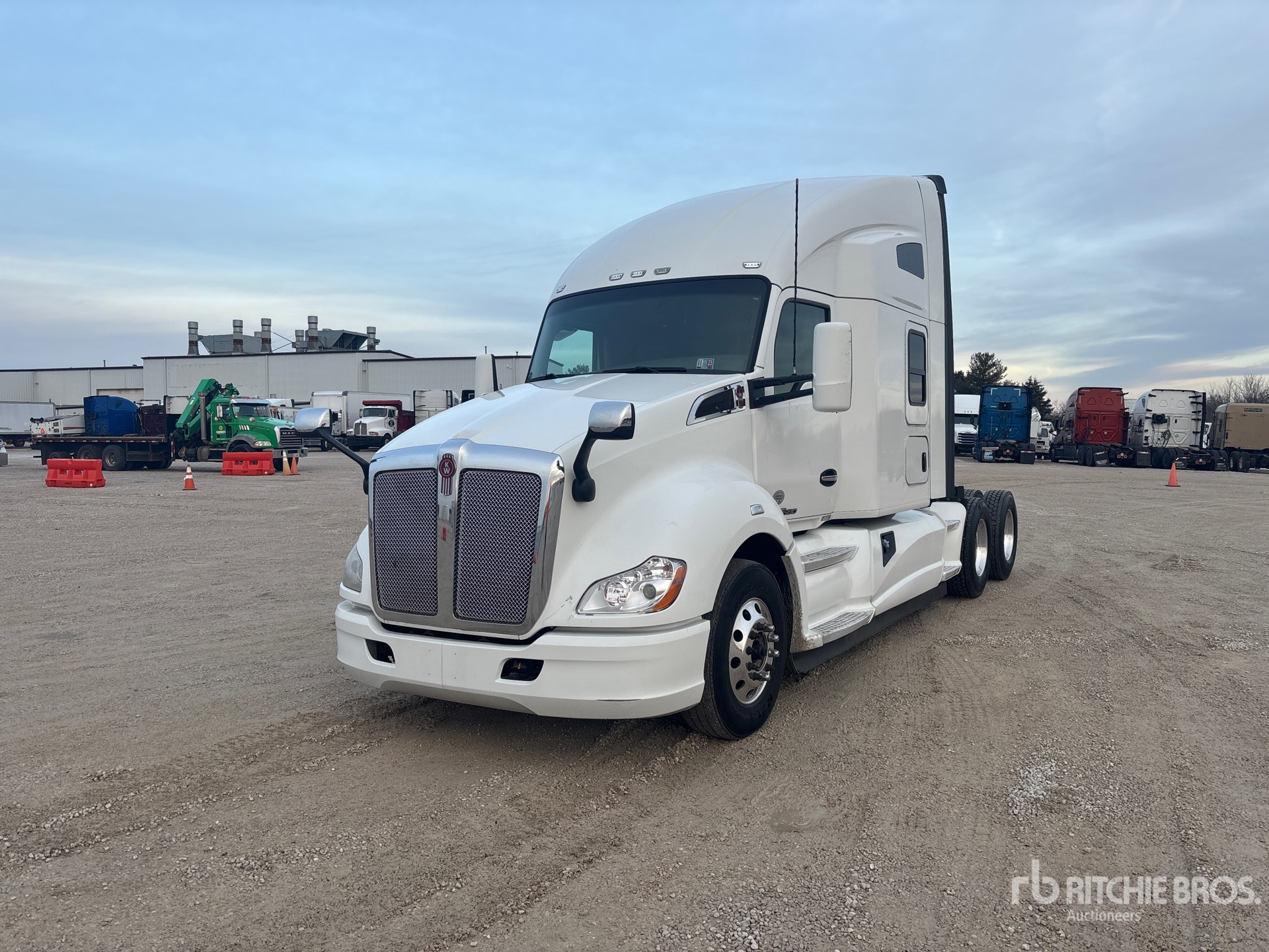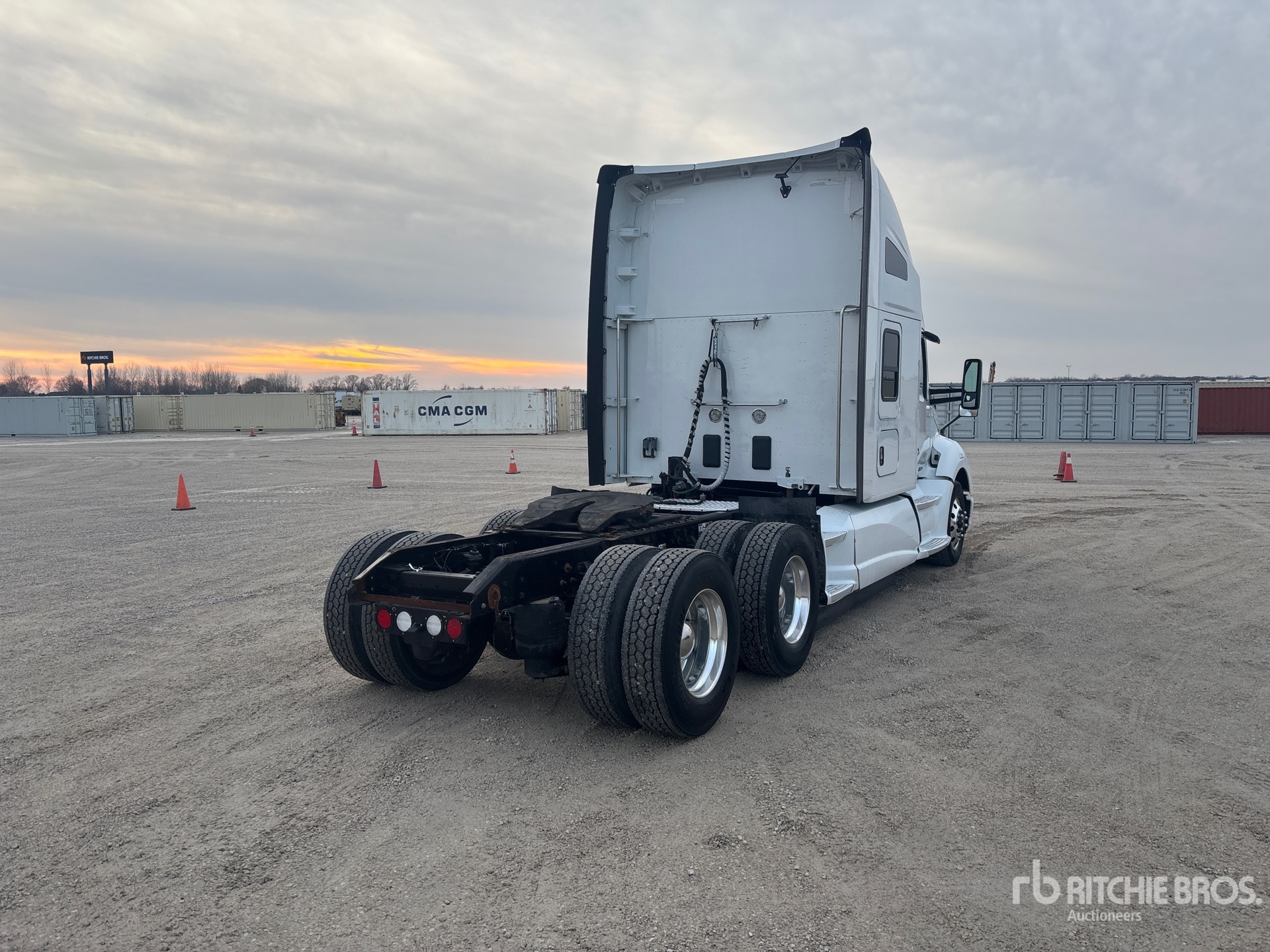 Situé sur la voie 19, emplacement 27, moteur Cummins X15 de 450 ch, étiquette EPA américaine 2018, 15 711 heures de fonctionnement, transmission manuelle Eaton Fuller RTLO16913A, essieu avant de 13 200 lb, essieux arrière de 40 000 lb, PTAC de 53 200 lb, frein moteur, blocage de différentiel, cabine couchette surélevée de 72 po, lits superposés, empattement de 236 po, suspension pneumatique, jantes en aluminium, pneus avant et arrière 295/75R22.5, sellette d'attelage coulissante pneumatique, double réservoir de carburant.