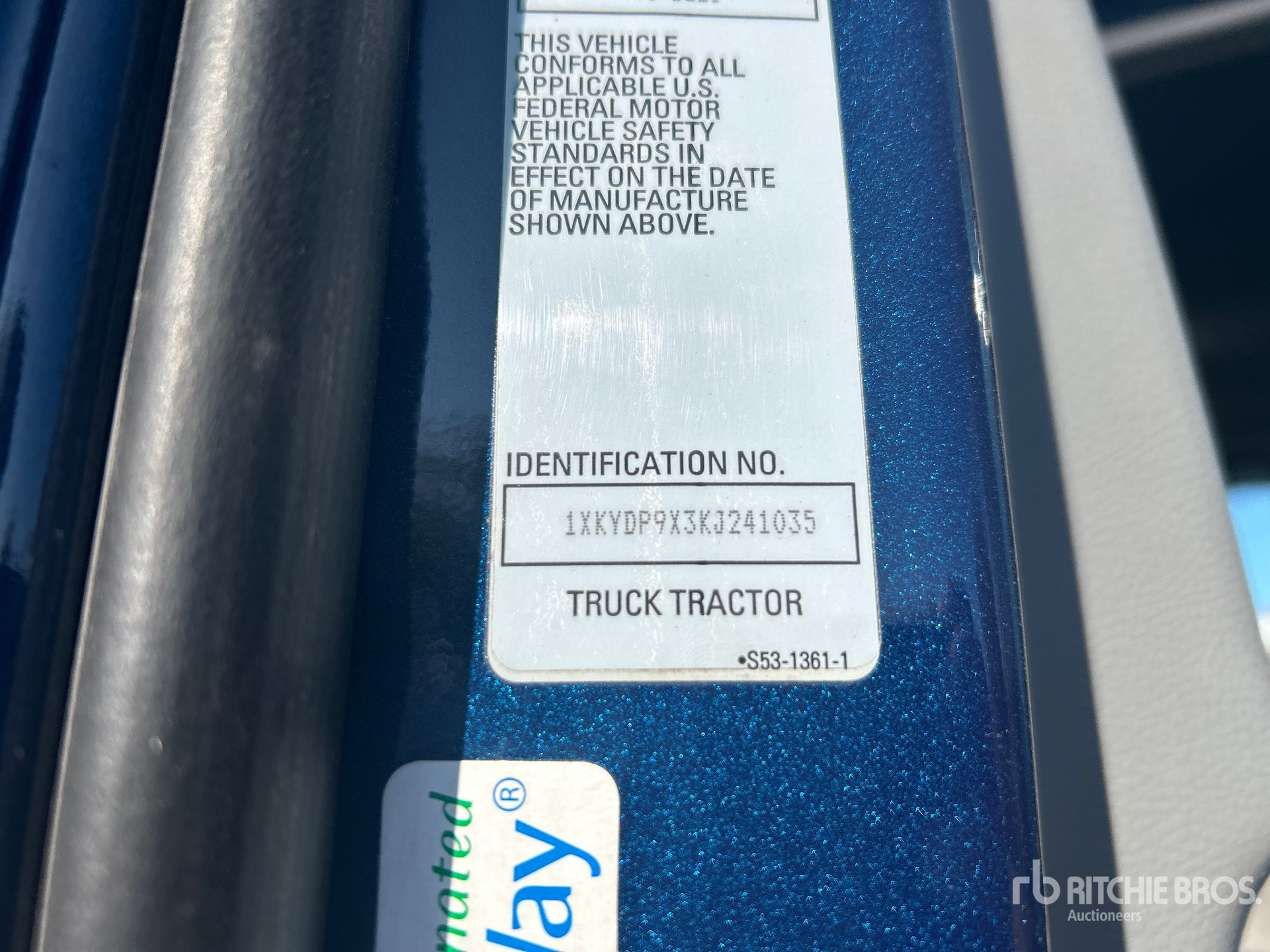 Moteur Paccar MX-13 de 455 ch, transmission automatisée Paccar P0-17F112 à 12 rapports, essieu avant de 5 987 kg, essieux arrière de 18 144 kg, PTAC de 24 114 kg, frein moteur, cabine couchette surélevée de 190 cm, lits superposés, empattement de 597 cm, suspension pneumatique, roues avant en aluminium, pneus avant 275/80R22.5, pneus arrière 295/75R22.5, double réservoir de carburant
