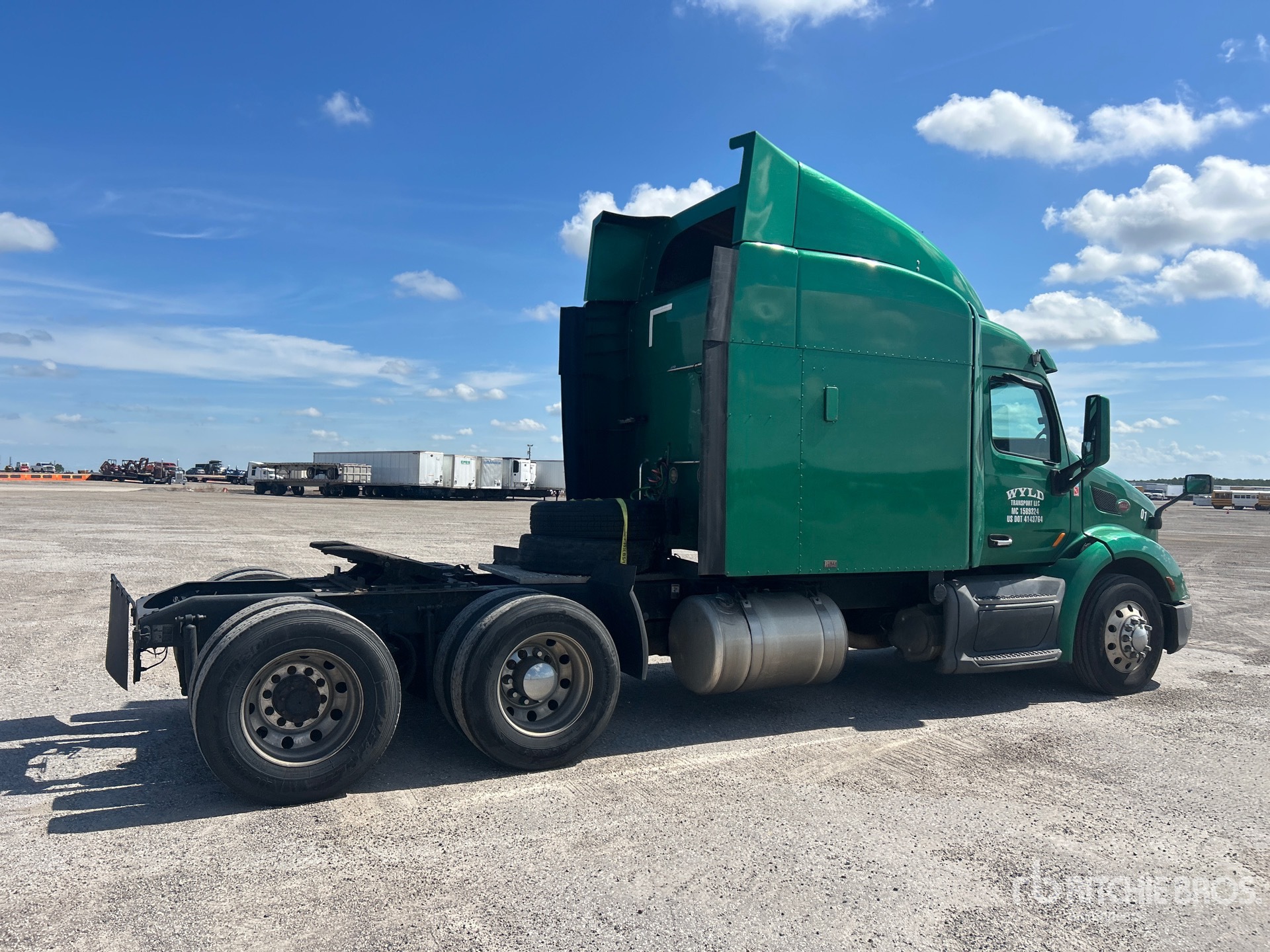 Situé sur la voie 2, emplacement 316, moteur Paccar MX-13 de 455 ch, homologué EPA des États-Unis en 2018, transmission automatisée, essieu avant de 12 000 lb, essieu arrière de 38 000 lb, PNBV de 50 000 lb, cabine couchette surélevée de 63 po, lits superposés, empattement de 228 po, suspension pneumatique, jantes en aluminium, 295/75R22.5, sellette d'attelage coulissante pneumatique, réservoirs de carburant doubles