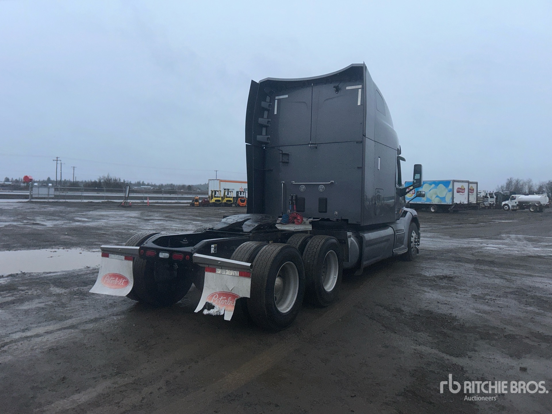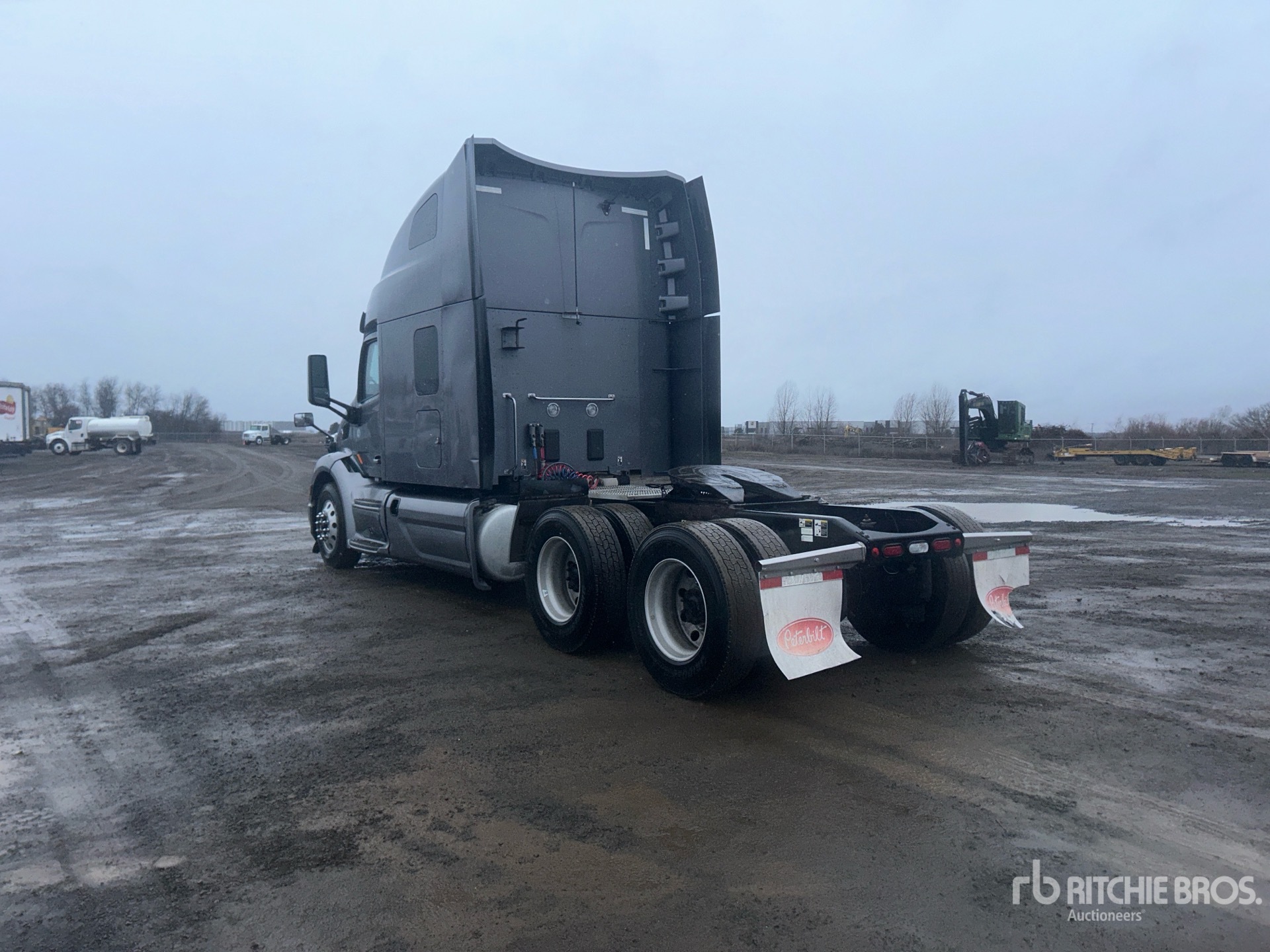 Moteur Paccar MX-13, 17 091 heures de fonctionnement, transmission automatique, essieu avant de 5 443 kg, essieux arrière de 18 144 kg, PTAC de 23 590 kg, frein moteur, blocage de différentiel, cabine couchette surélevée de 160 cm, lits superposés, empattement de 6 m, suspension pneumatique, jantes en aluminium, pneus avant 295/75R22.5, pneus arrière 295/75R22.5, attelage coulissant pneumatique, double réservoir de carburant
